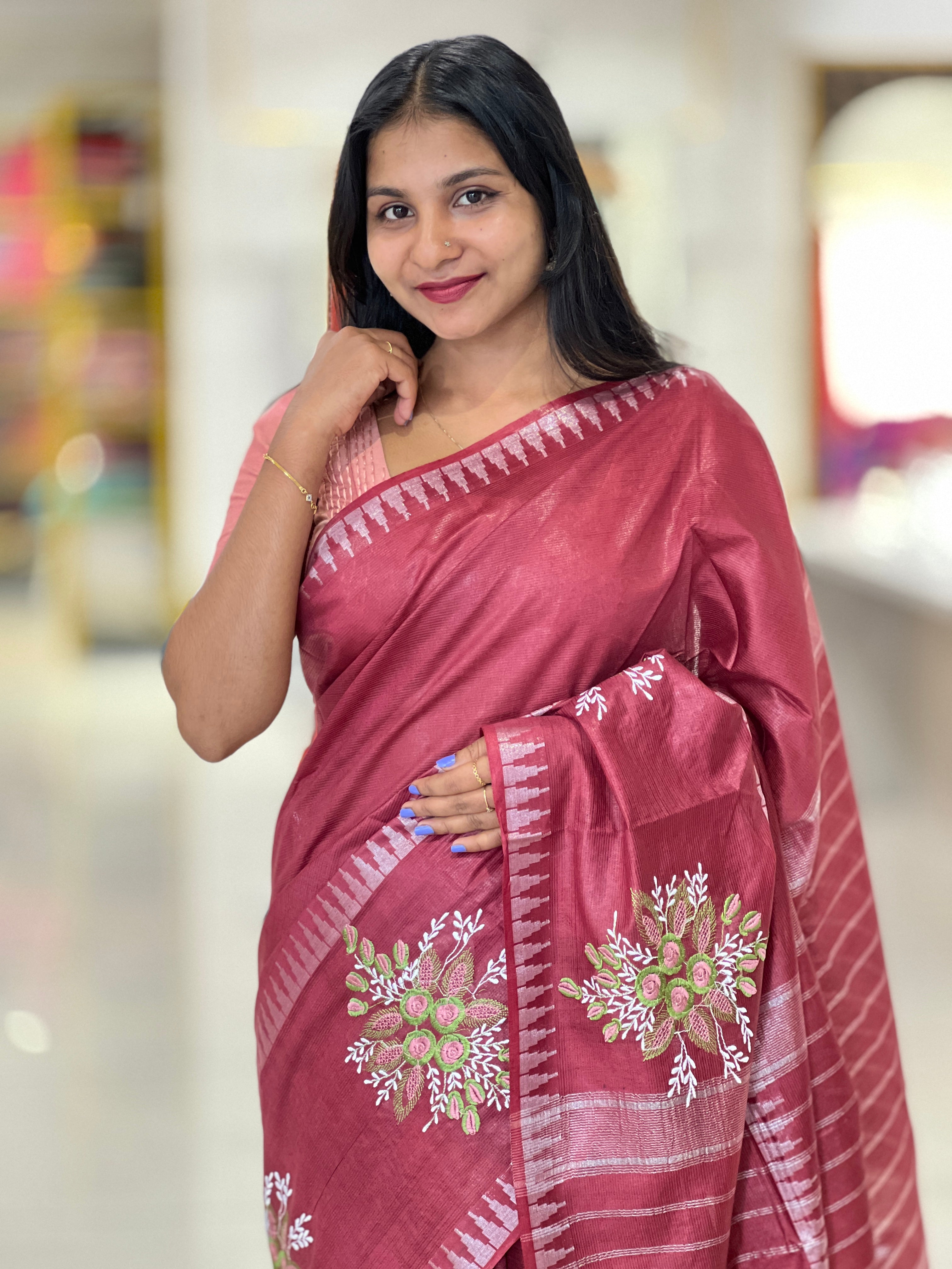 • Floral Embroidery Detailed Bhagalpuri Saree | NHH396