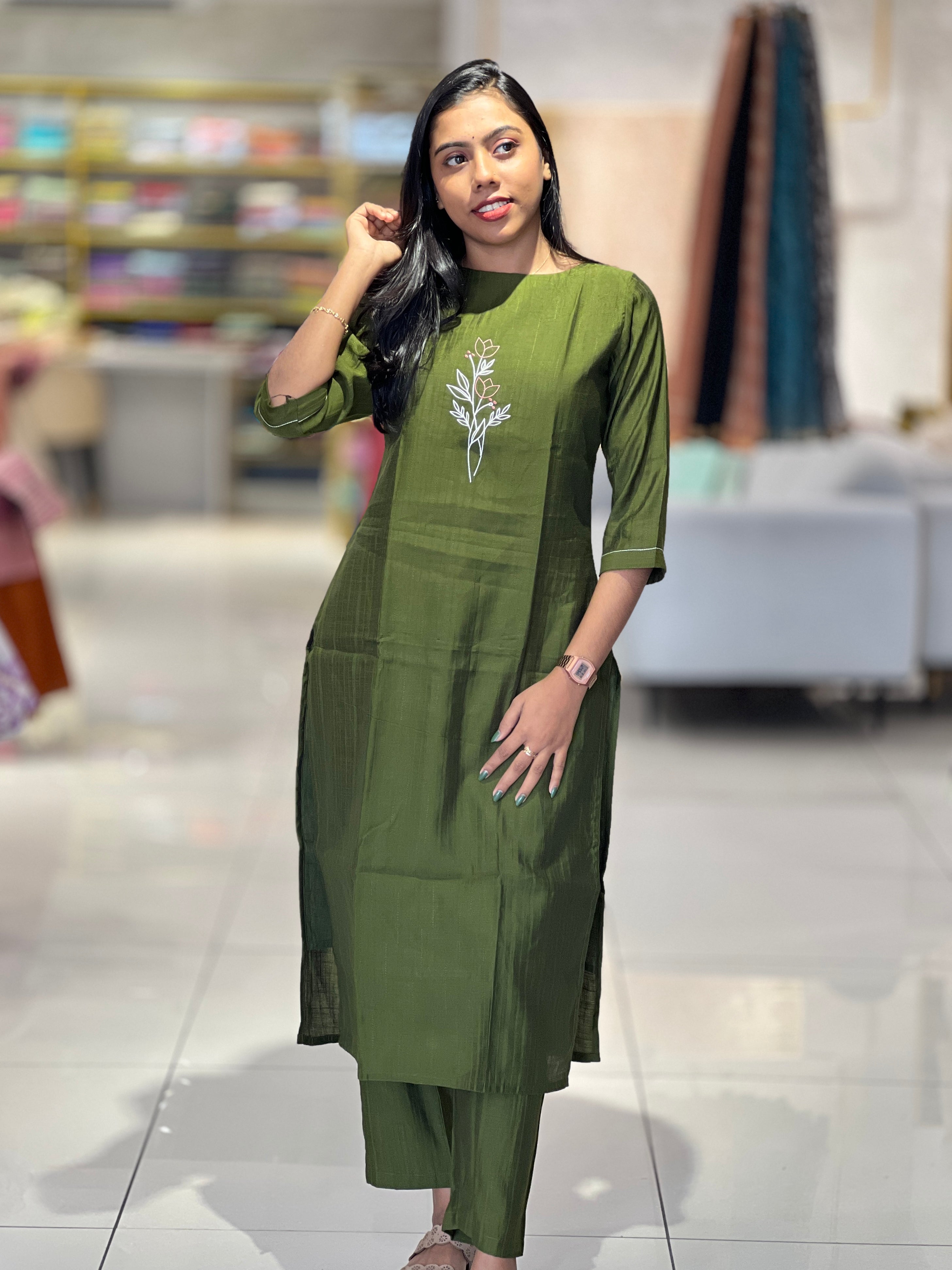 - Style: Floral Embroidery Detailing on Yoke, Slited