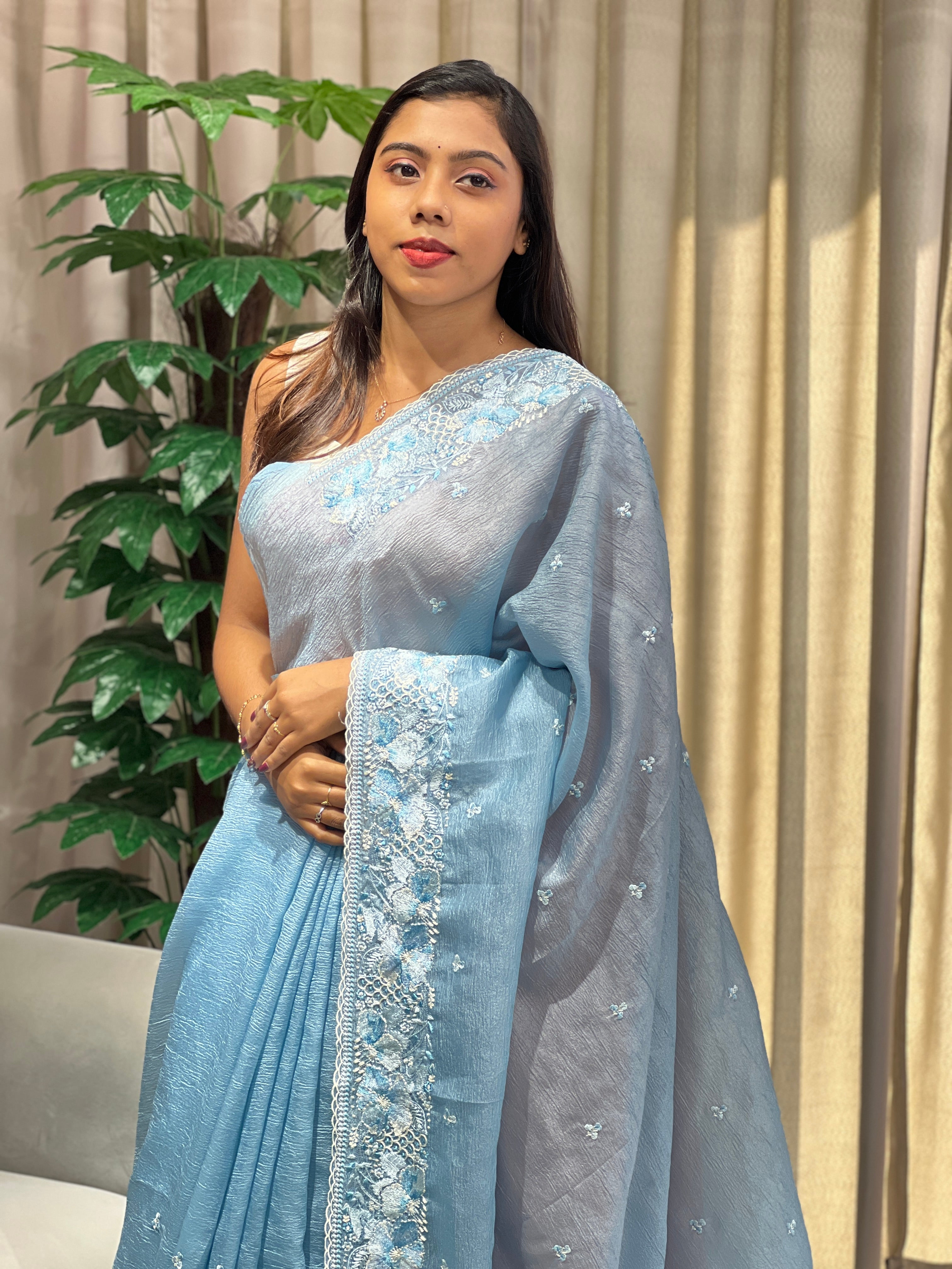 - Style: Floral Embroidery, Scattered Buttas, Lace Attached Scallop Detailing