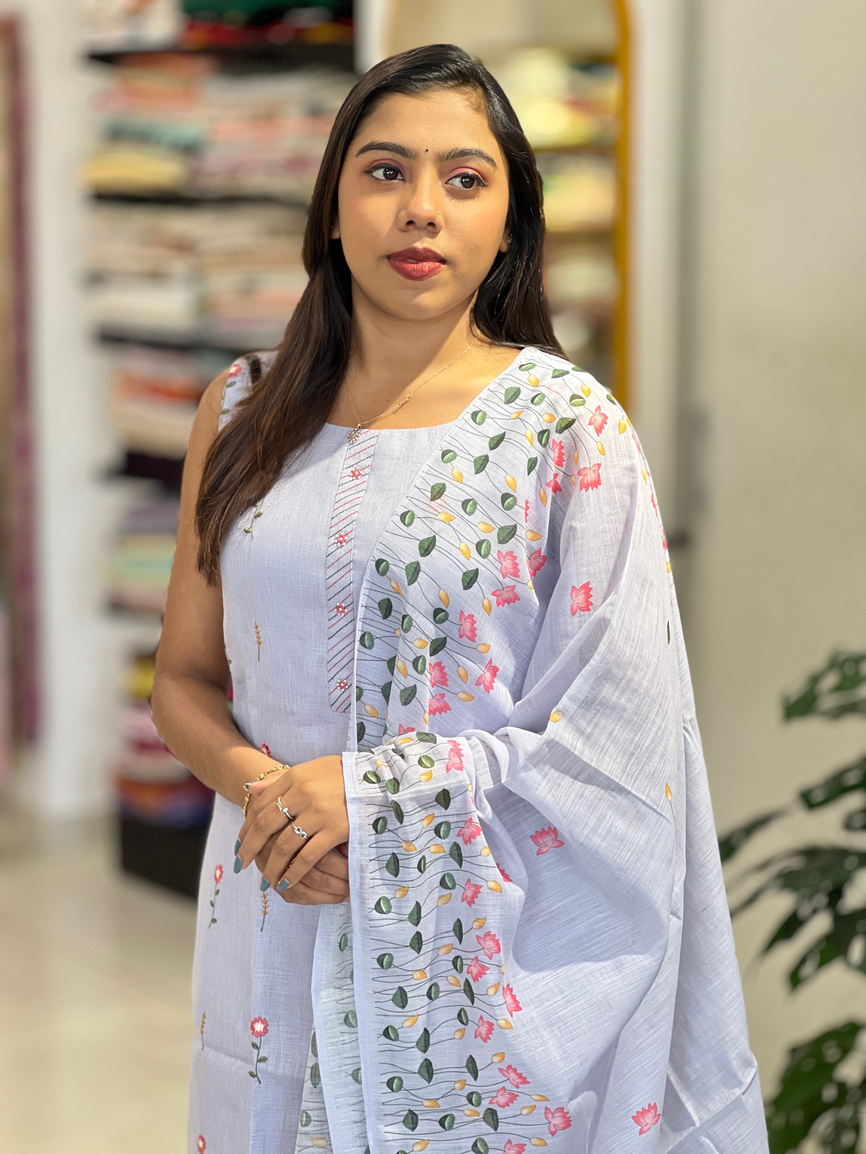 - Style: Floral Embroidery Detailing, Beads Detailing On Yoke, Slitted