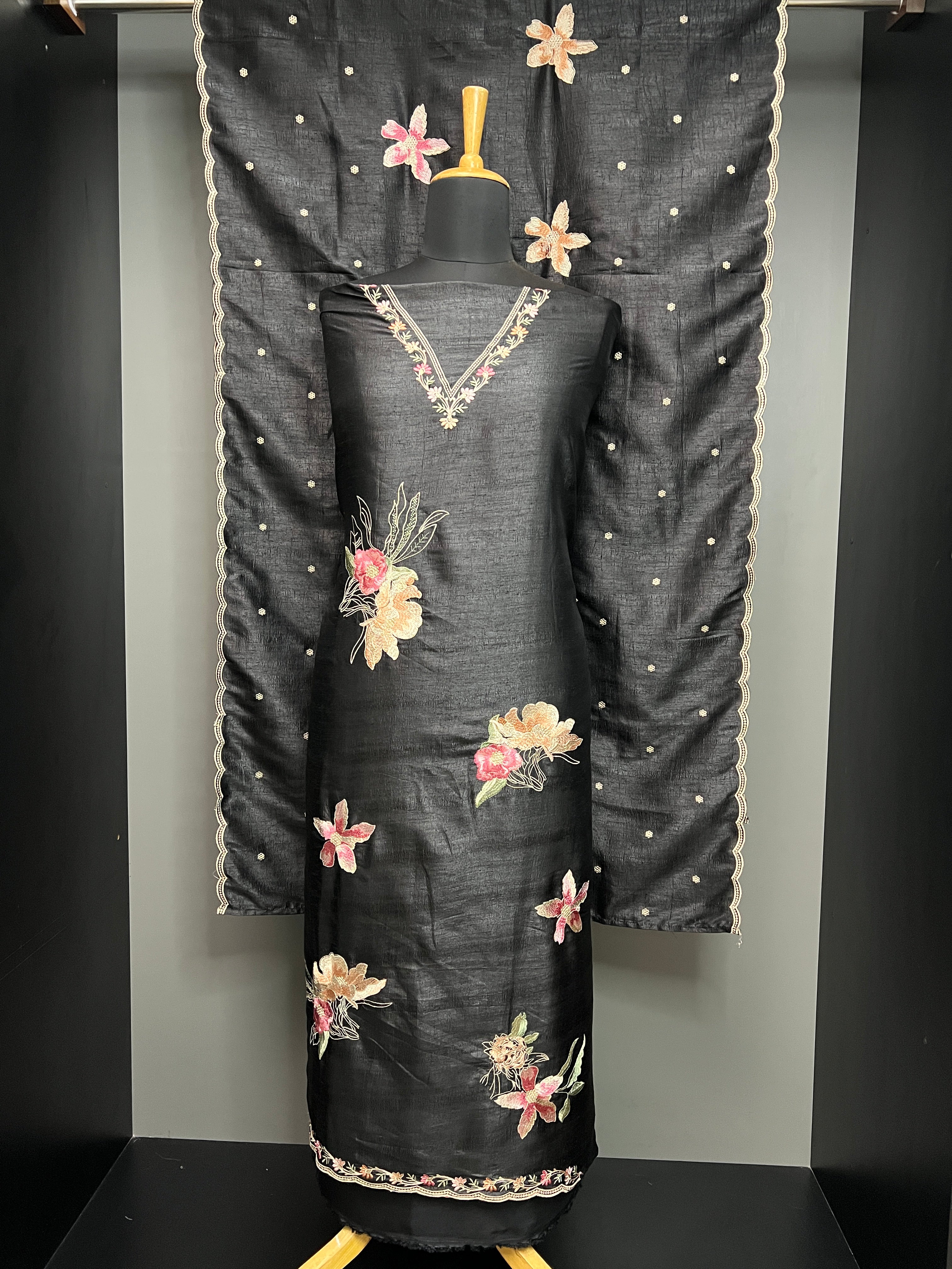 • Floral Embroidery Detailed Semi Tussar Salwar Set | SP329