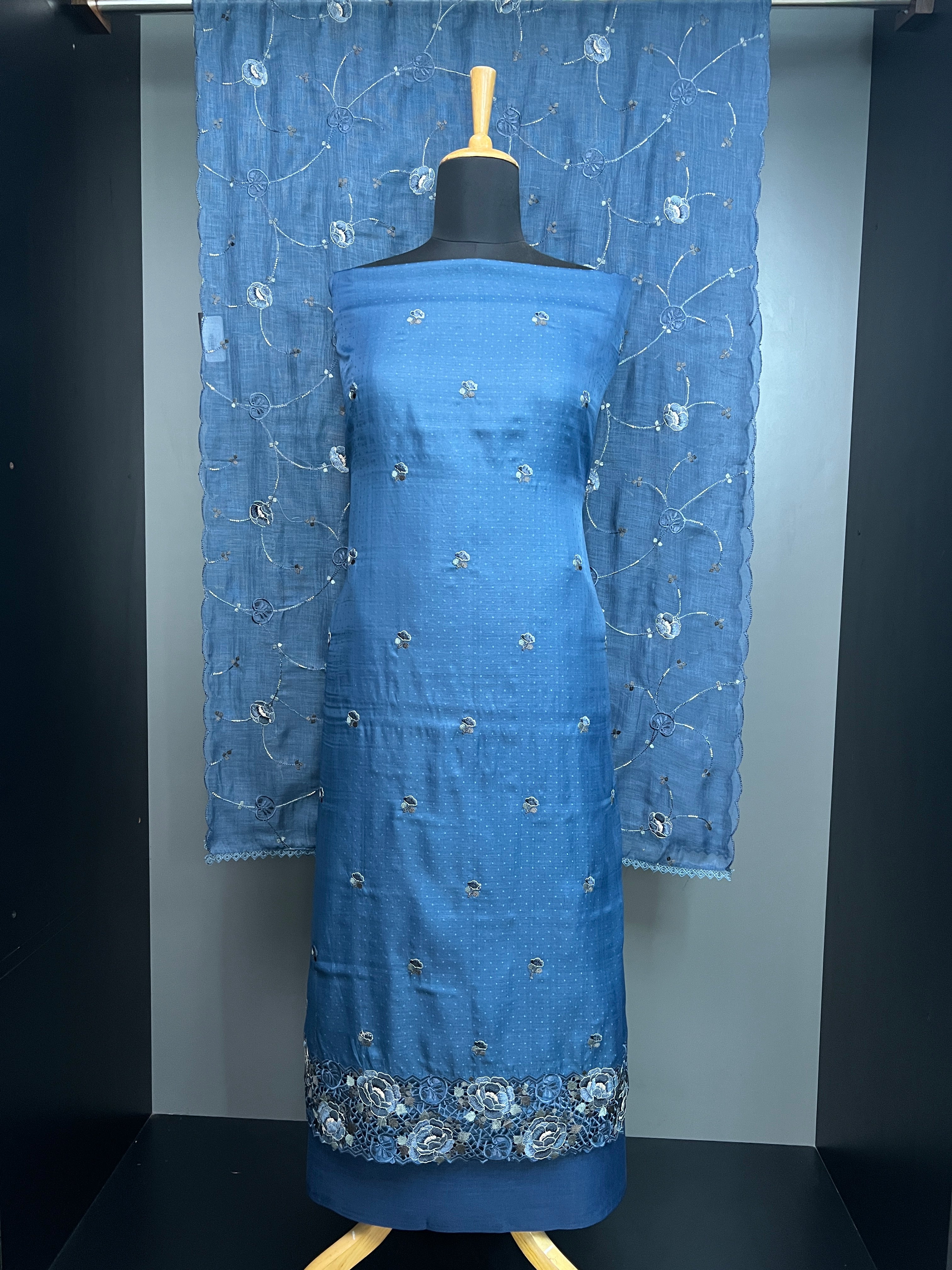- Style: Scattered Embroidery Butta, Floral With Cut Work Detailed Lower Hem Portion