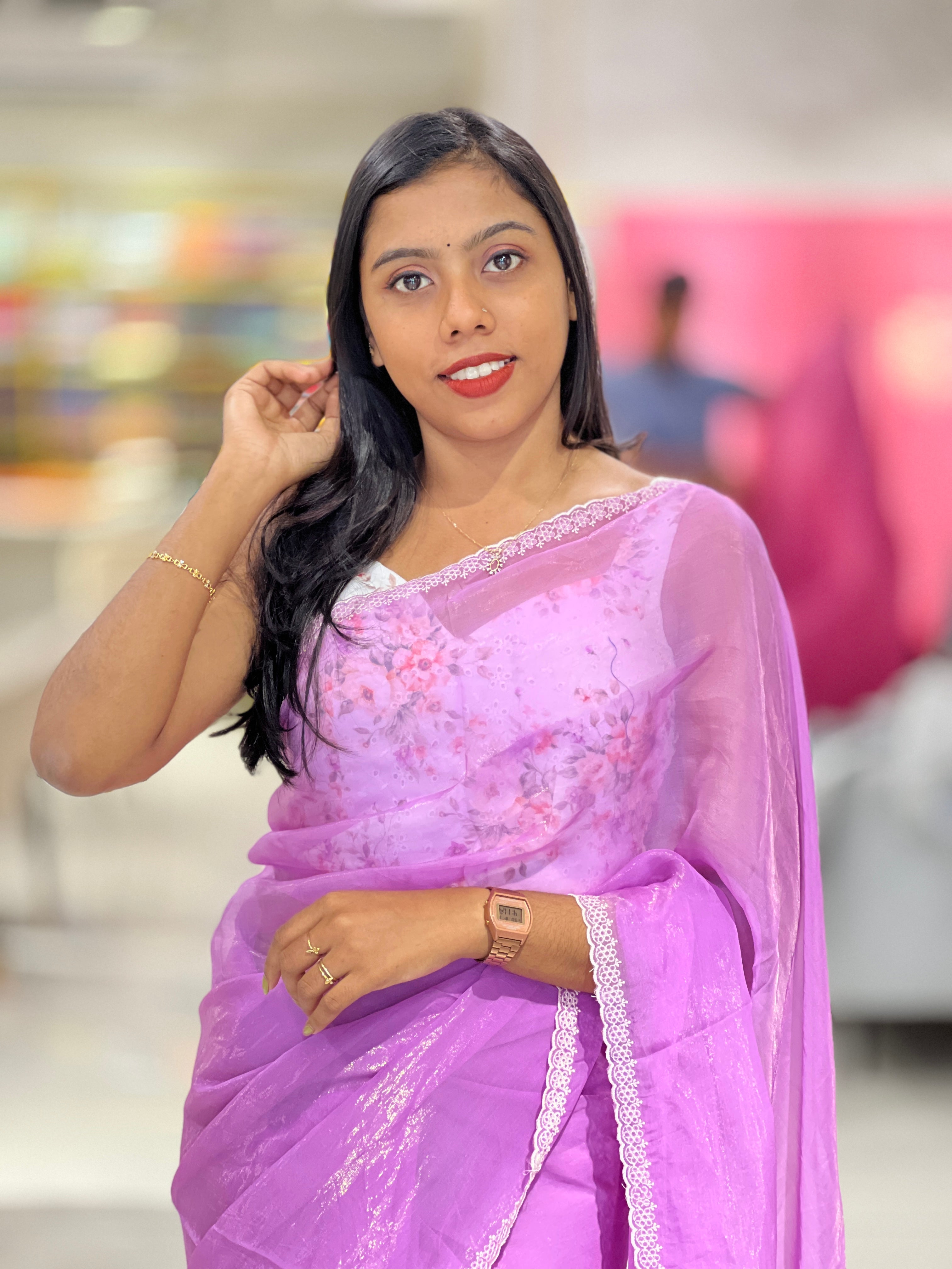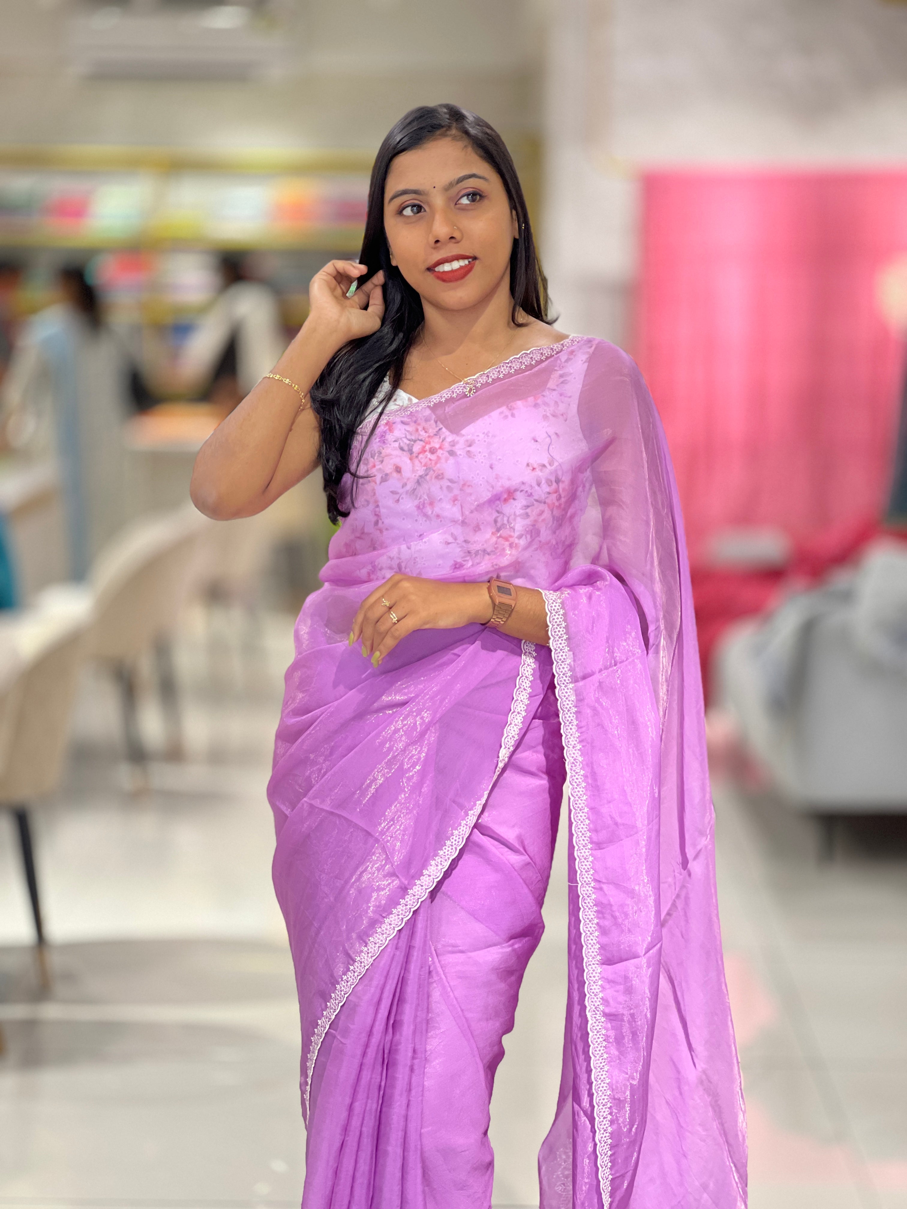 - Style: Floral Point Embroidered Pallu, Embroidery Detailed Border, Scallop Finish