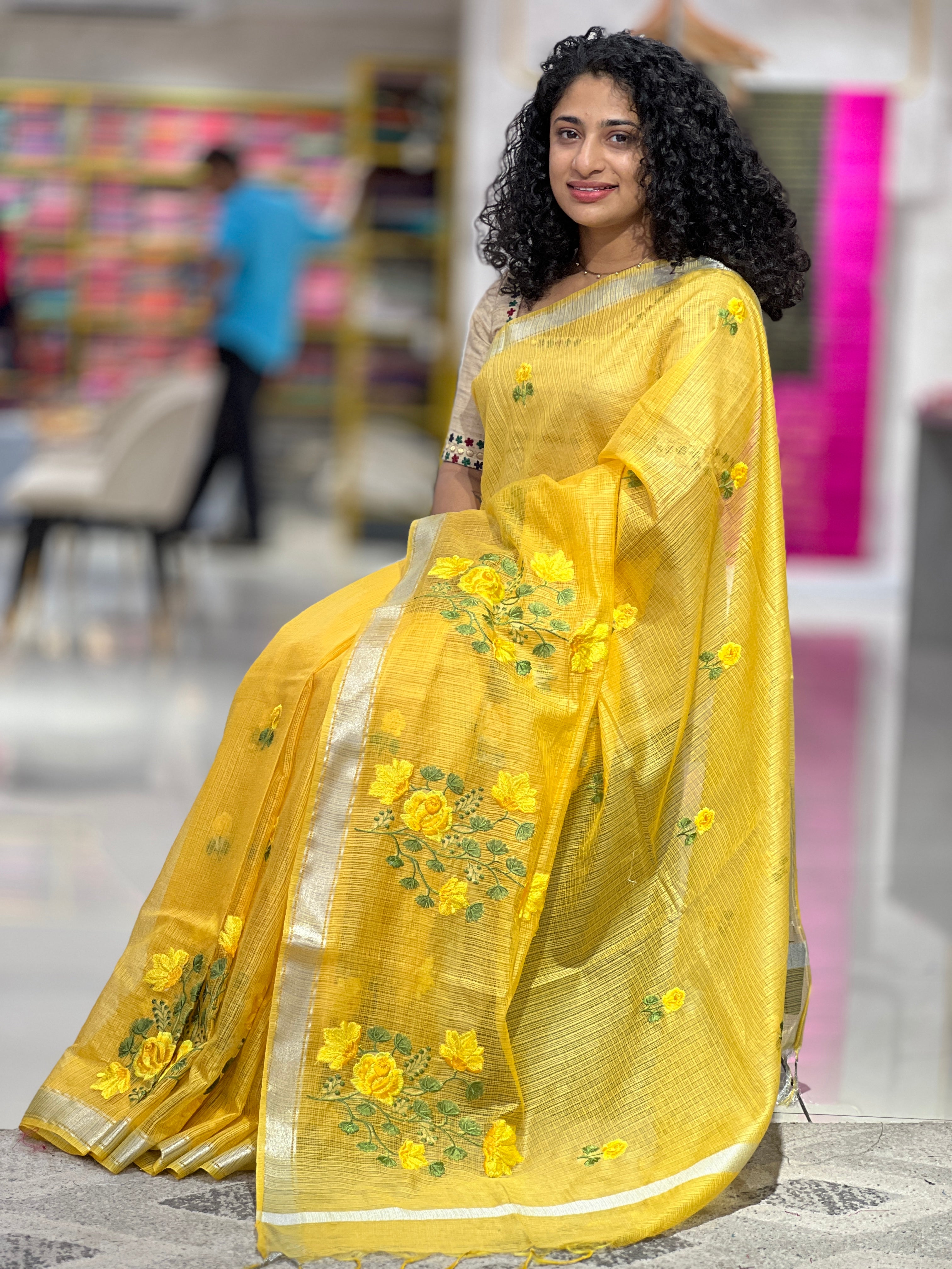 - Style: Machine Embroidery Pattern, Silver Zari Border, Power Loom, Floral Pattern