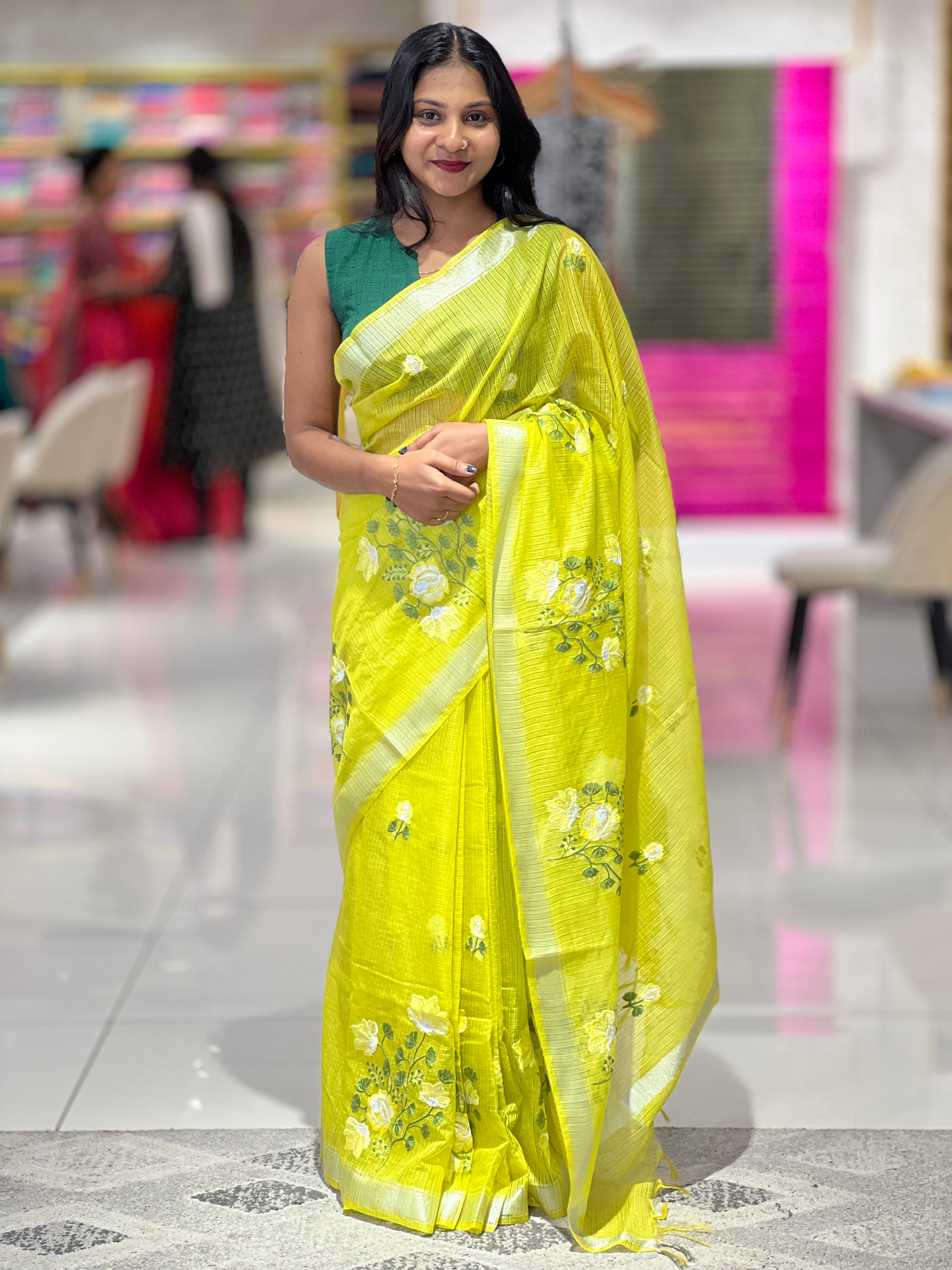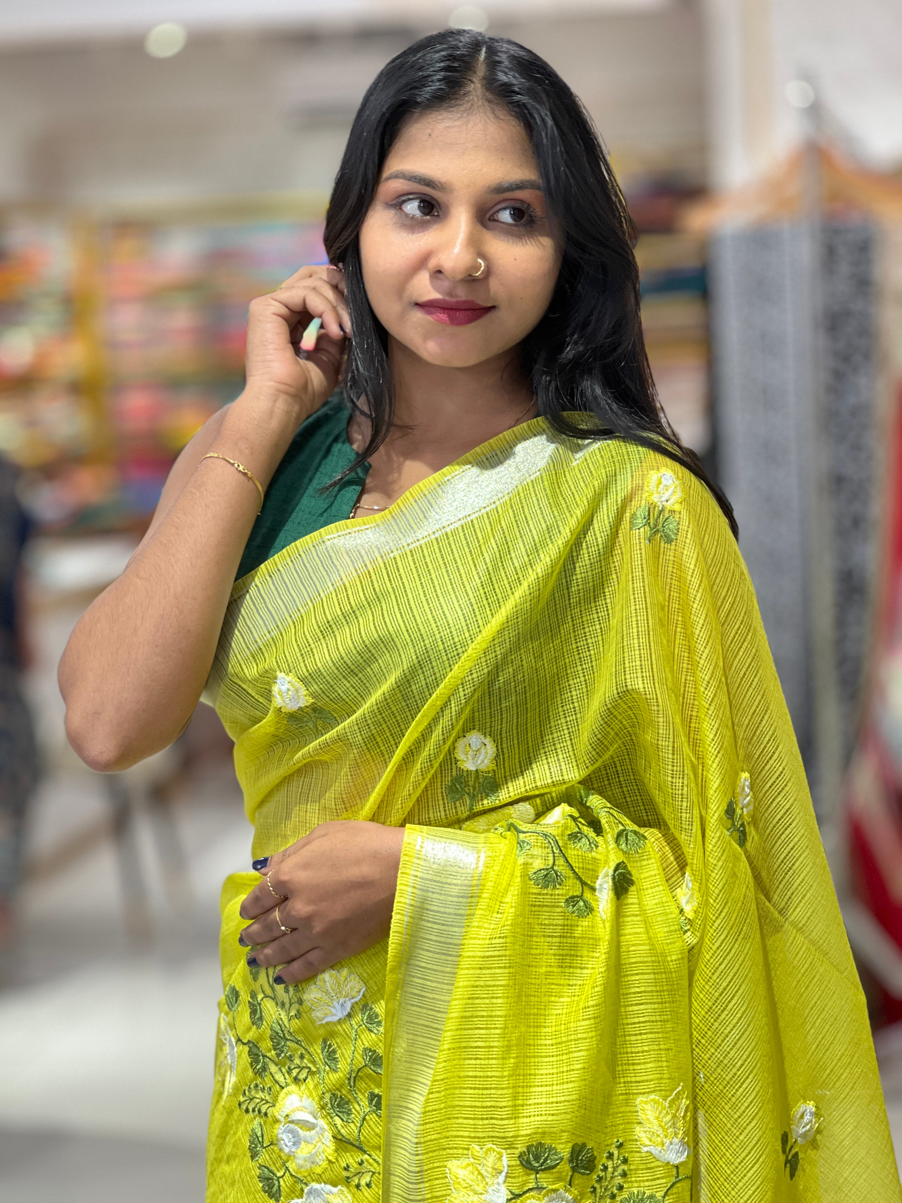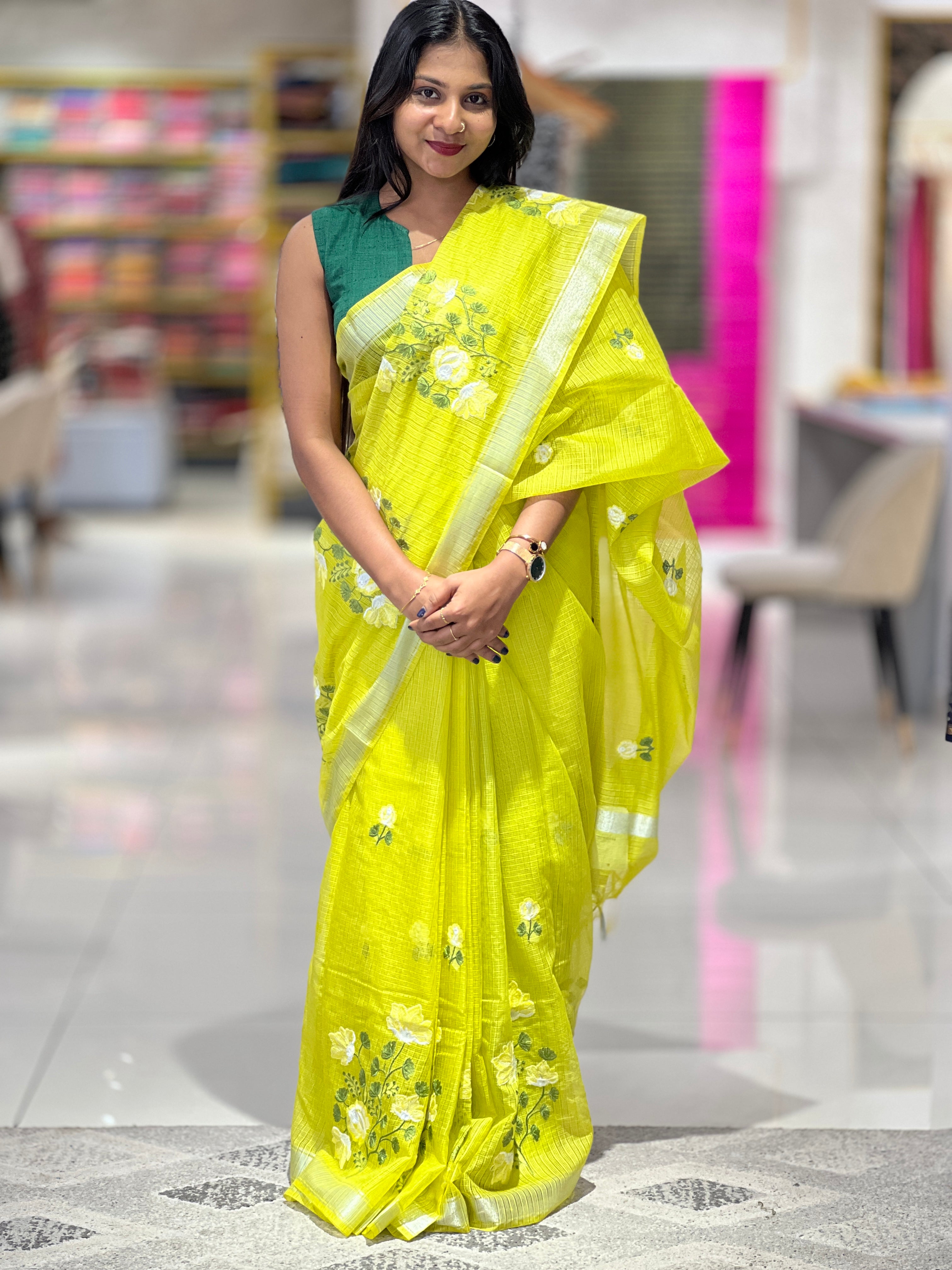 - Style: Machine Embroidery Pattern, Silver Zari Border, Power Loom, Floral Pattern