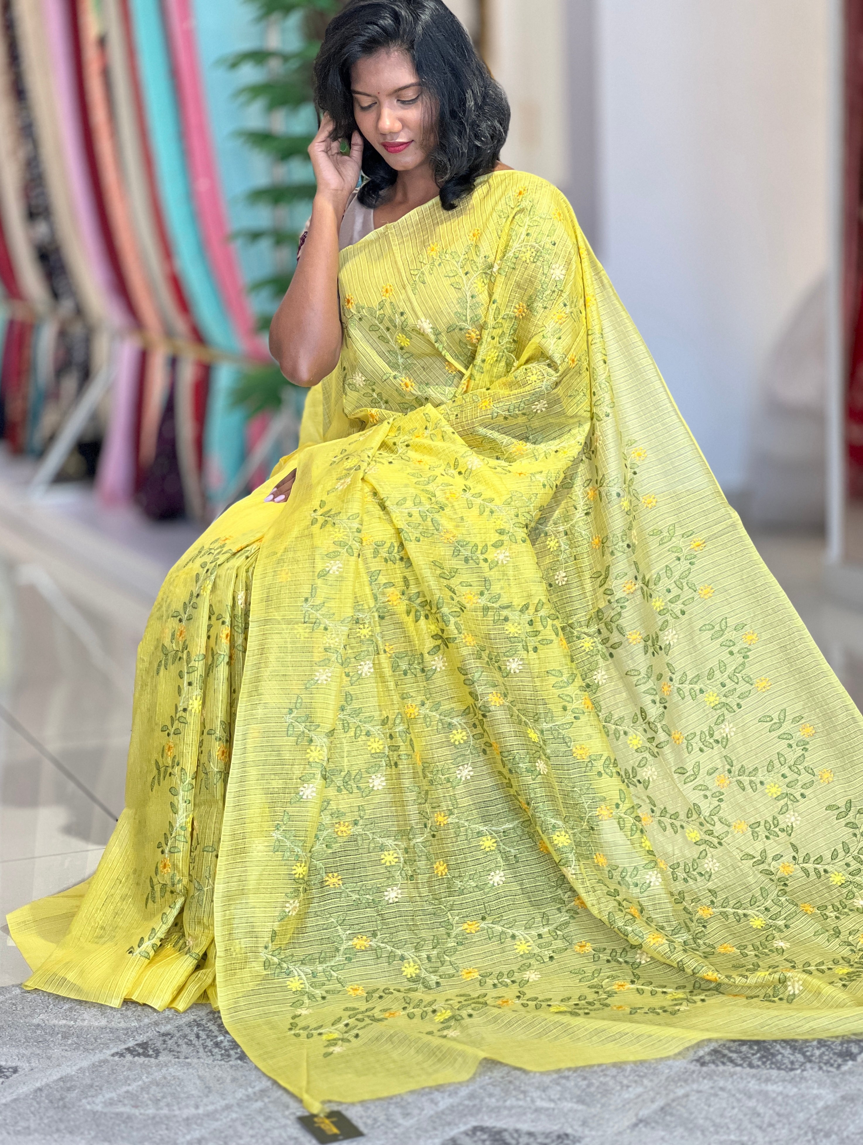 Floral Embroidery Detailed Silky Kota Saree | NHH474