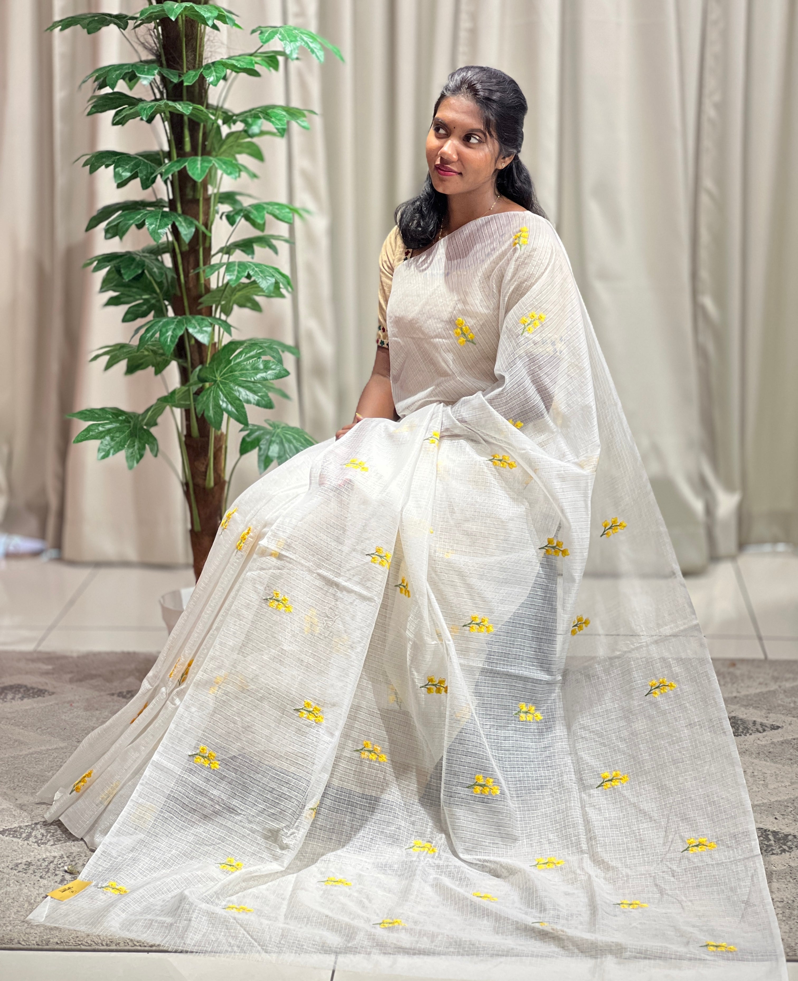 Floral Embroidery Detailed Silky Kota Saree | NHH512 Floral Embroidery Detailed Silky Kota Saree | NHH512