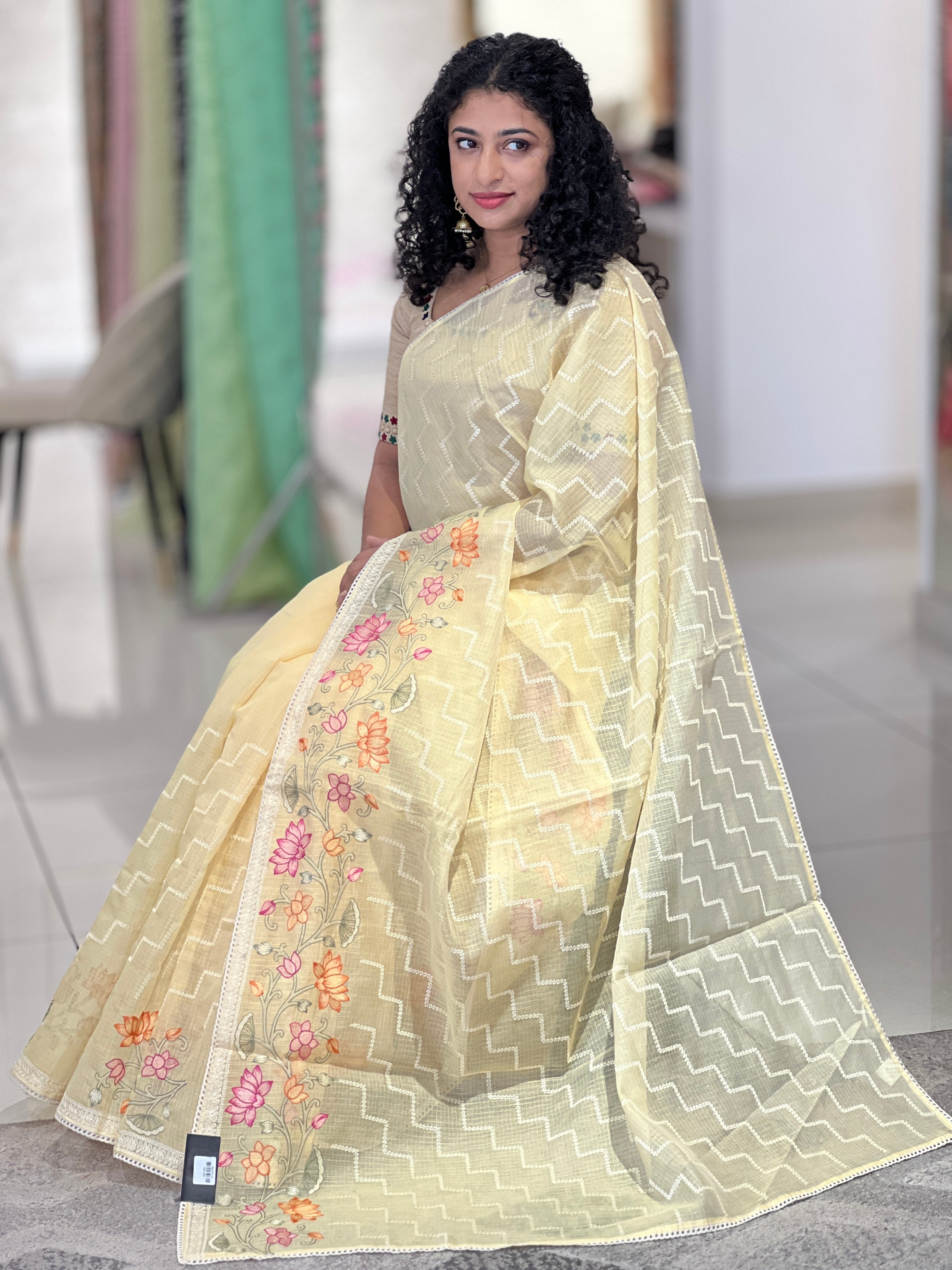 - Style: Diagonal Zig Zag Patterned Embroidery, Multi Color Floral Embroidered Borders, Lace Detailed Edges