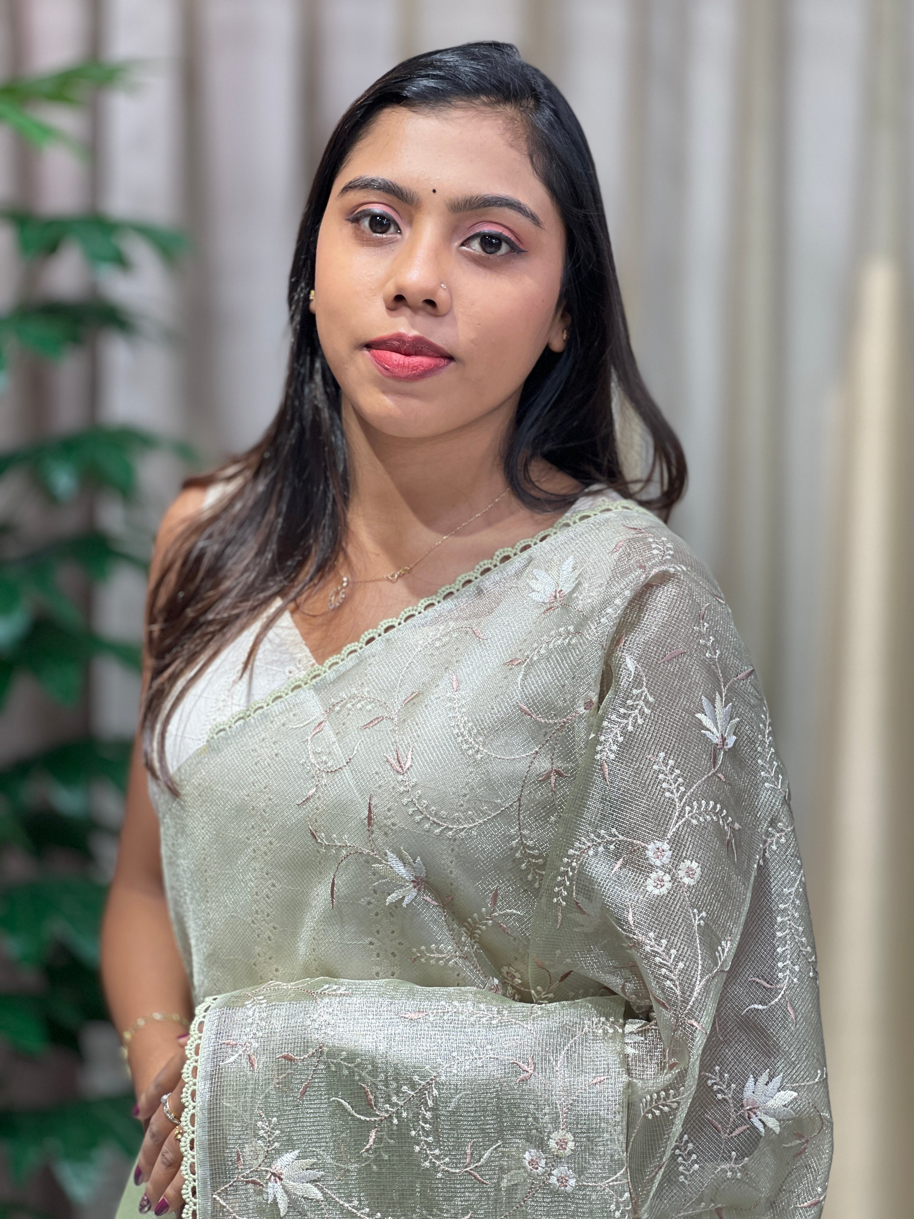 • Floral Embroidery Detailed Tissue Saree | PKS154