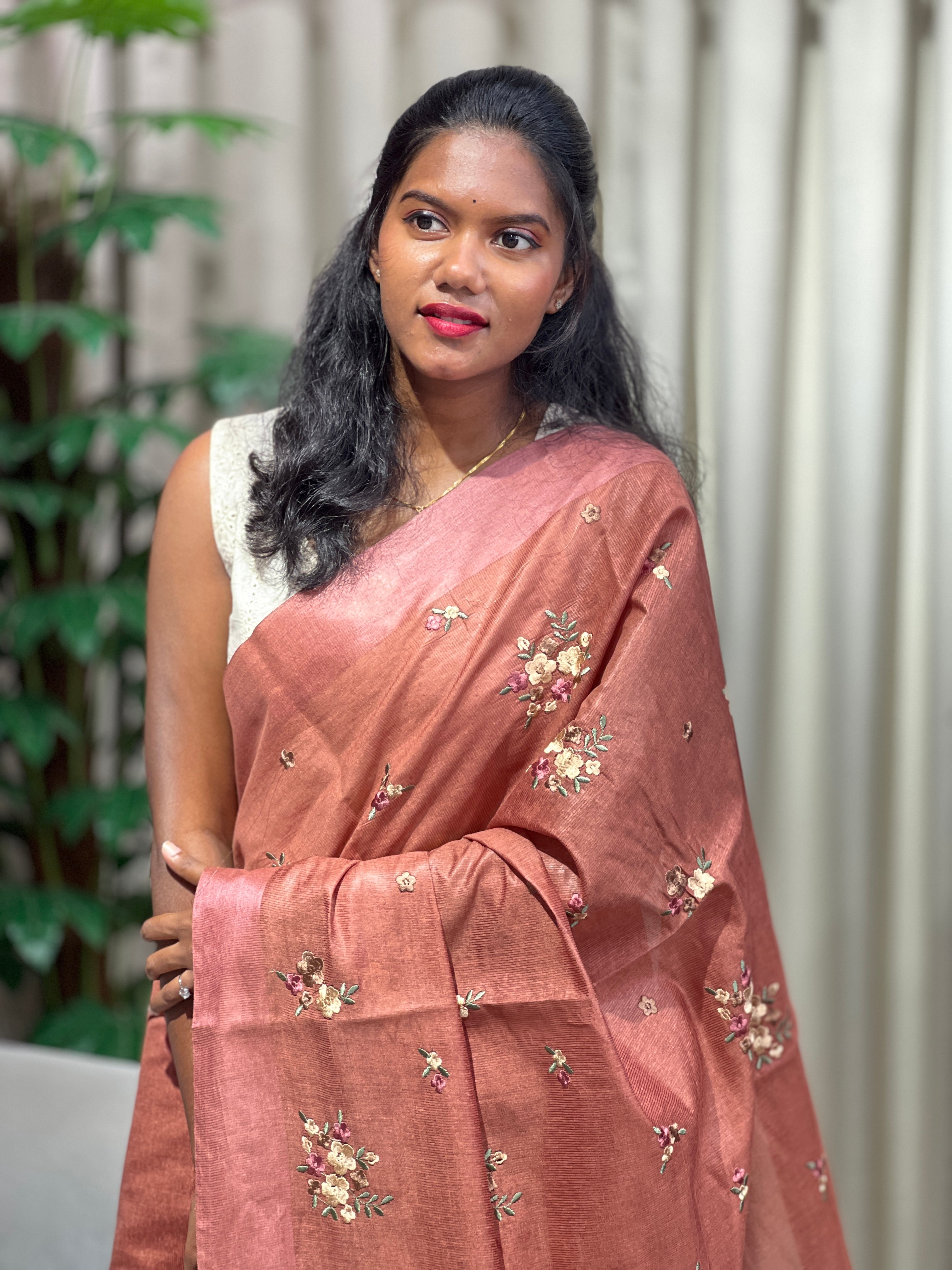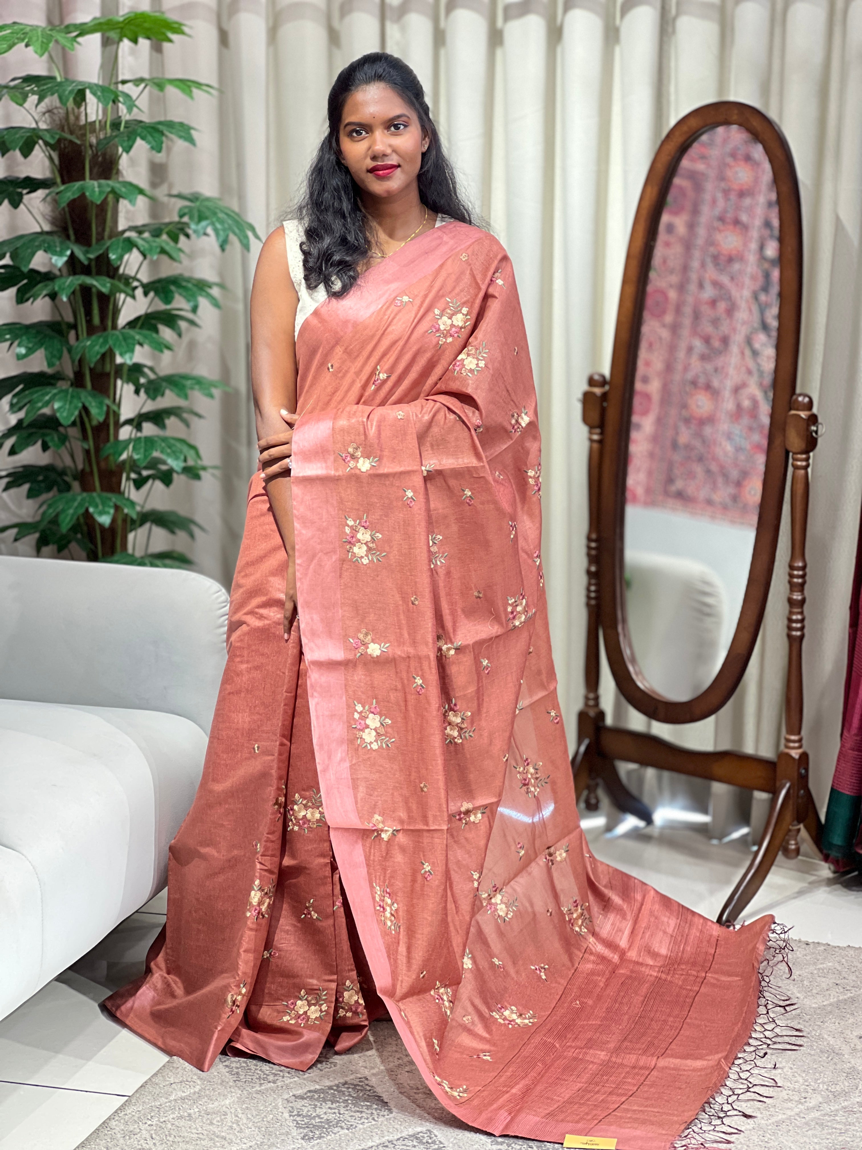 - Style: Floral Embroidery Pattern, Jute Woven Pallu