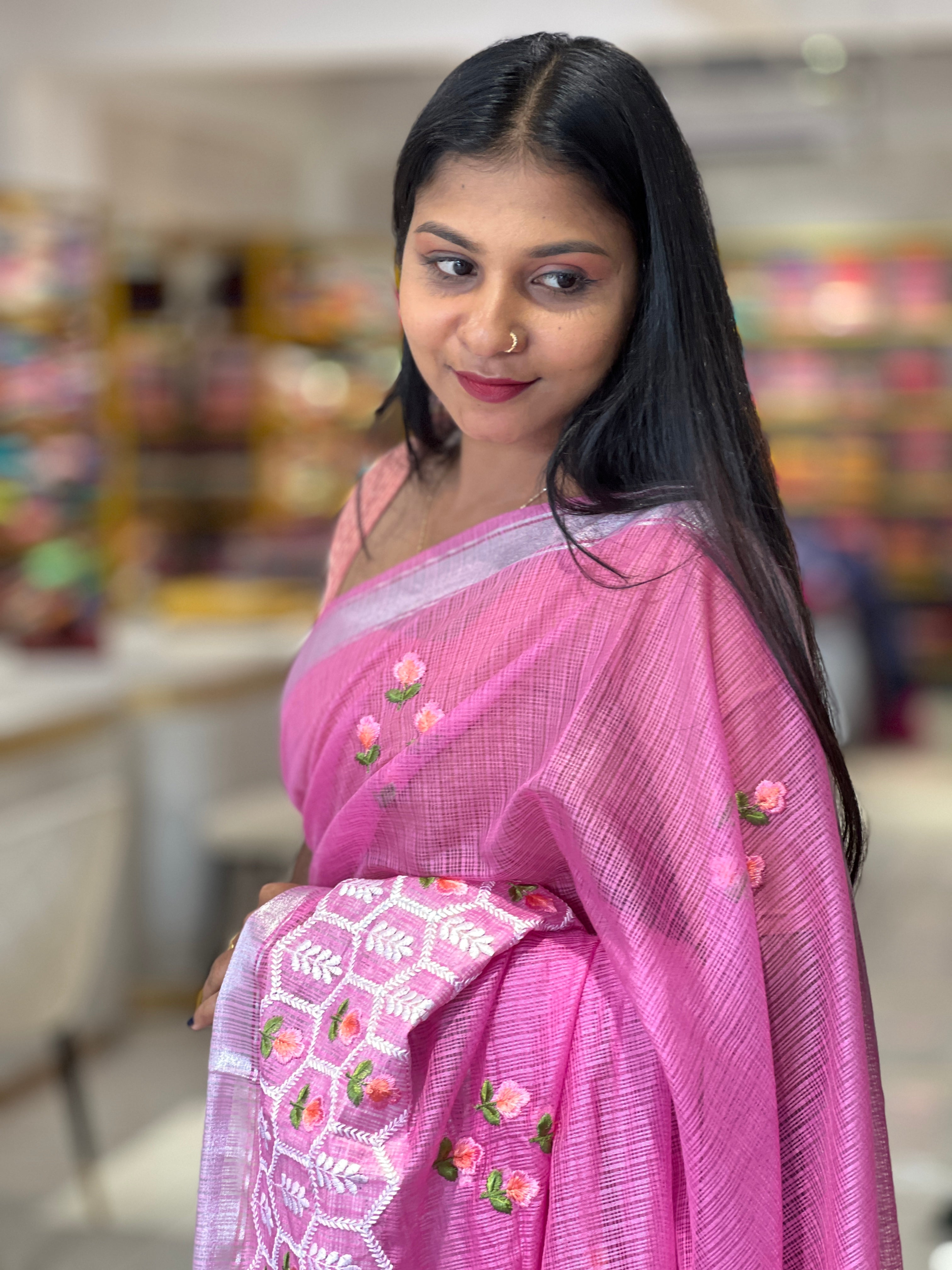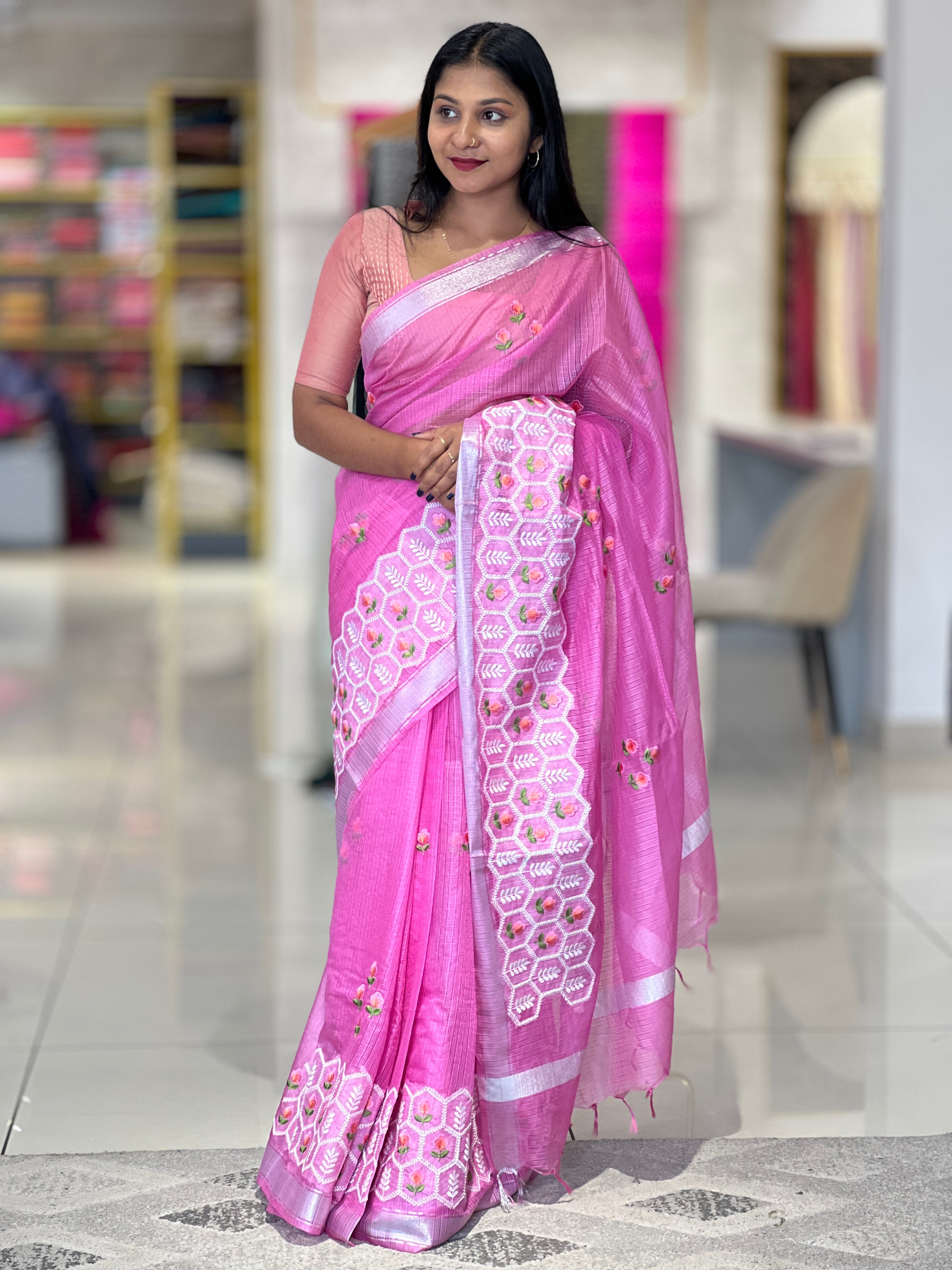 - Style: Embroidery Pattern, Silver Zari Border, Power Loom,Honey Comb Design