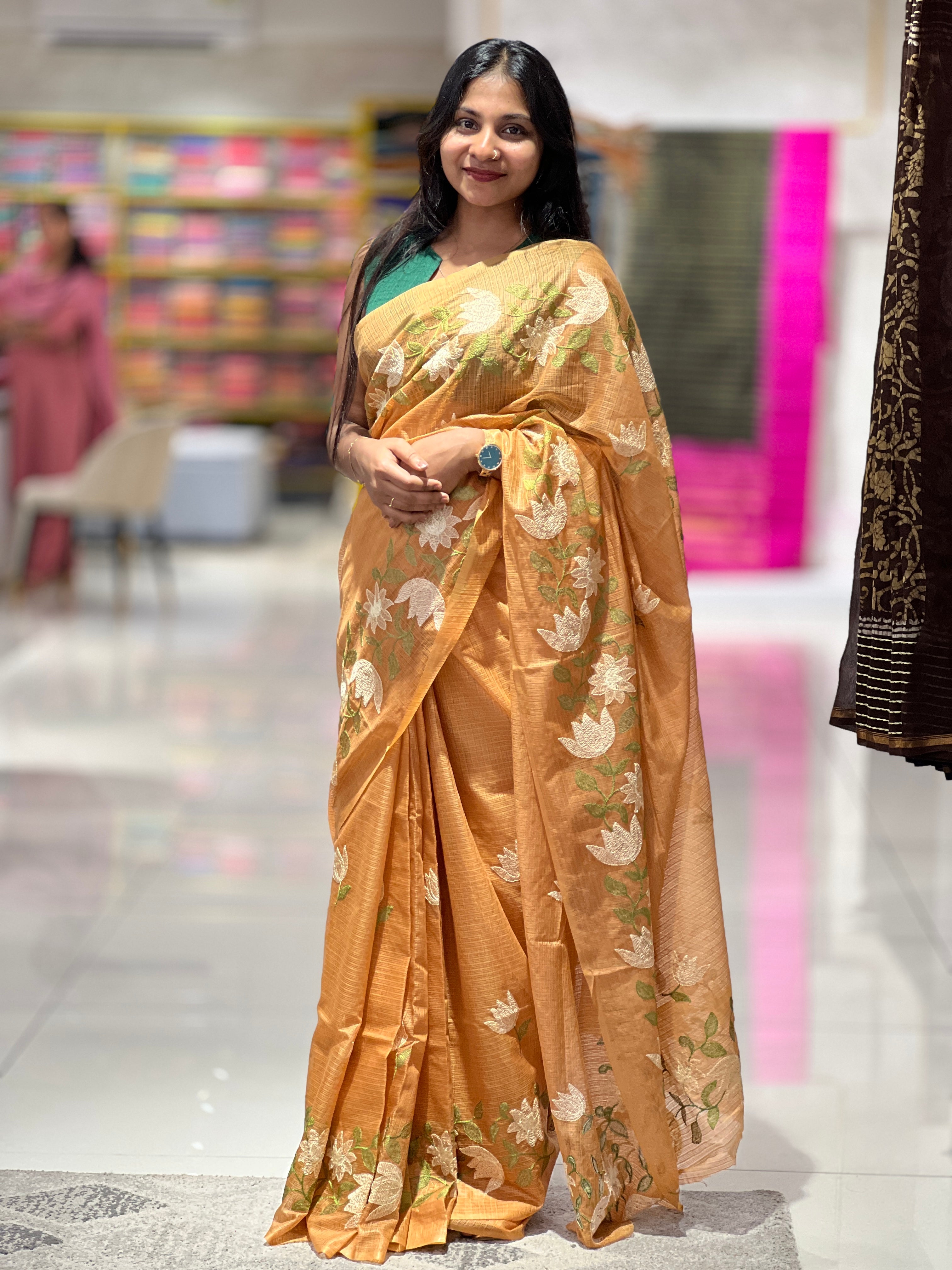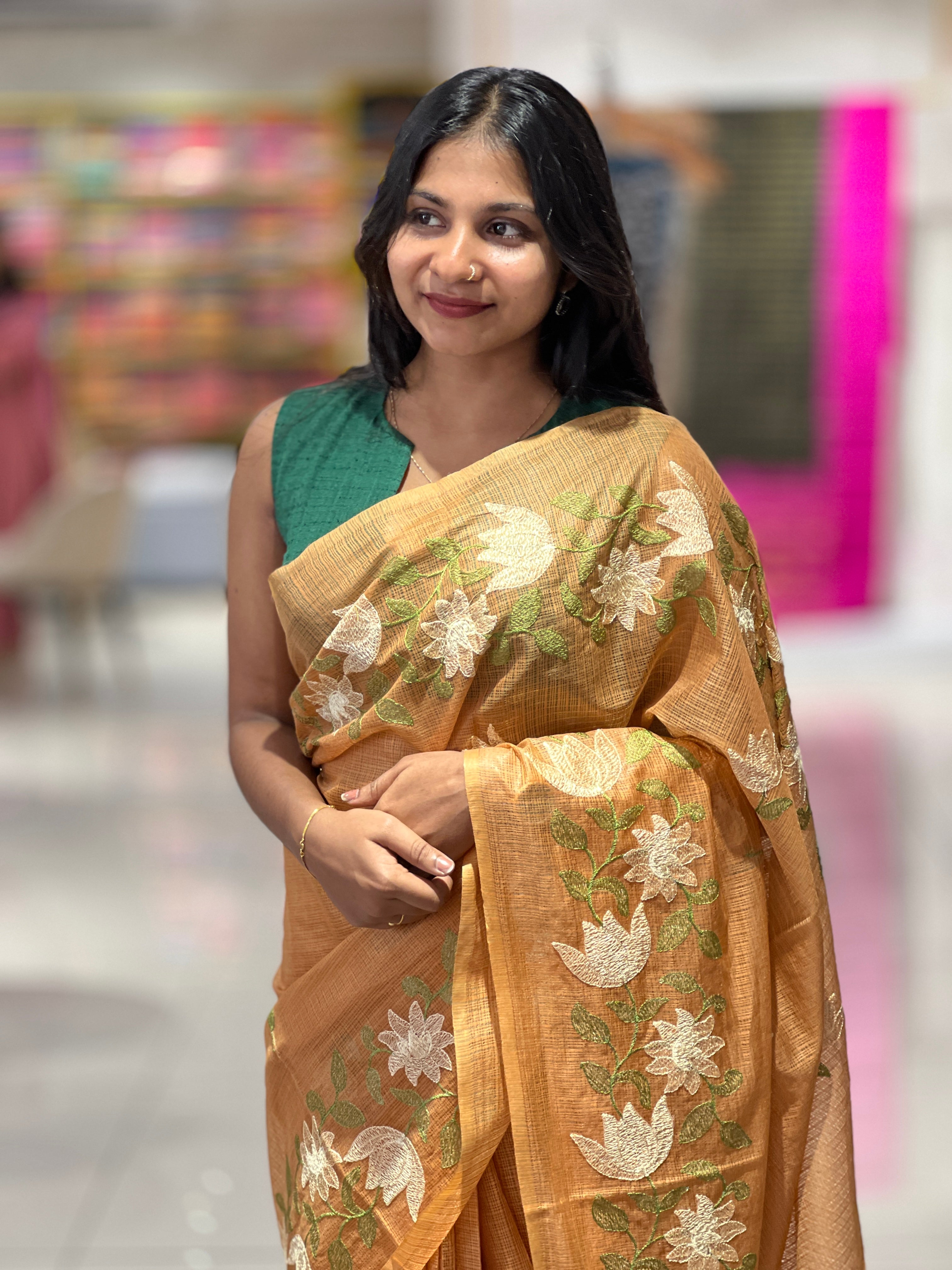 - Style: Machine Embroidery Pattern, Power Loom, Floral Embroidery Lower Border, Scattered Floral Motifs