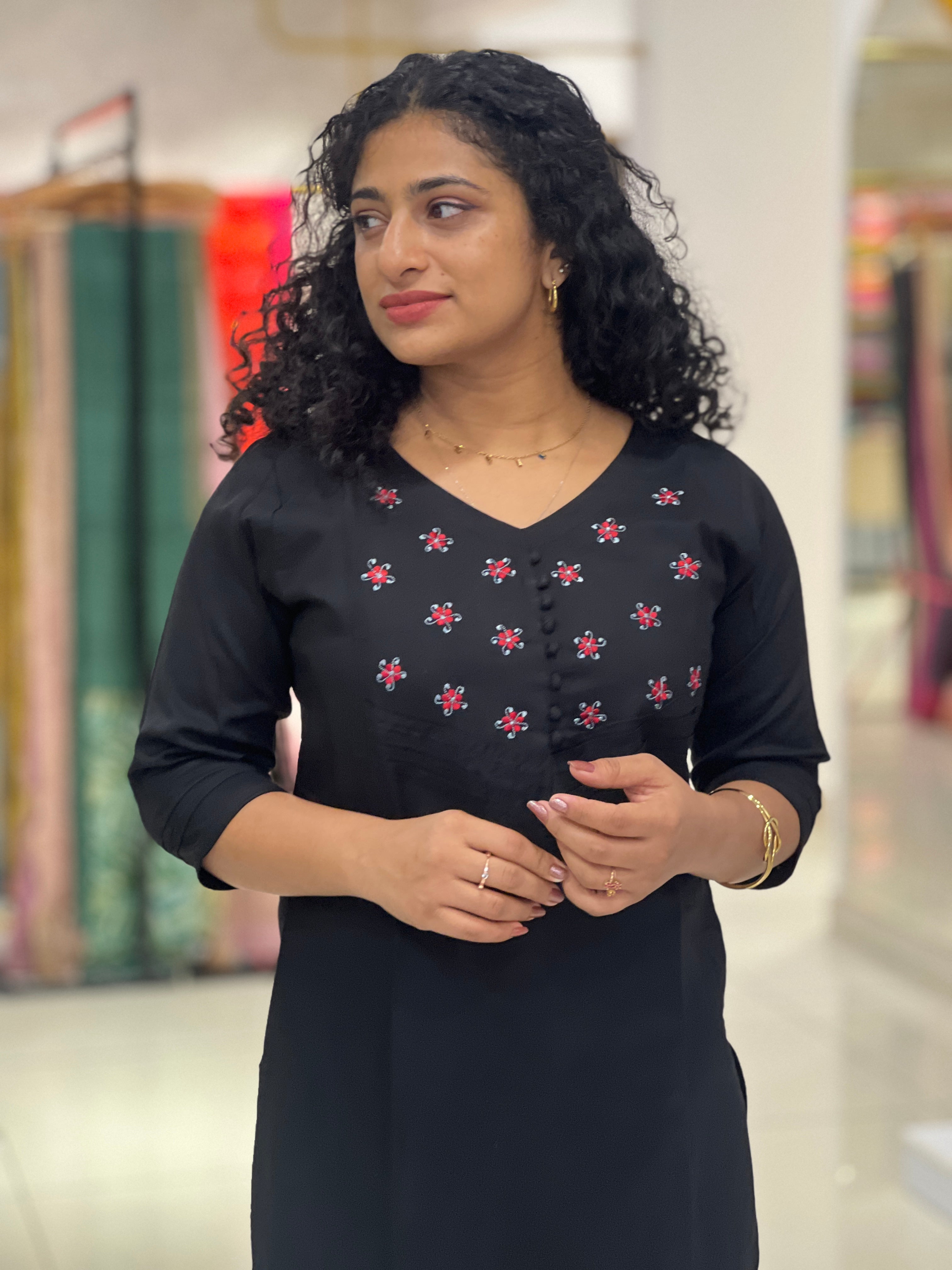 - Style: Floral Embroidery Pattern, Potli Detailing, Side Slited