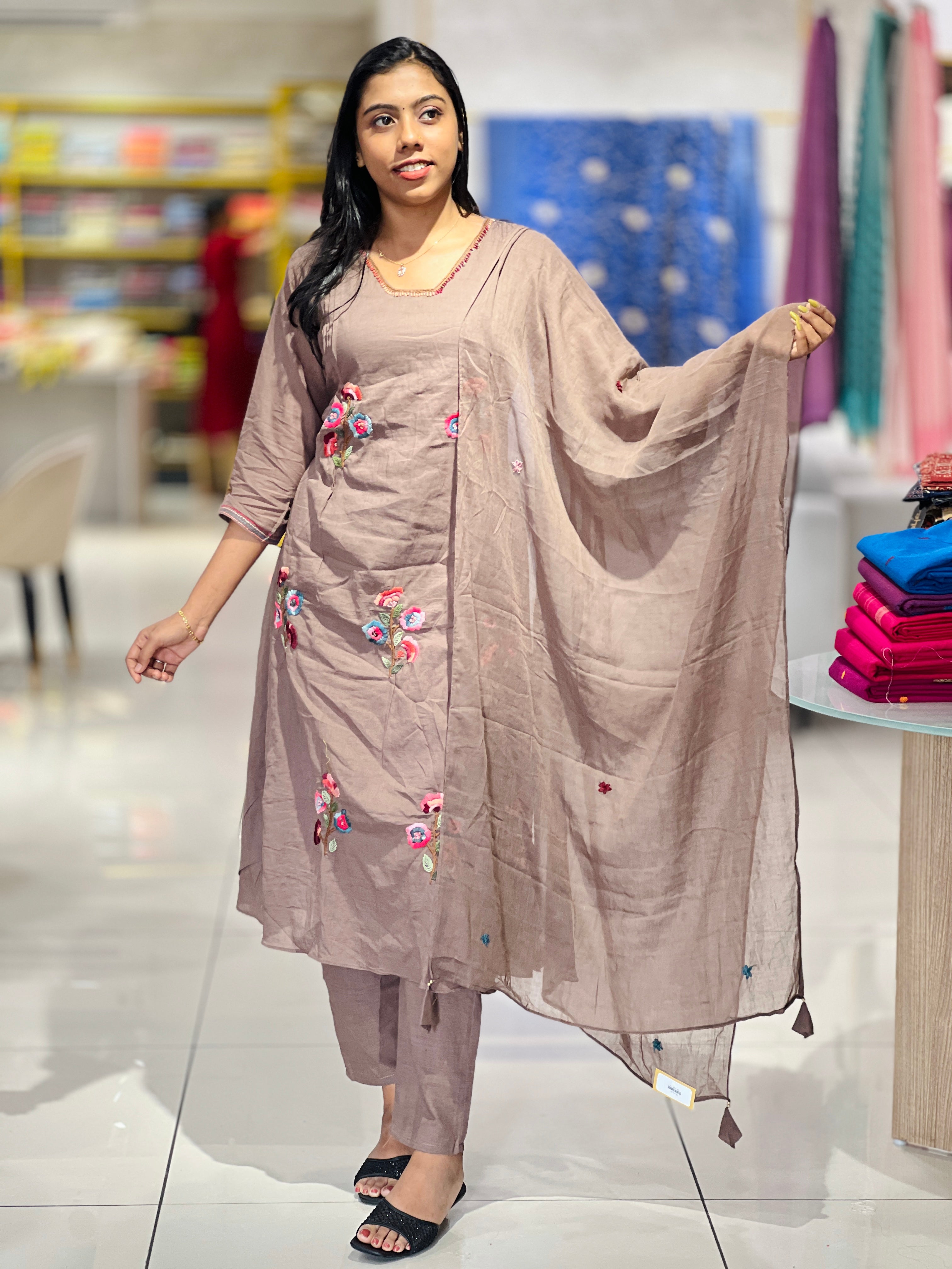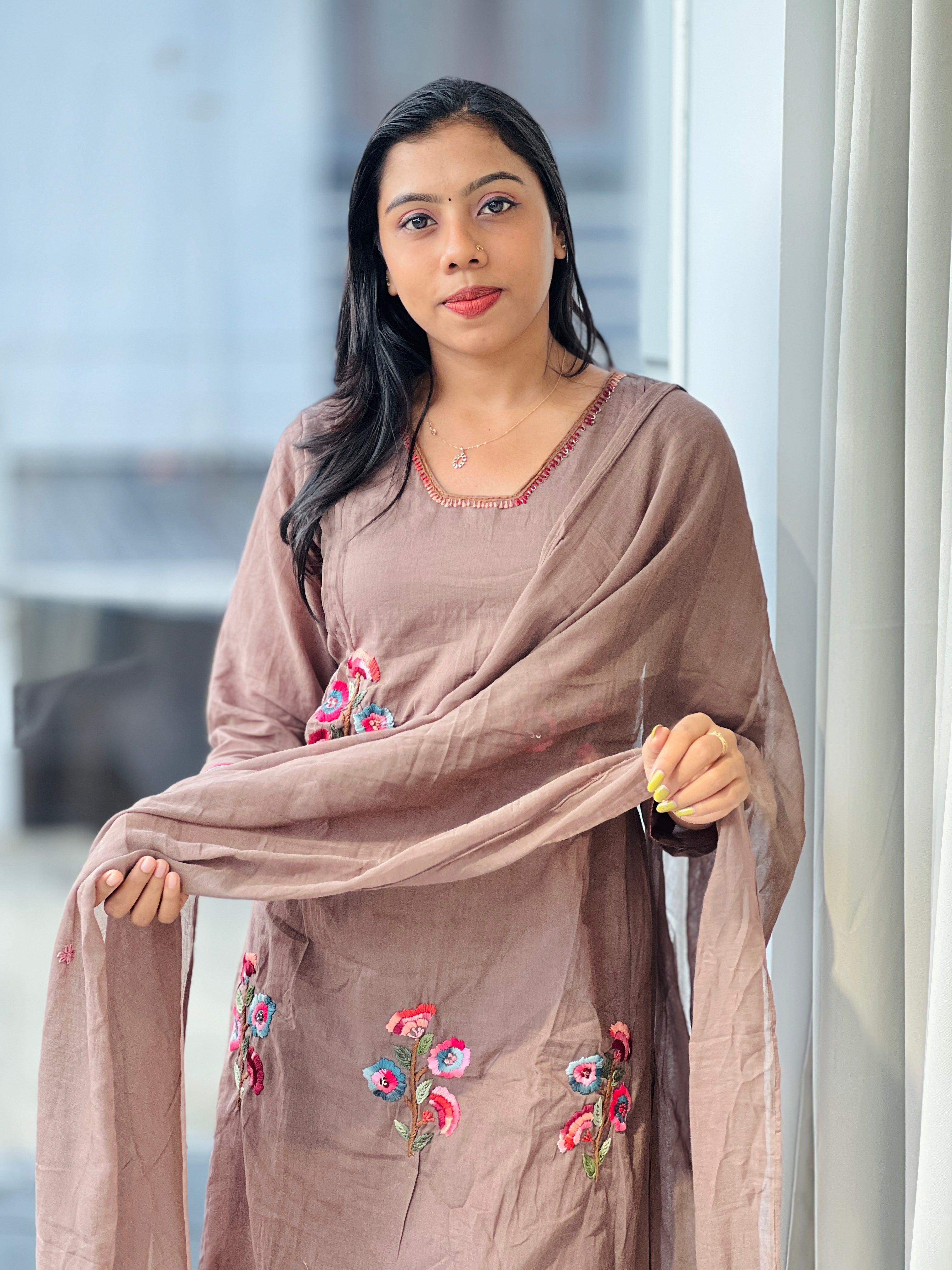 • Floral Embroidery & Sequence Detailed Cotton Kurta Set | KIA132
