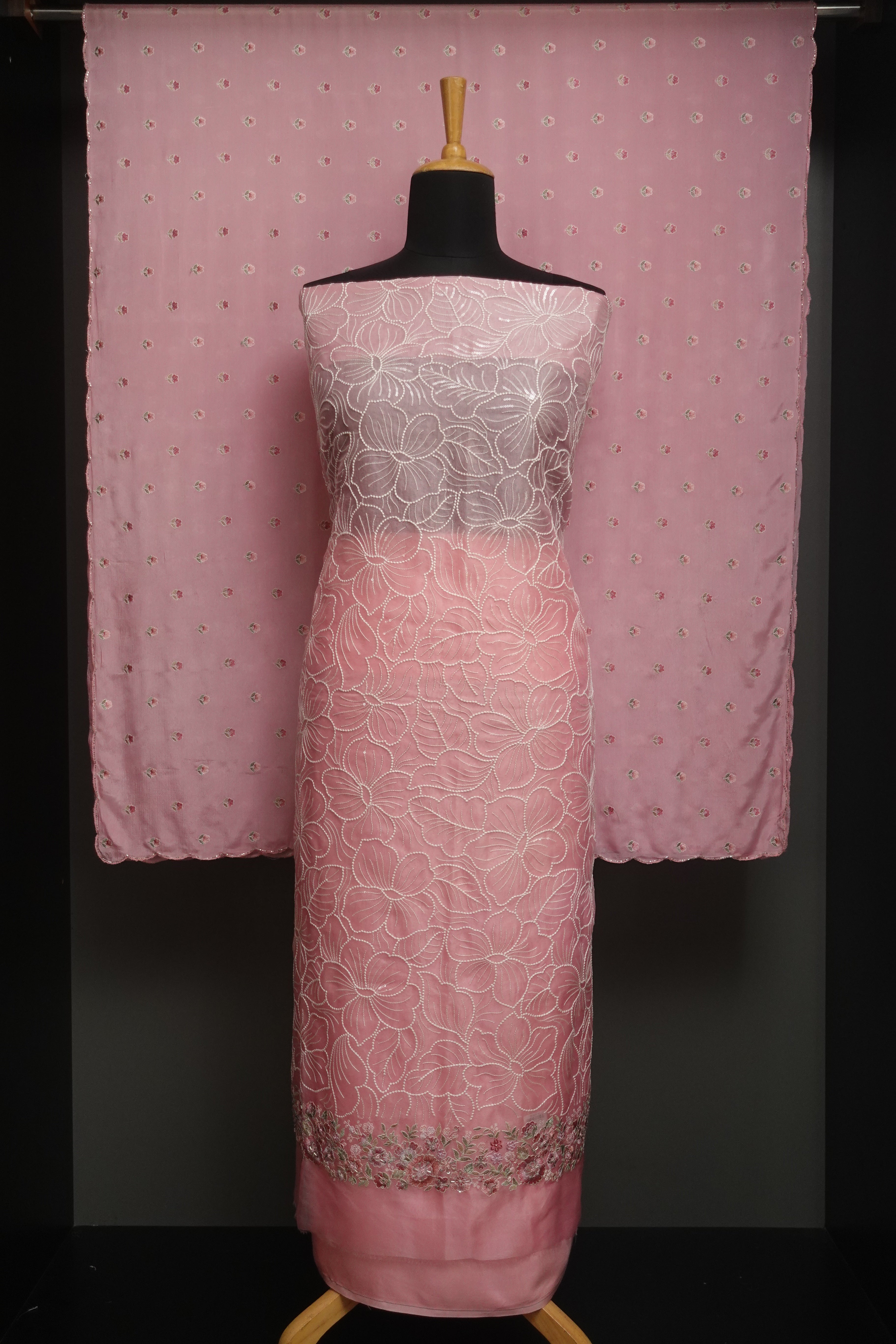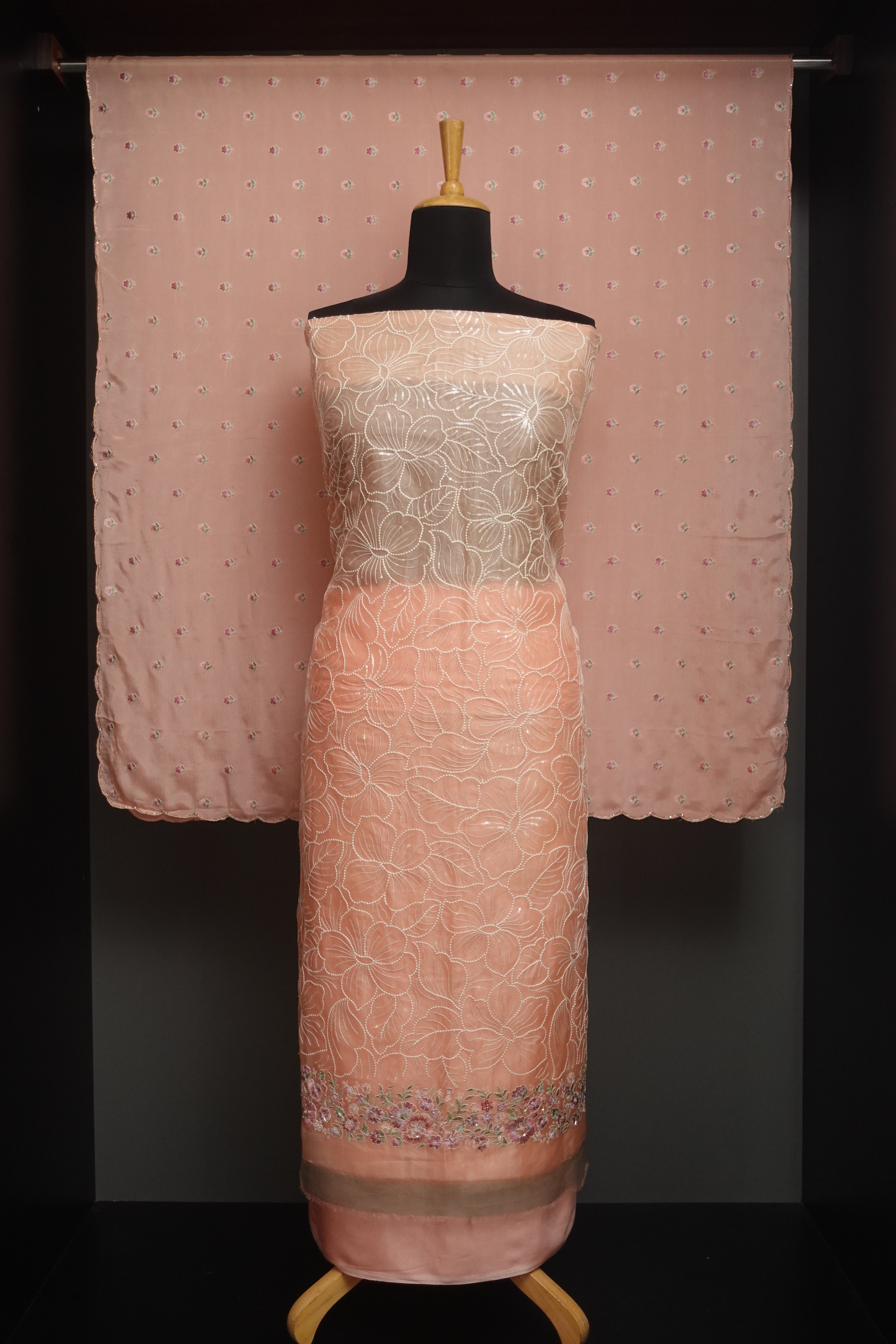 • Floral Embroidery Tussar Organza Salwar Set | SBS917
