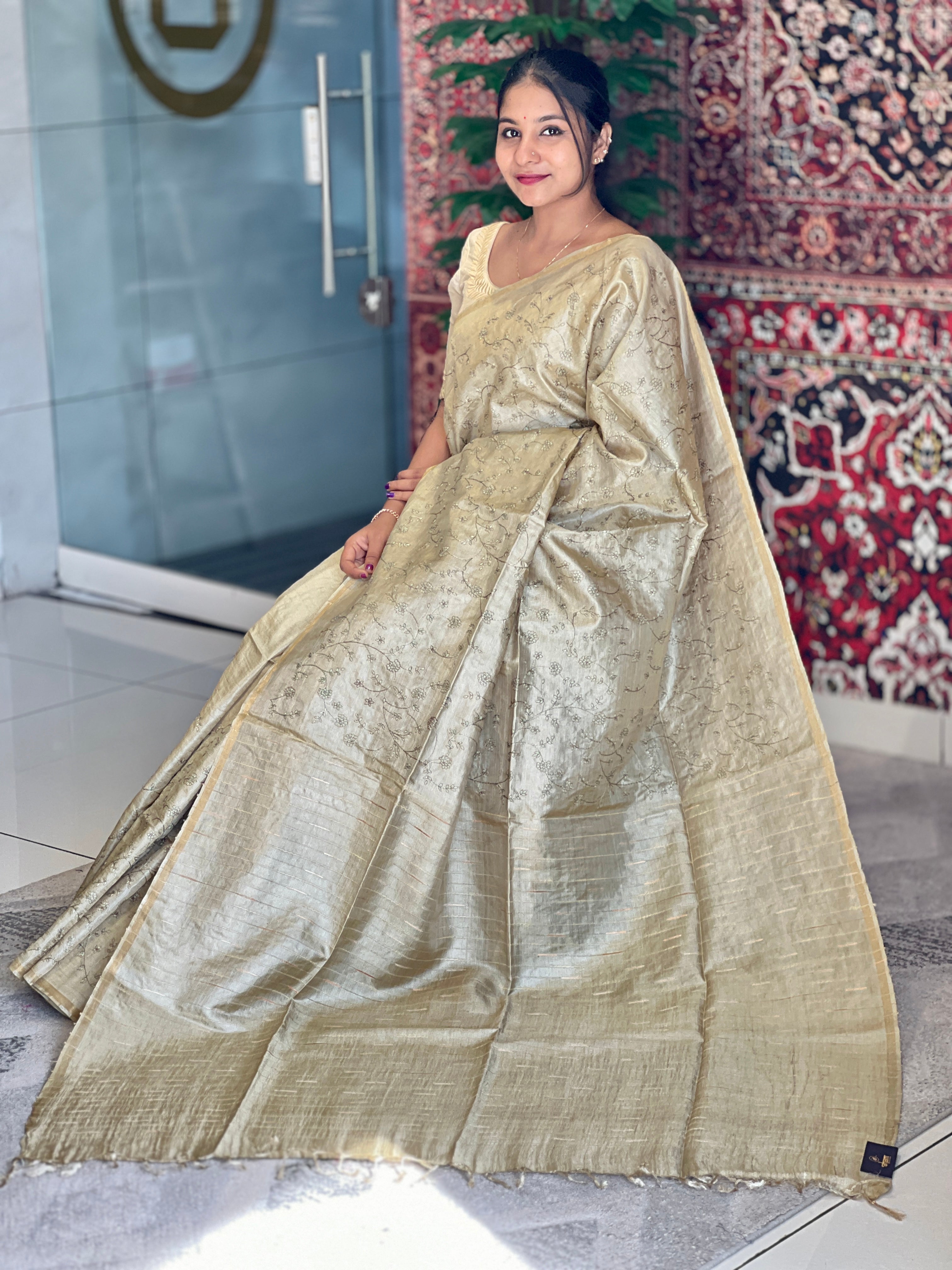 Floral Embroidery With Kesiya Weaved Tussar Saree | MNH486 Floral Embroidery With Kesiya Weaved Tussar Saree | MNH486