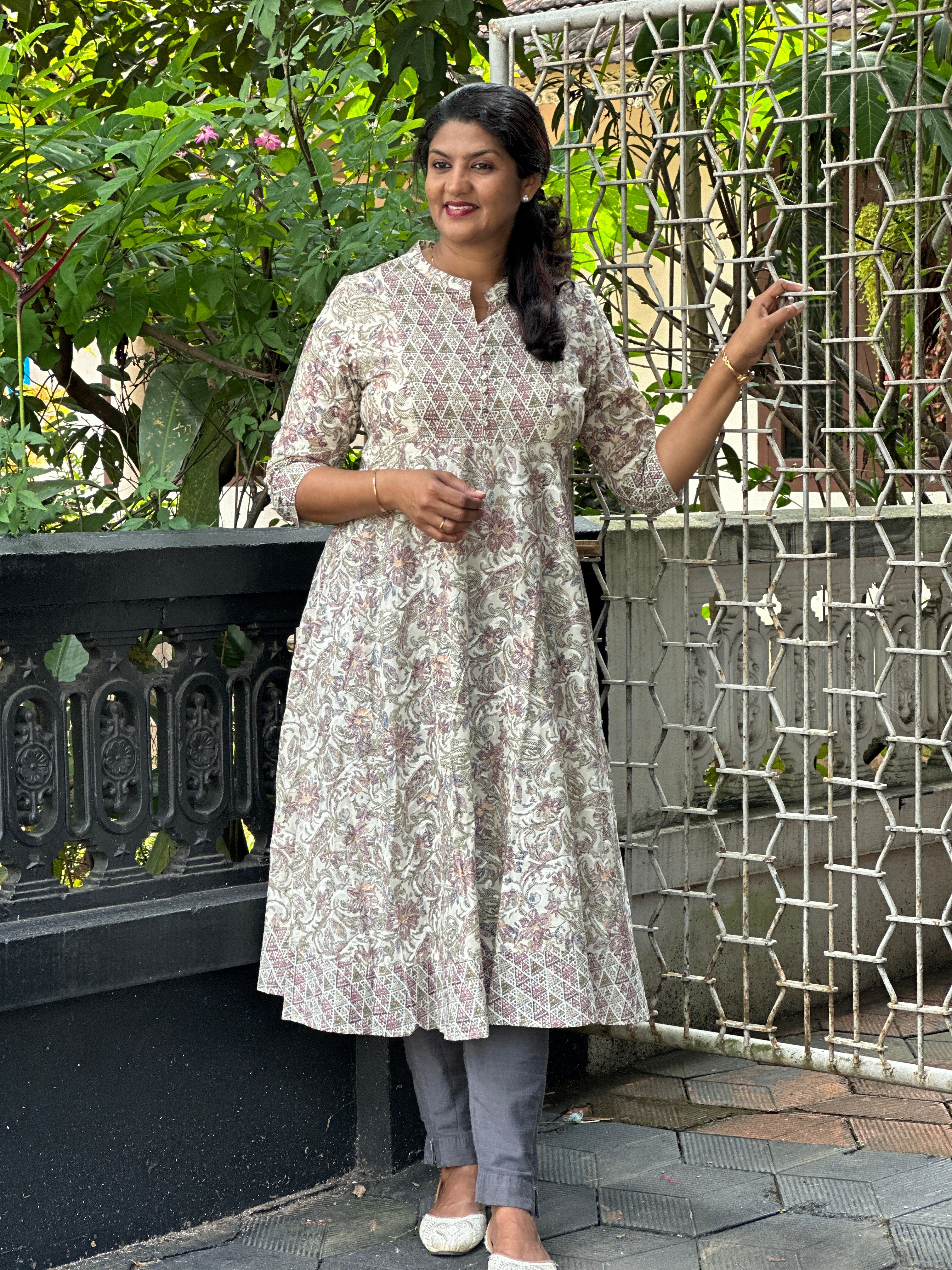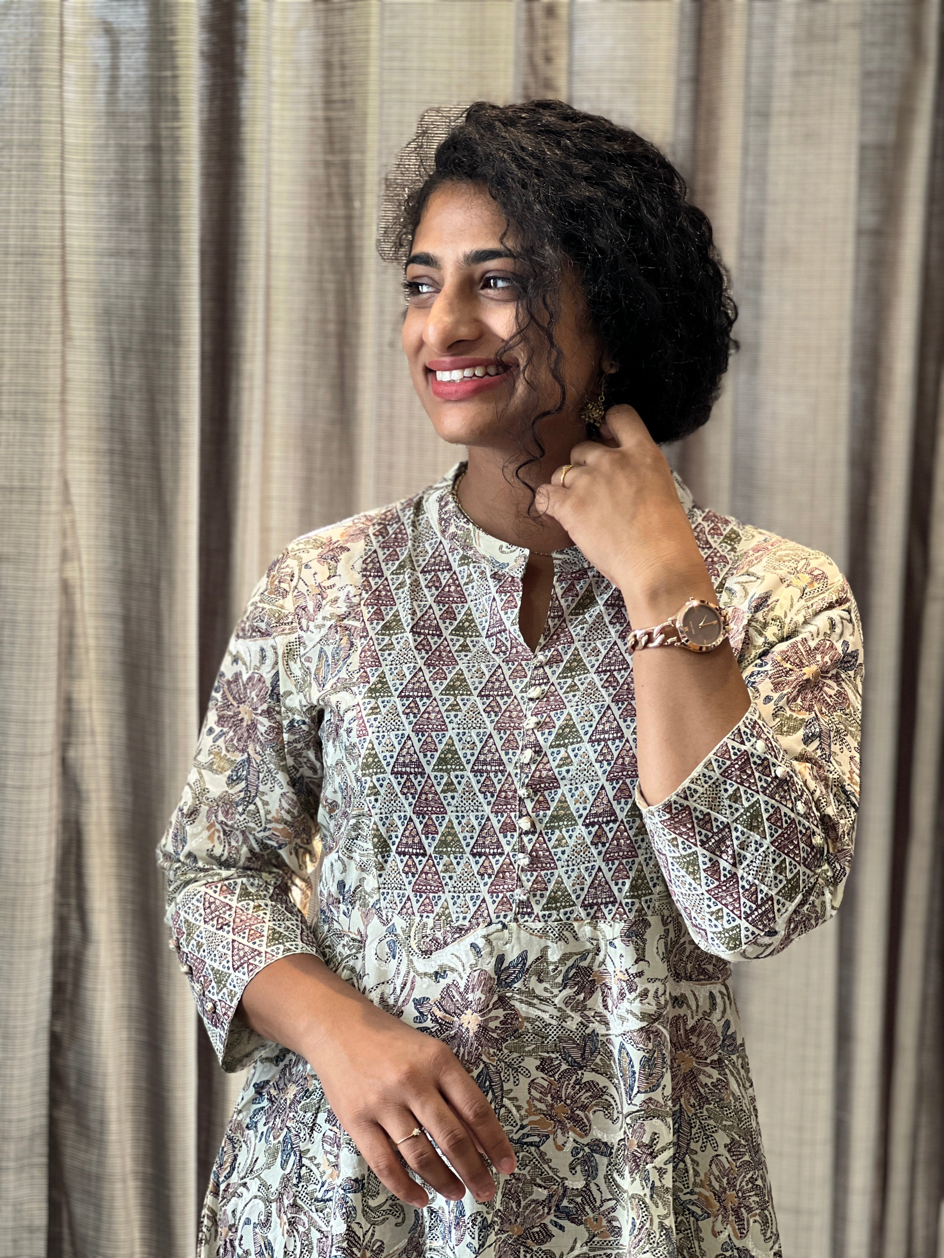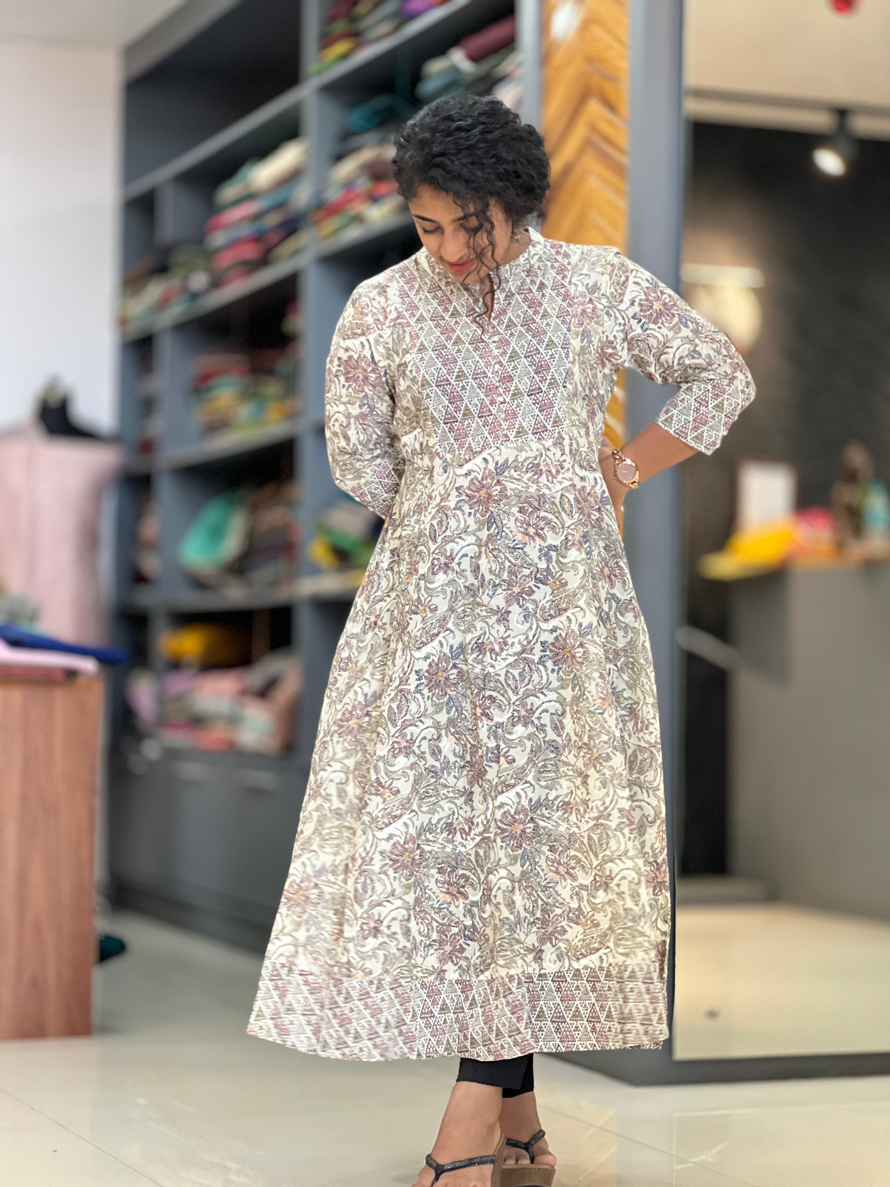 - Style- Floral Foil Print Pattern, Yoke Cutting Pattern