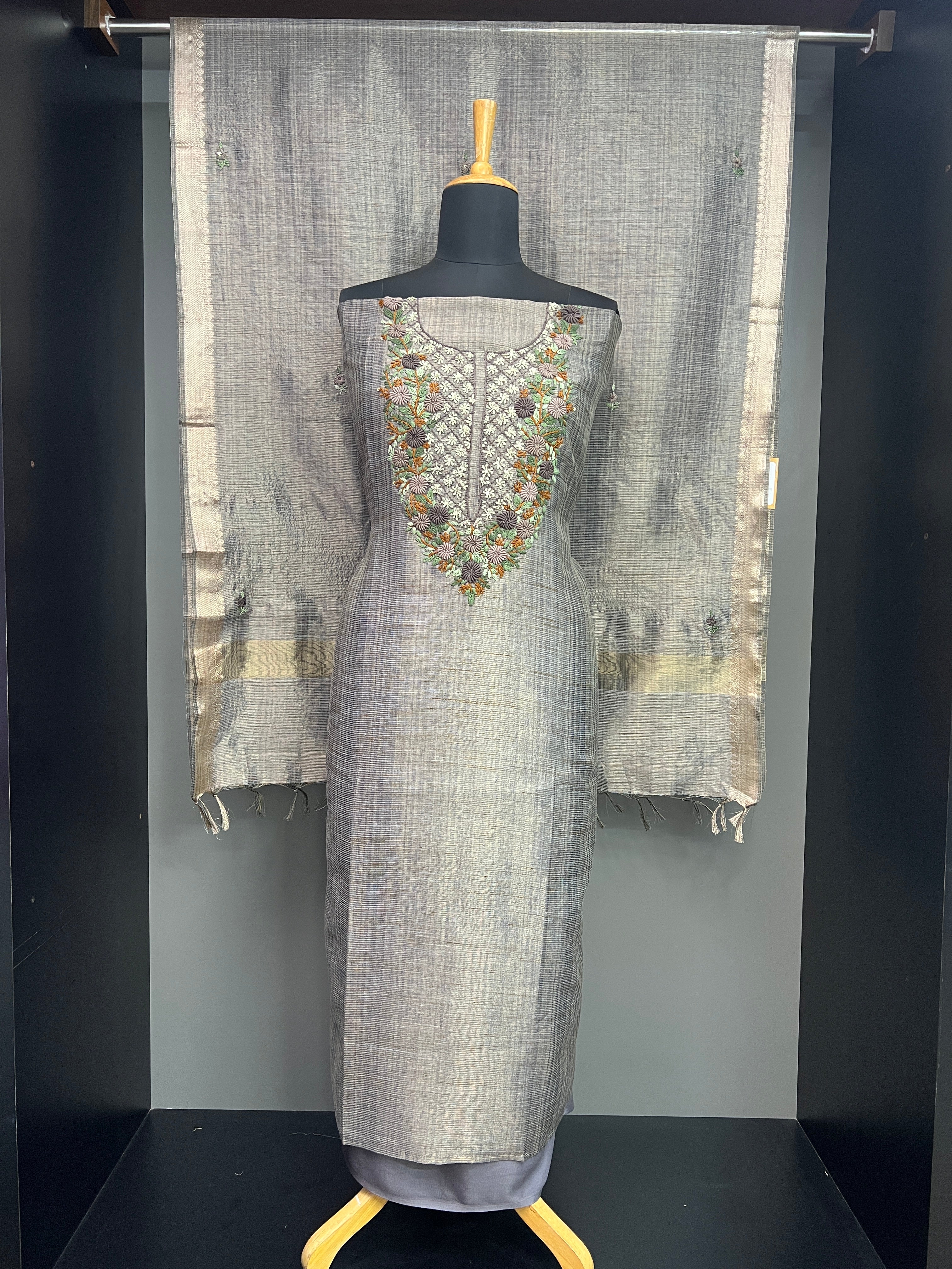 • Style: Scattered Embroidered Buttas, Zari Border Detailing, Tassels Attached