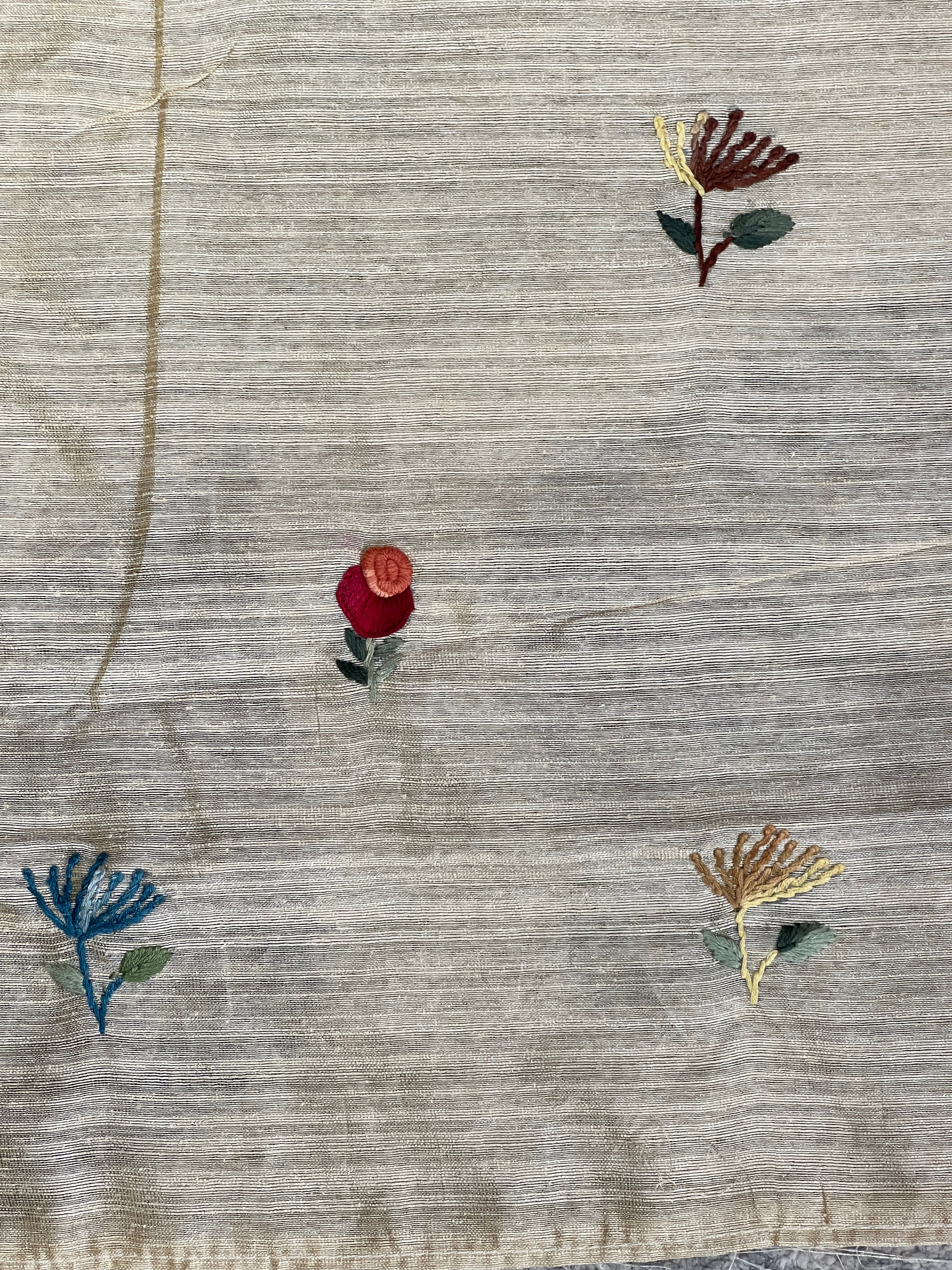 • Style: Hand Embroidery, Scattered Floral Motifs, Pallu Detailing, Border Detailing, Tassels Attached