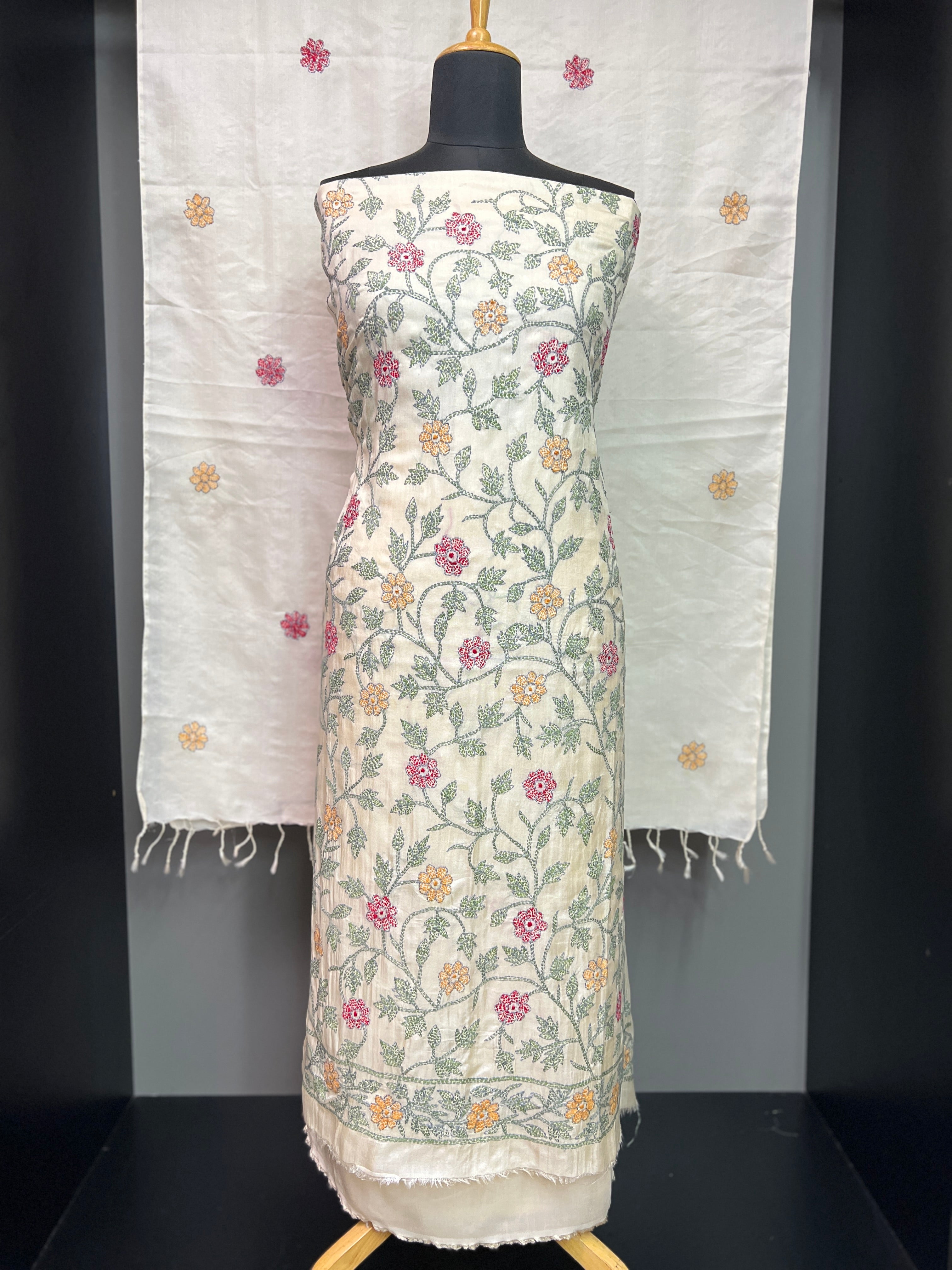 - Style: Floral Hand Embroidered Kantha Work Detailing