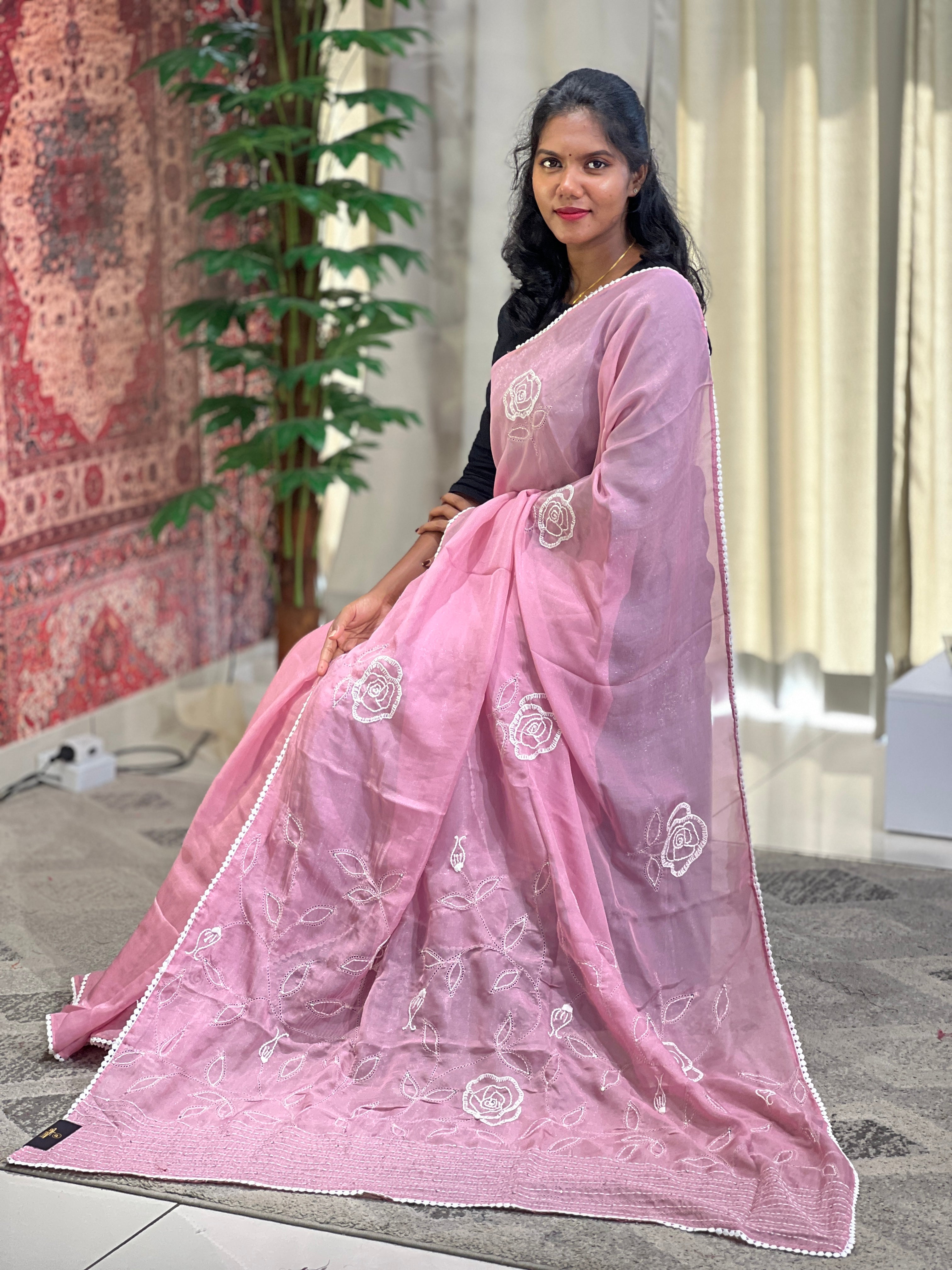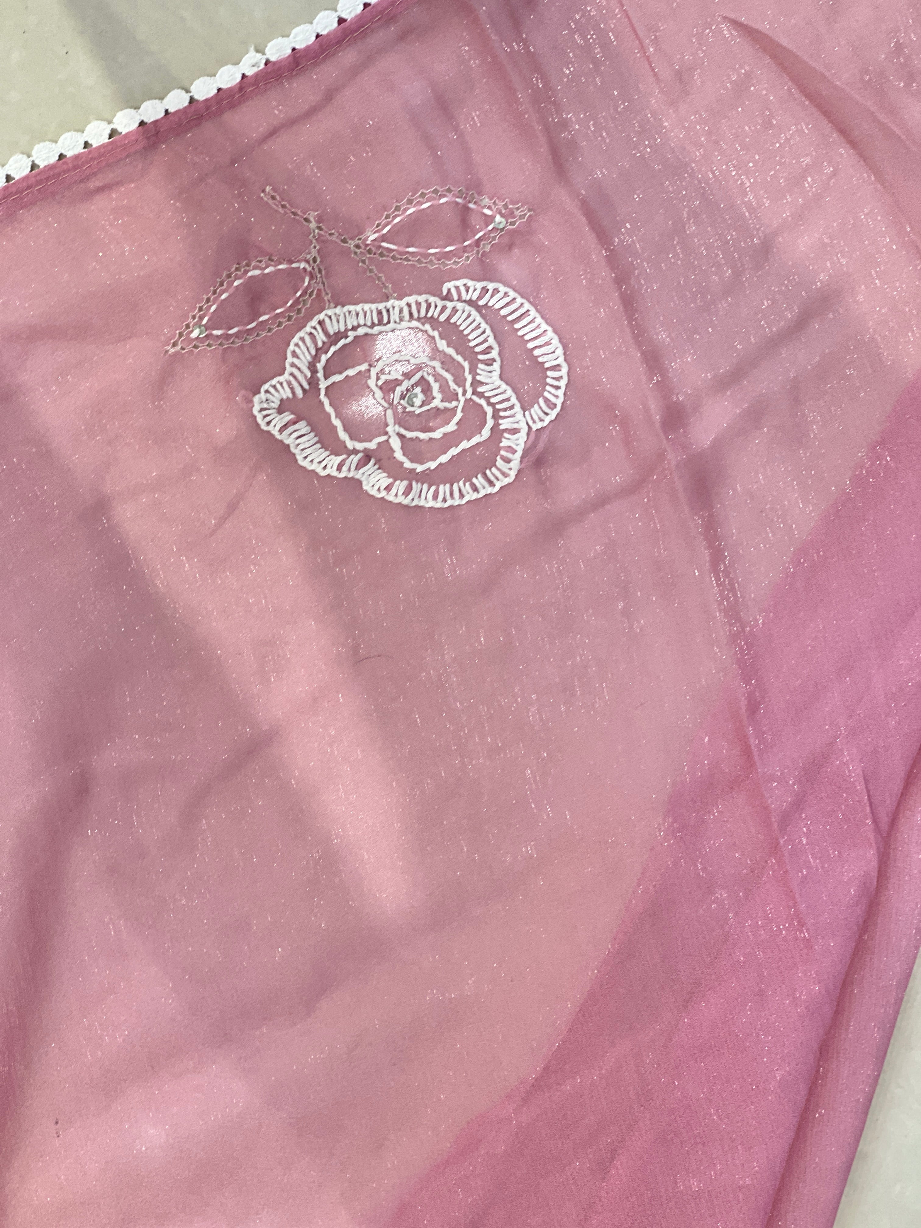 Floral Hand Embroidered Shimmer Georgette Saree | BLD1259
