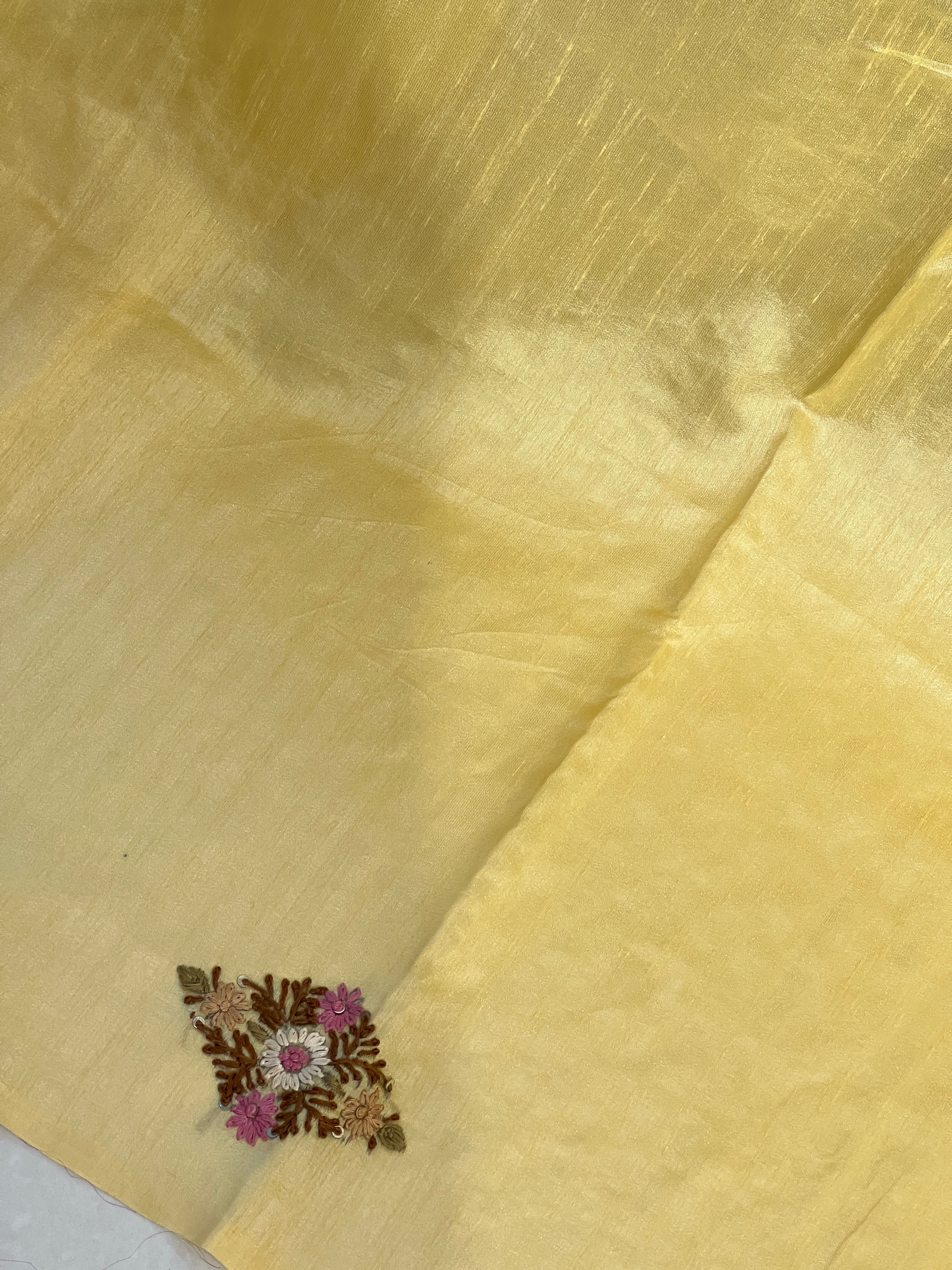 • Floral Hand Embroidery Detailed Semi Tussar Saree | BLD1778