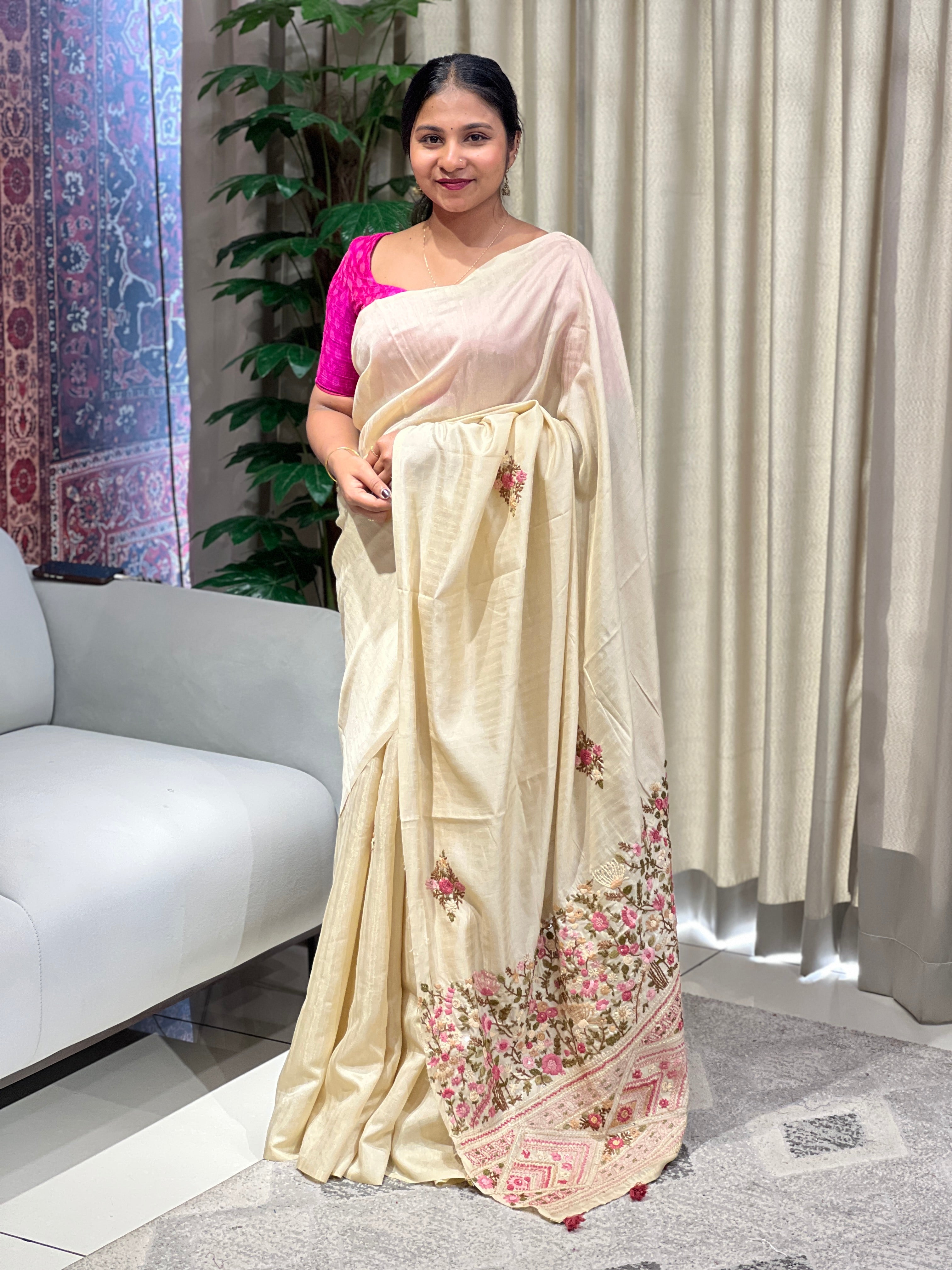 - Style: Hand Embroidery,Scattered Motifs, Floral Pallu Detailing, Tassels Attached