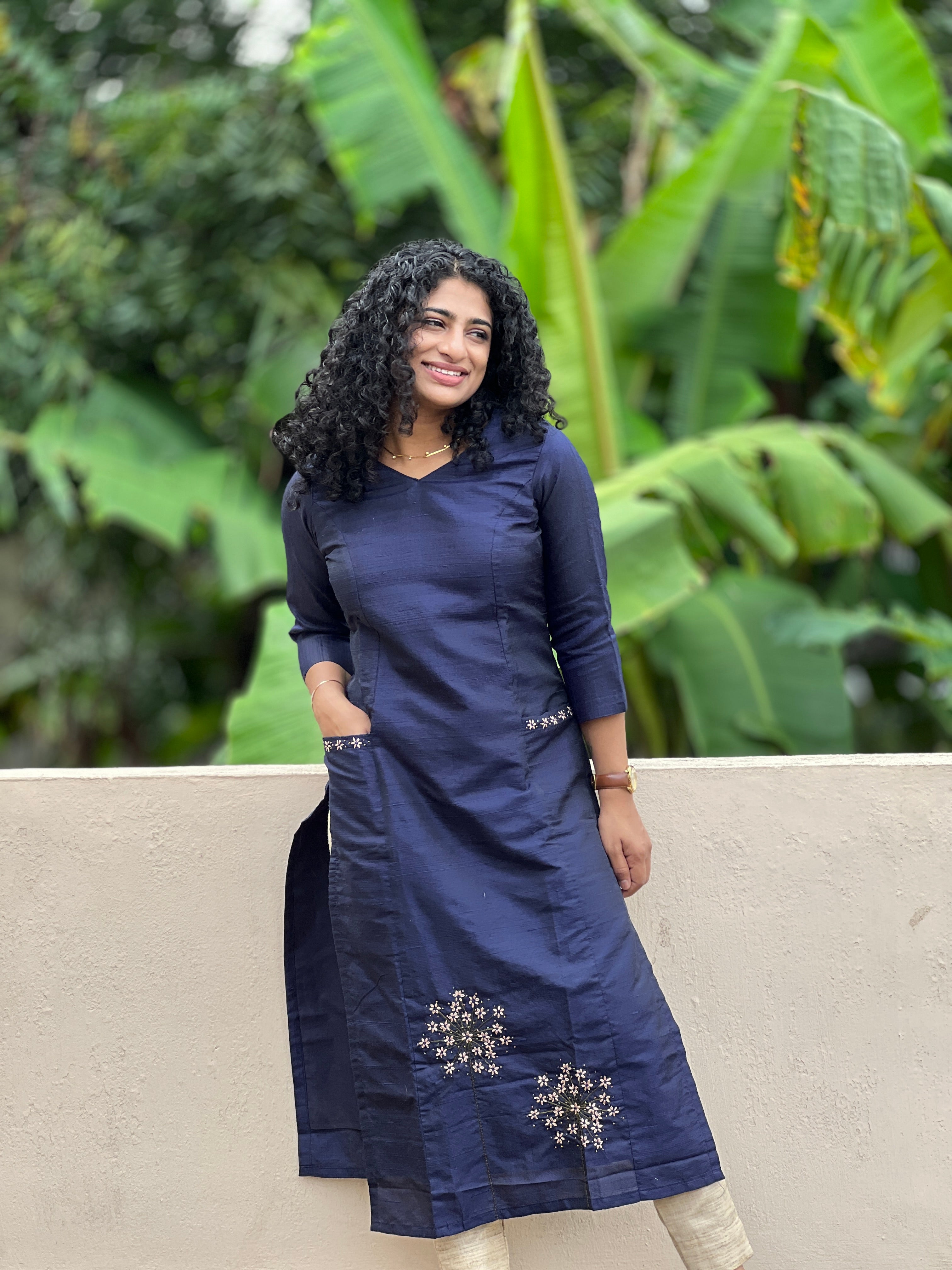 - Style- Floral Hand Embroidery Design, Princess Cut Pattern ,Two Side Pocket