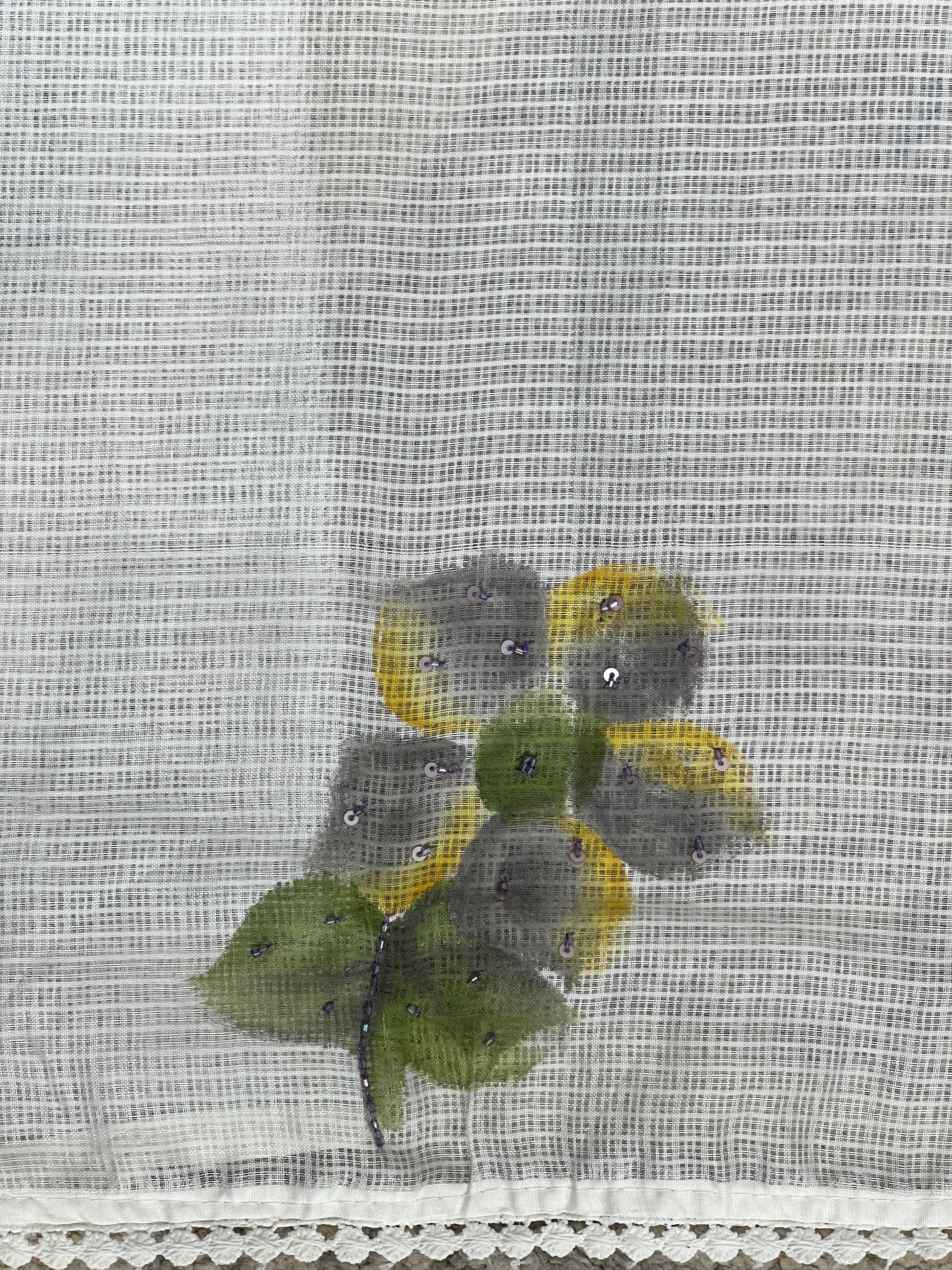 - Style: Hand Painted Floral Pattern With Cut Beads & Sequins Highlight, Lace Edges