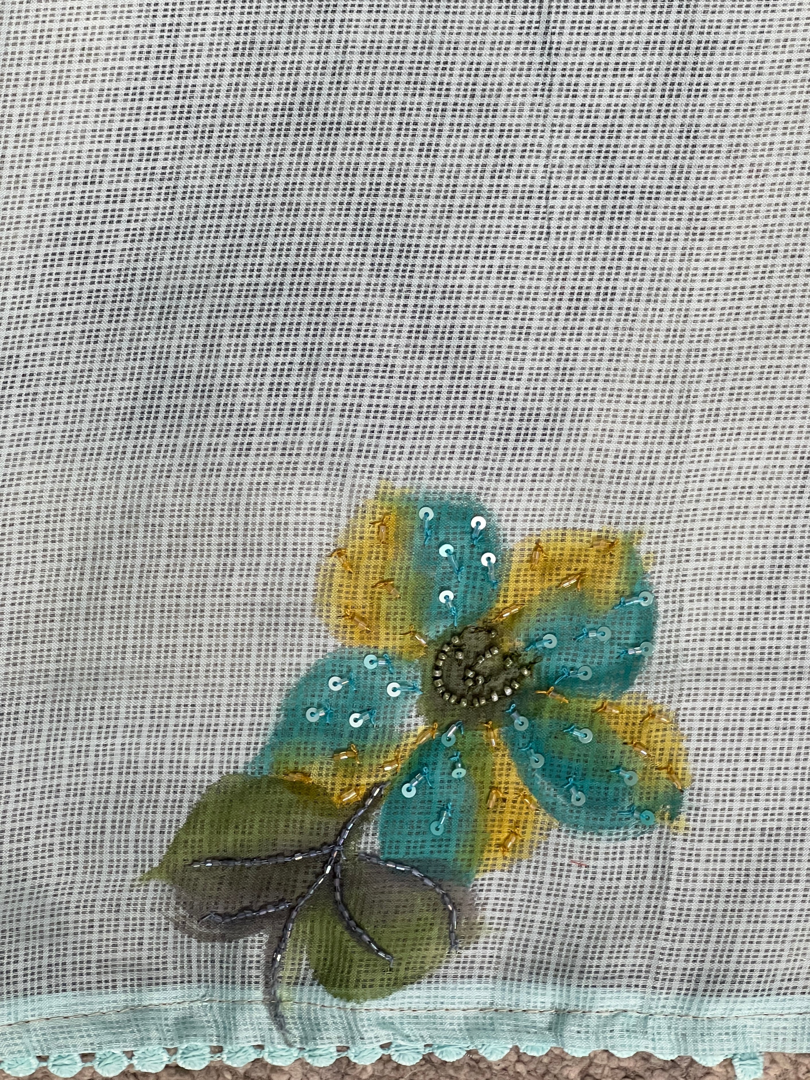 Floral Hand Paint With Beads Highlighted Silky Kota Saree | BLD1934 Floral Hand Paint With Beads Highlighted Silky Kota Saree | BLD1934