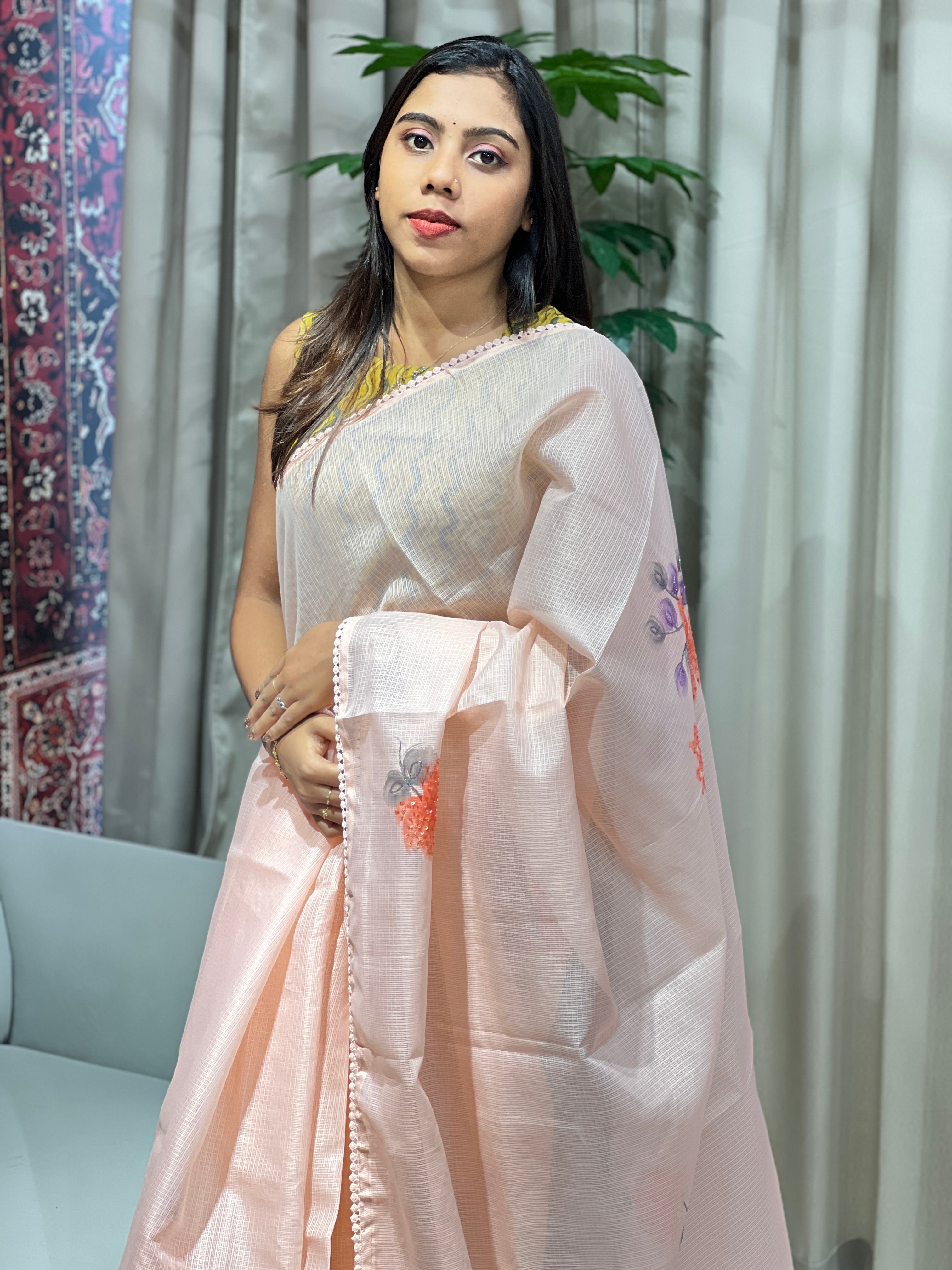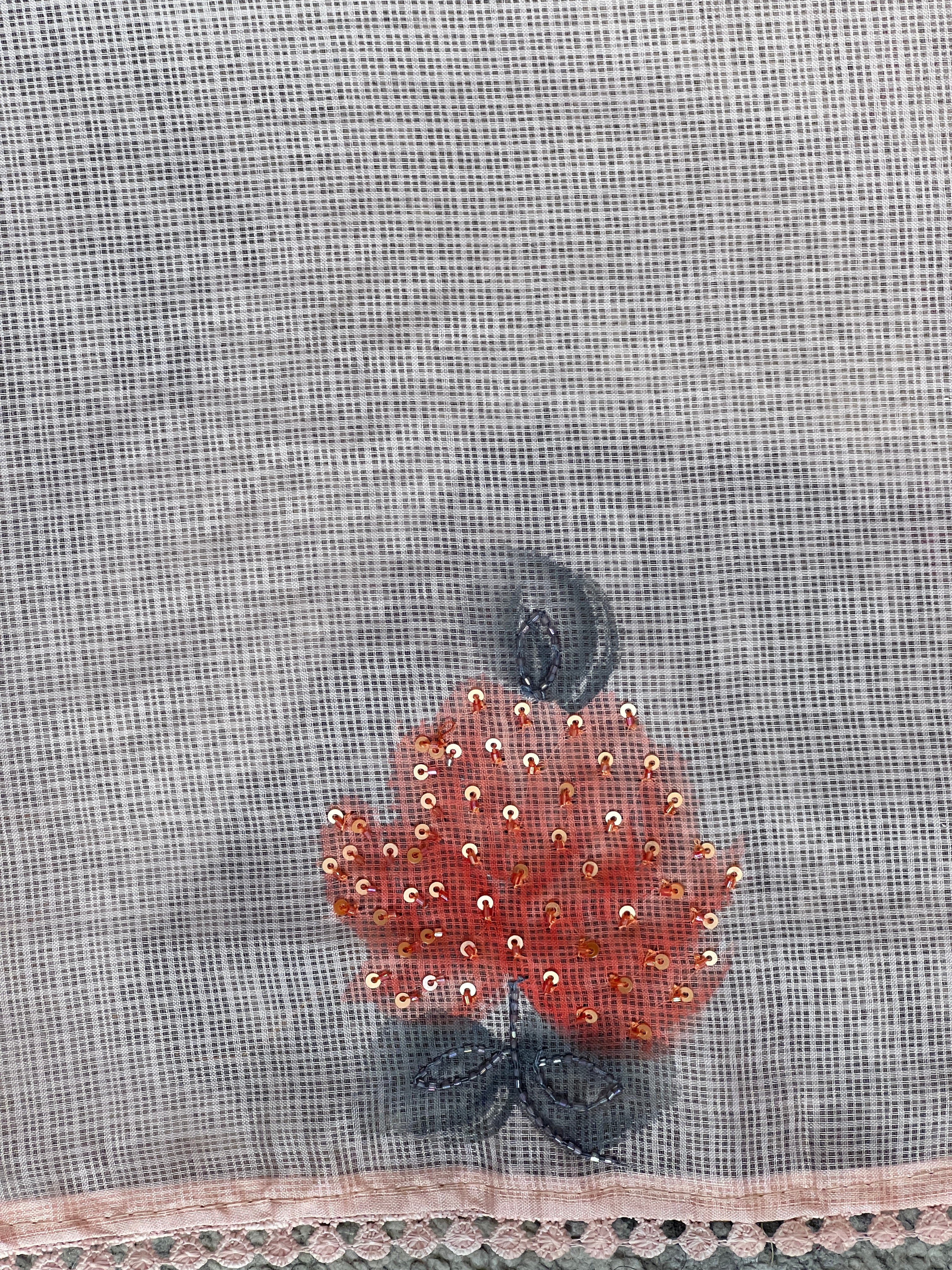 - Style: Hand Painted Floral Placement Pattern With Cut Beads & Sequins Highlight, Lace Edges