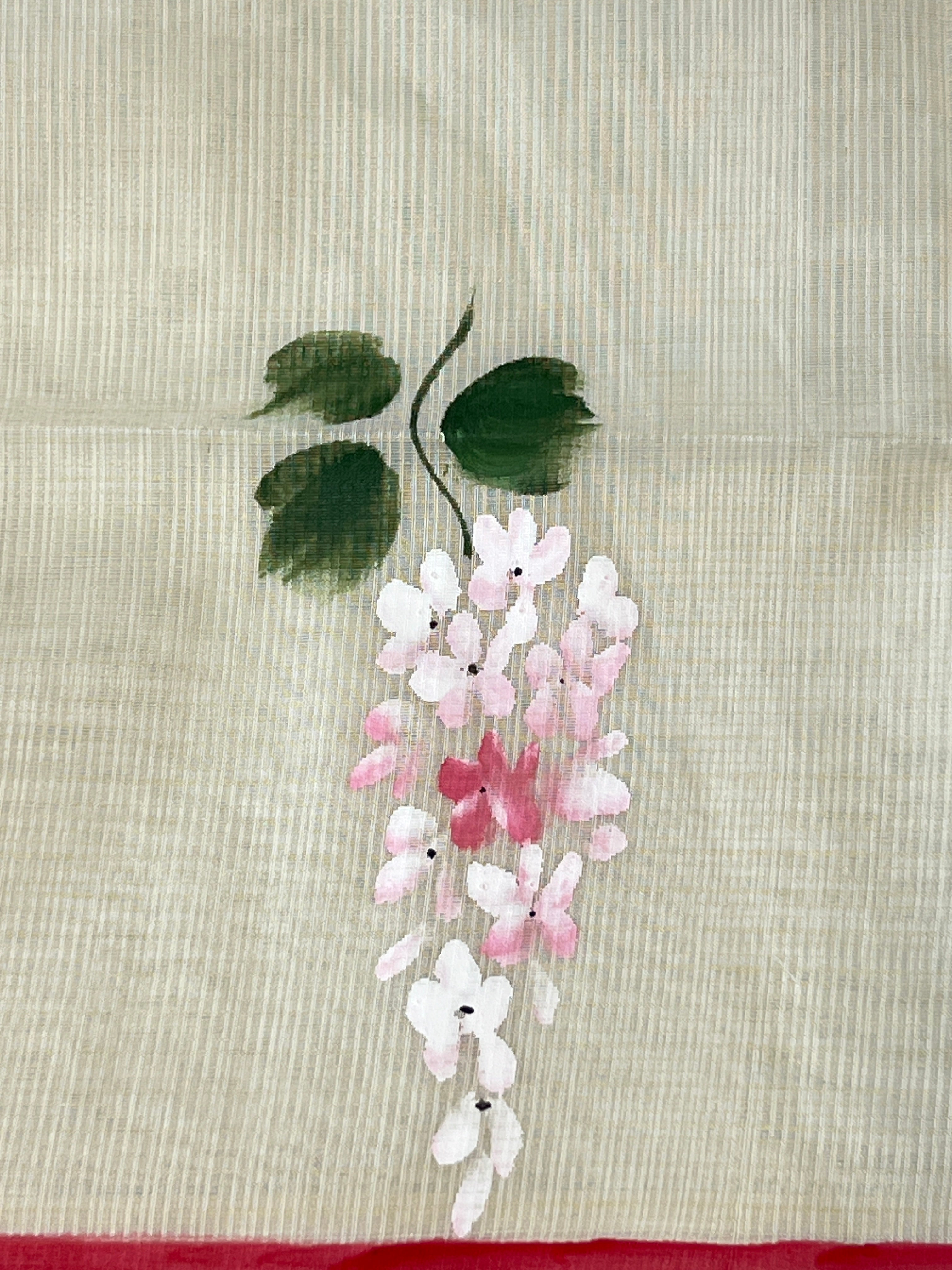 Floral Hand Painted Muga Check Organza Saree | JSC545