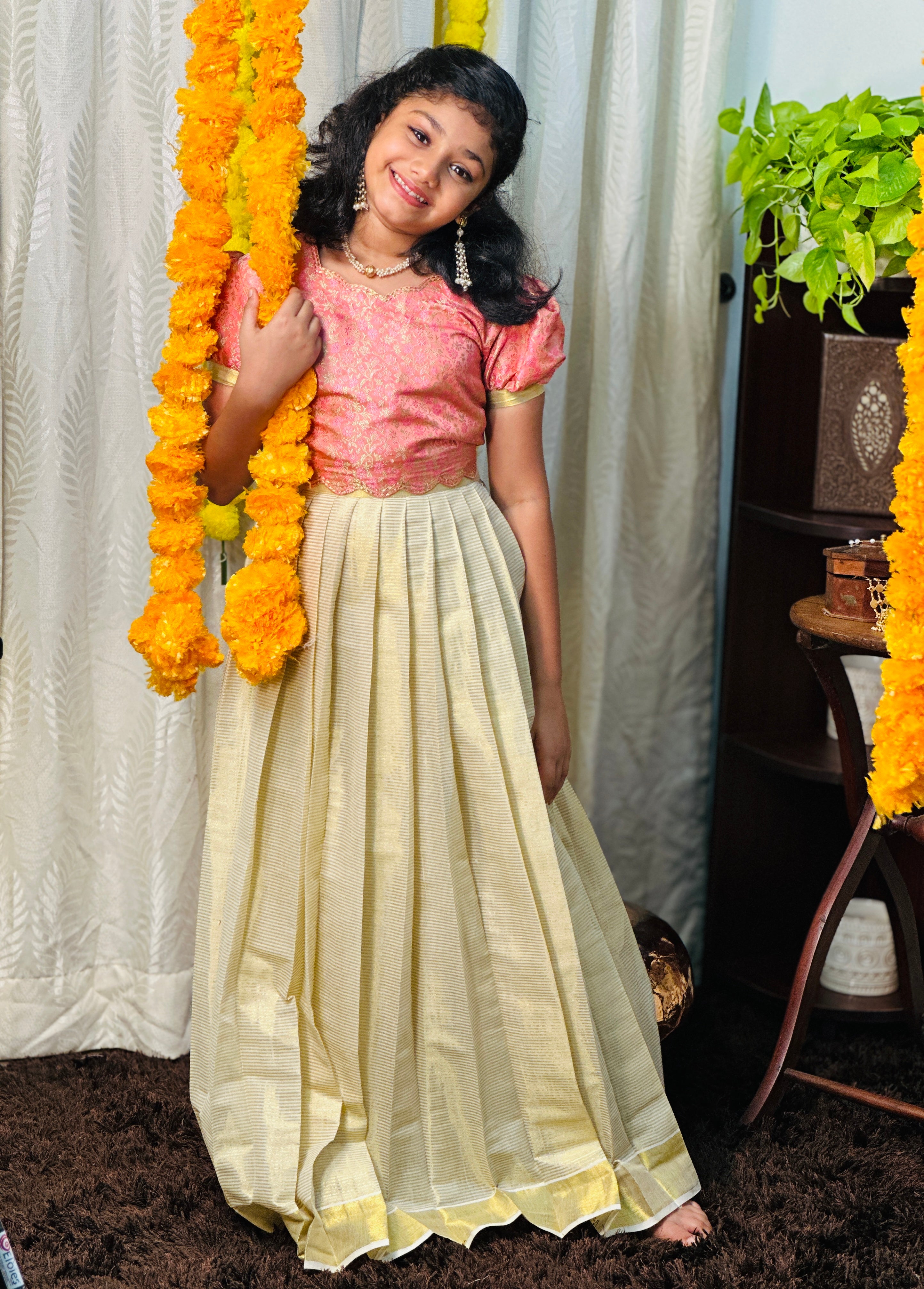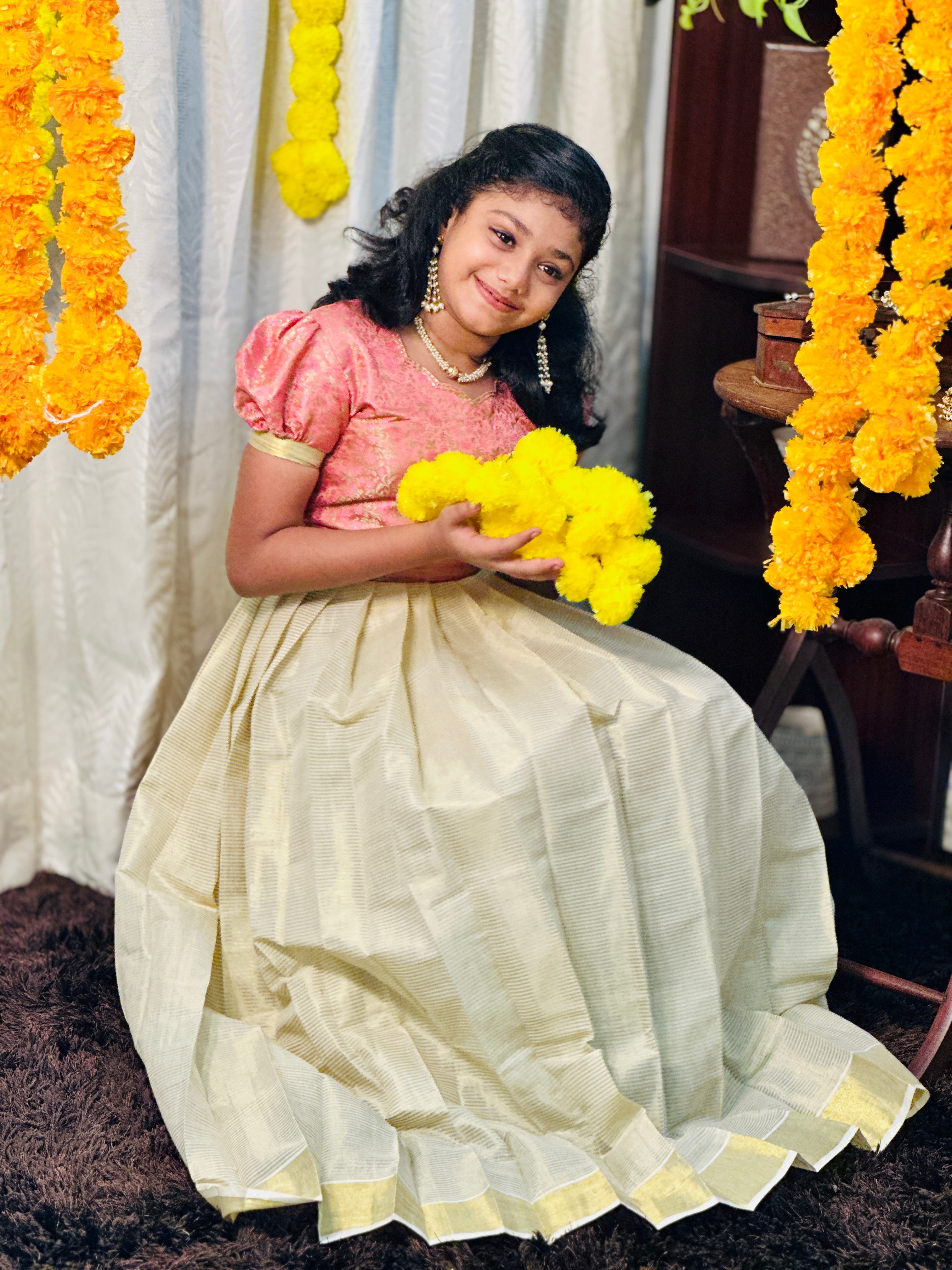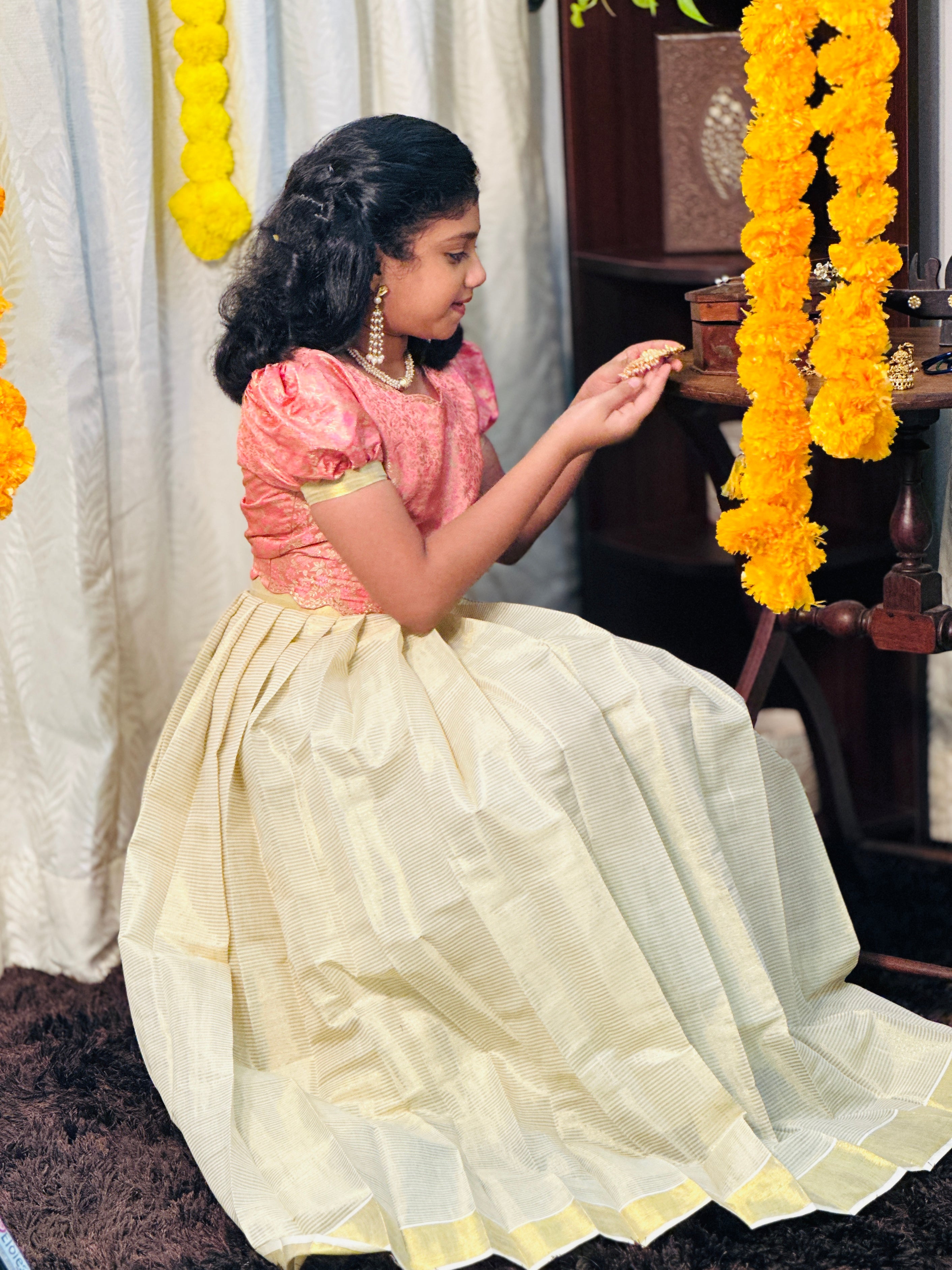 Style: Pleated, Kasavu Borders, Stripe Pattern