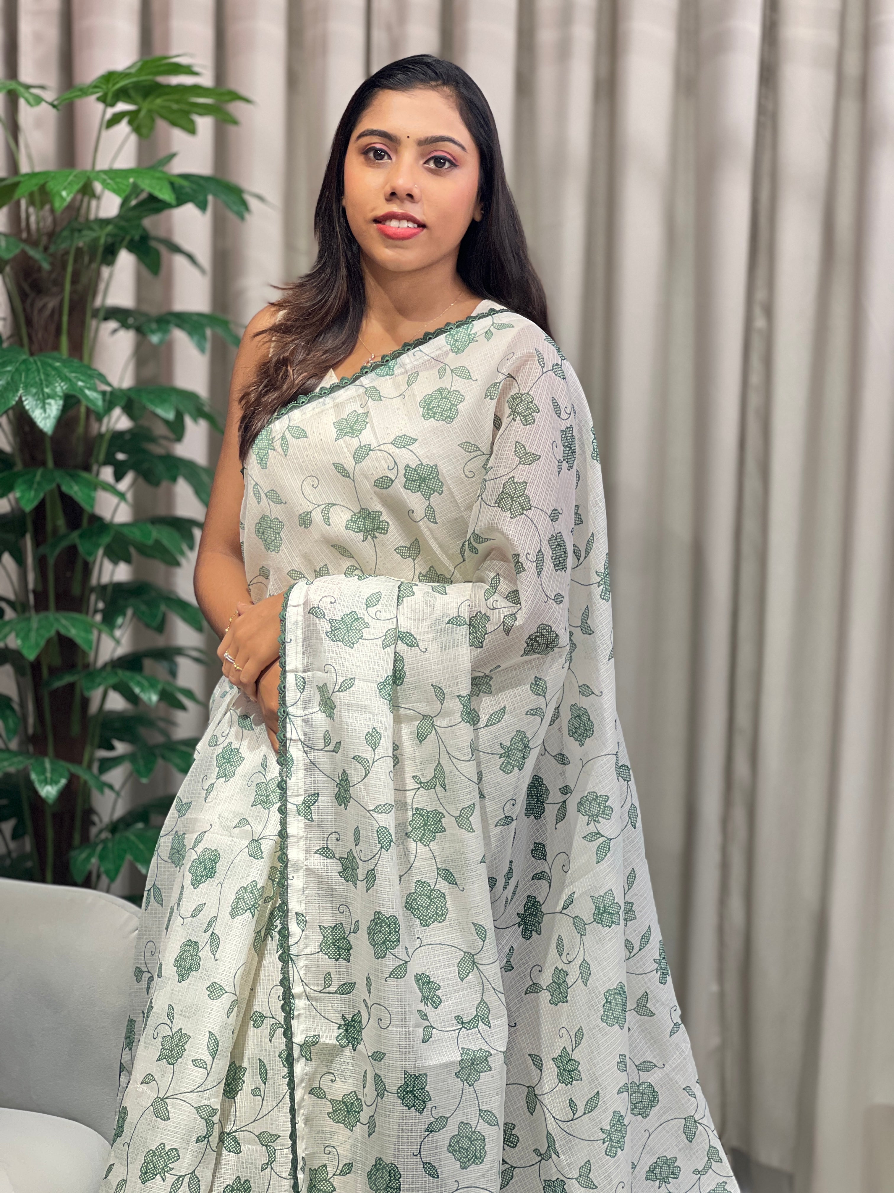 Floral Jaal Embroidery Detailed Kota Saree | HT310