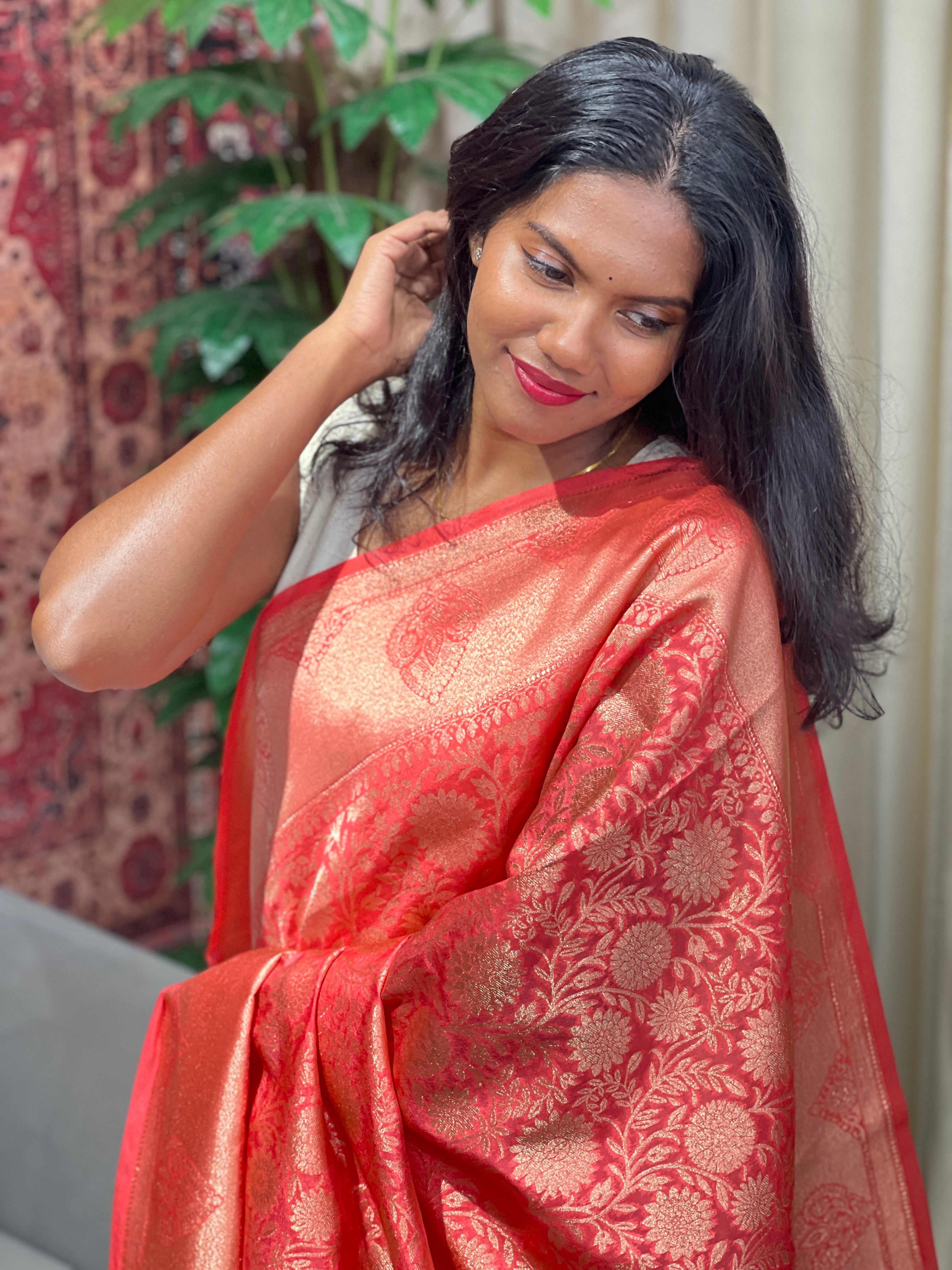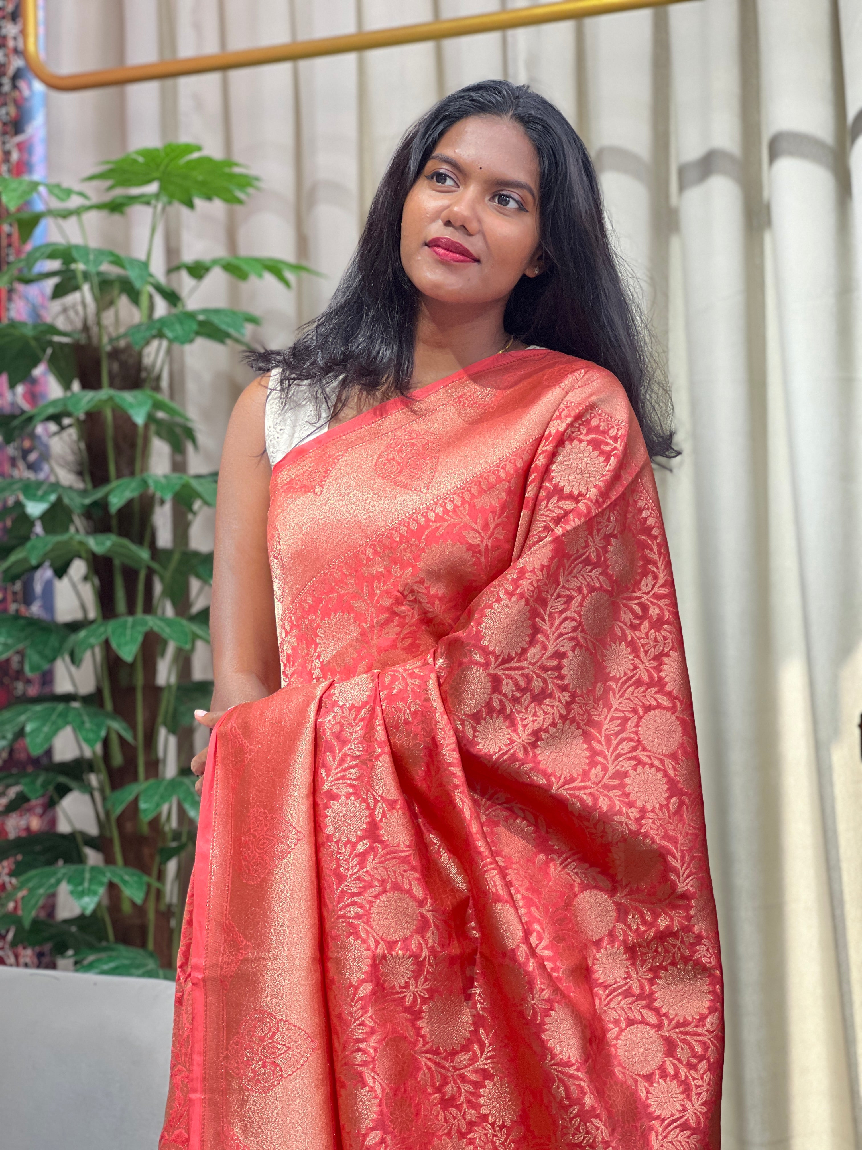 Floral Jaal Patterned Semi Banarasi Saree | NN472 Floral Jaal Patterned Semi Banarasi Saree | NN472