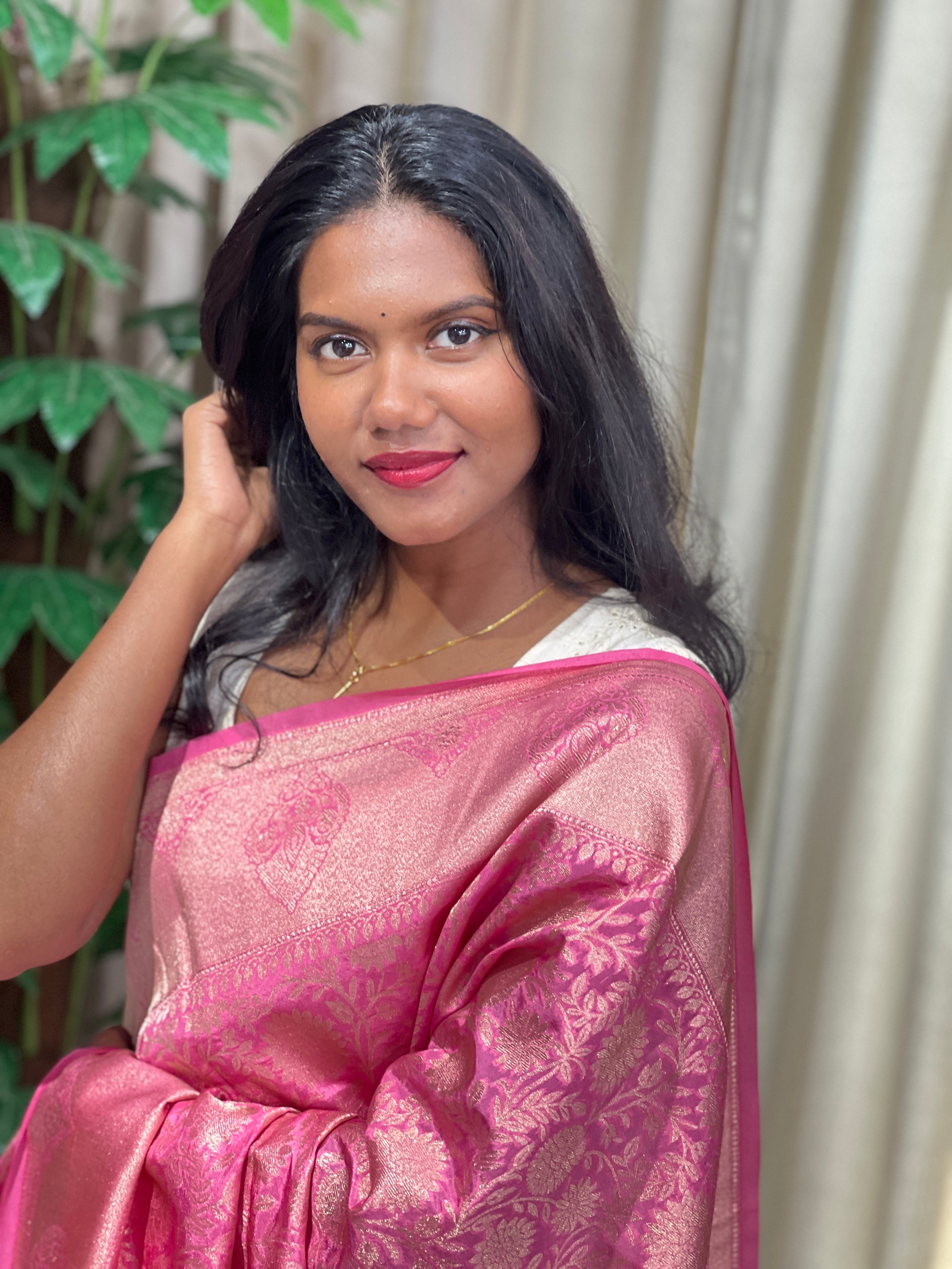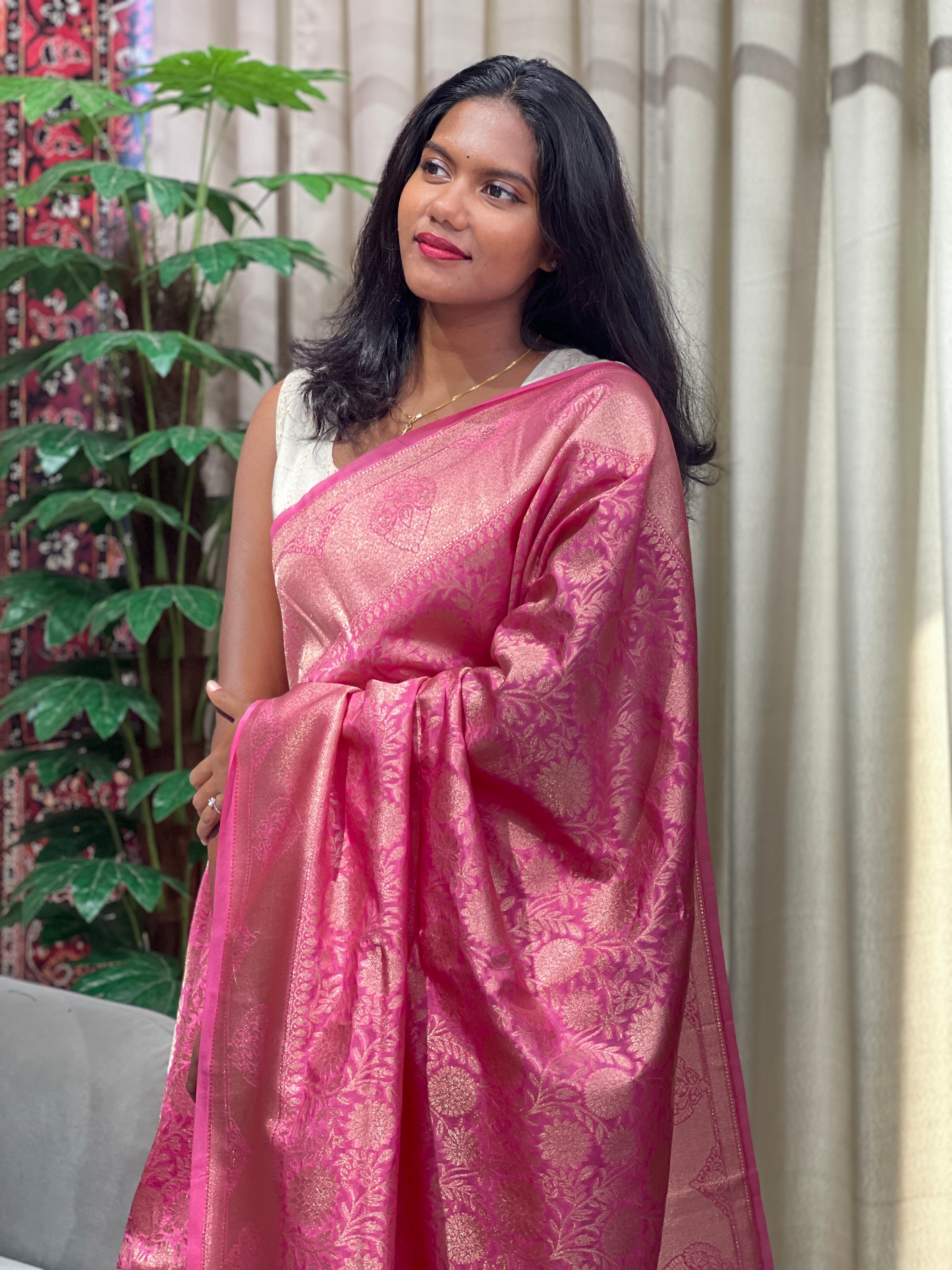 Floral Jaal Patterned Semi Banarasi Saree | NN473 Floral Jaal Patterned Semi Banarasi Saree | NN473