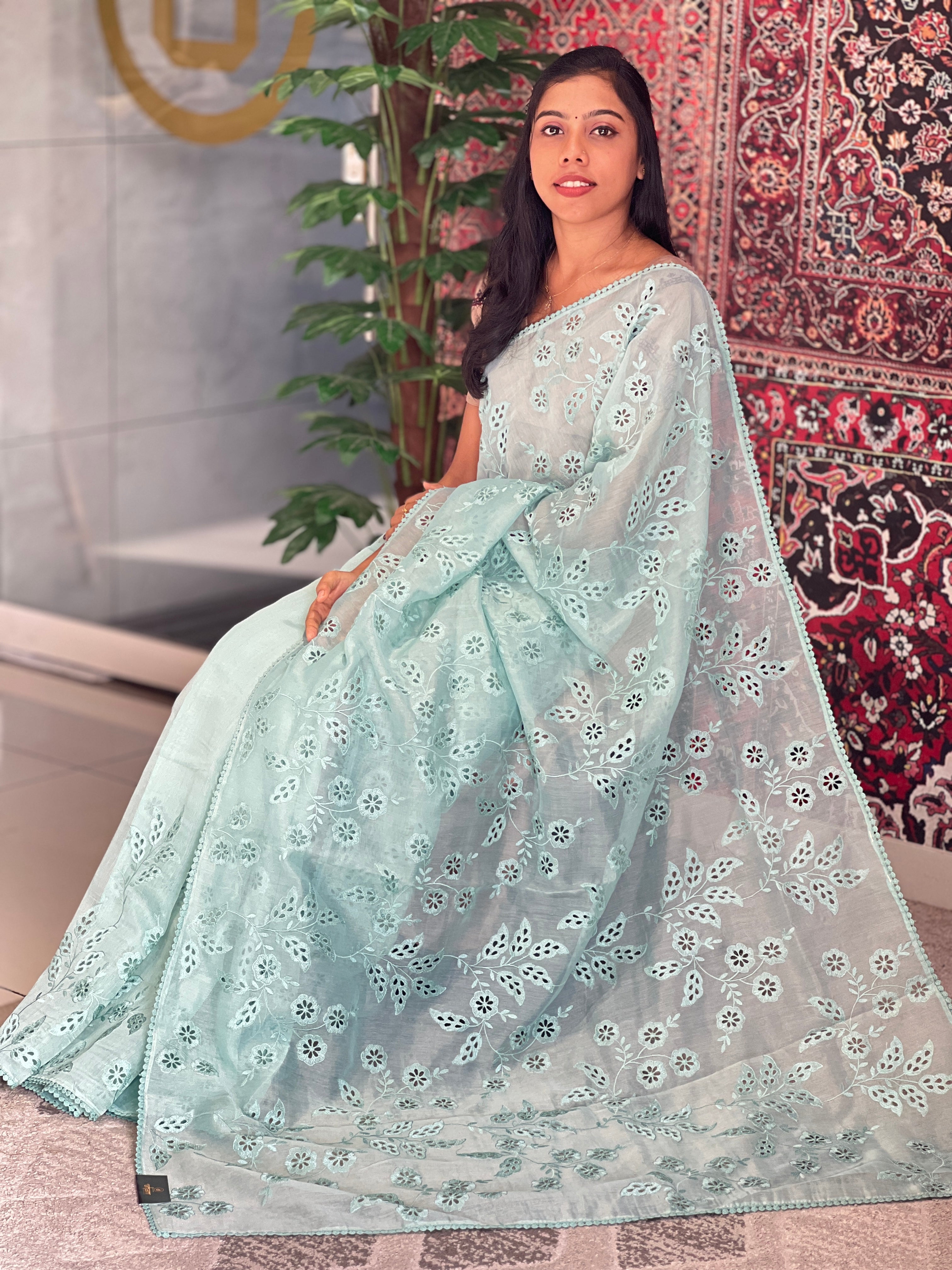 - Style: Floral & Leaf Machine Embroidery Pattern , Cutwork Detailing , Lace Finish