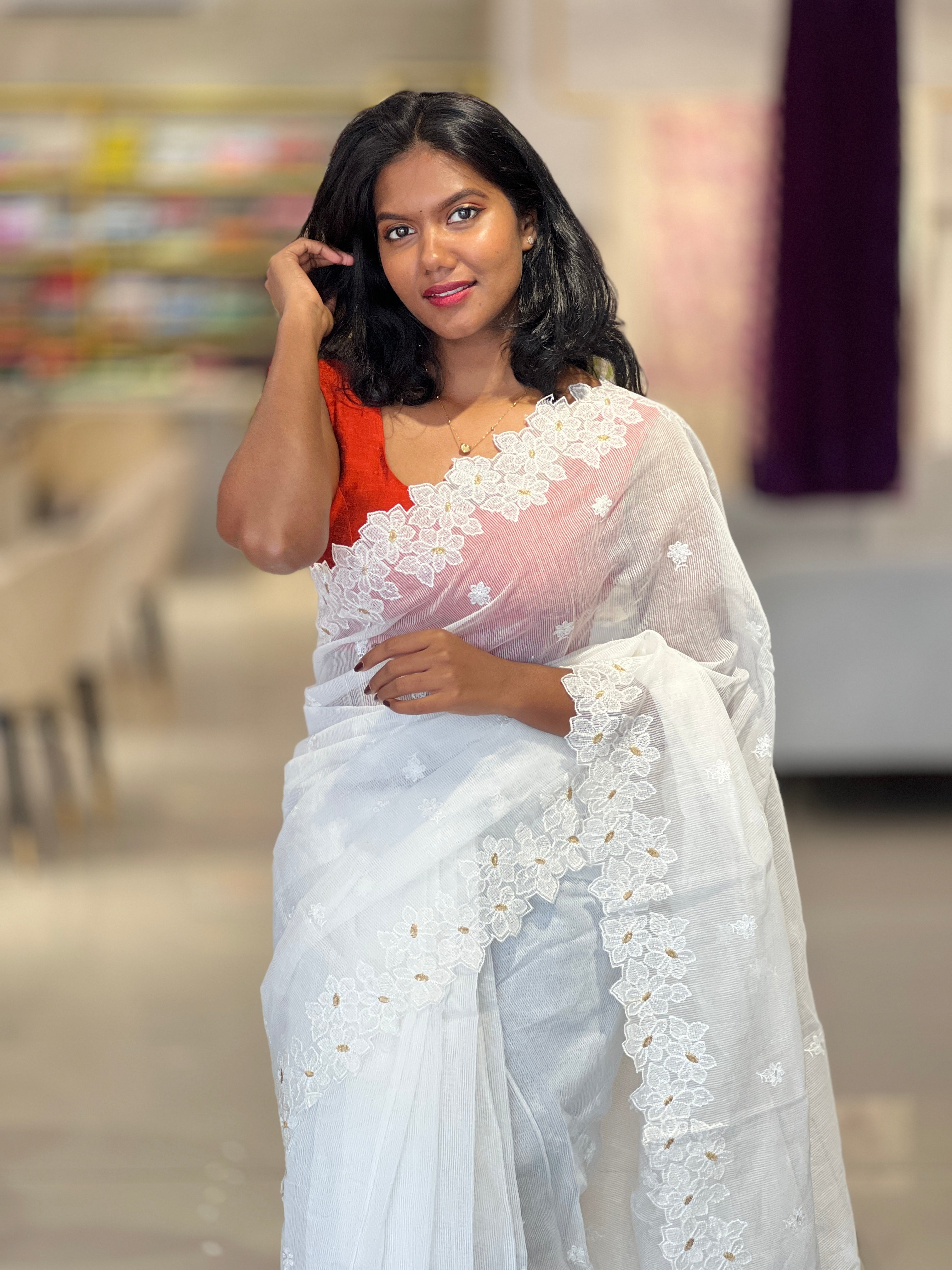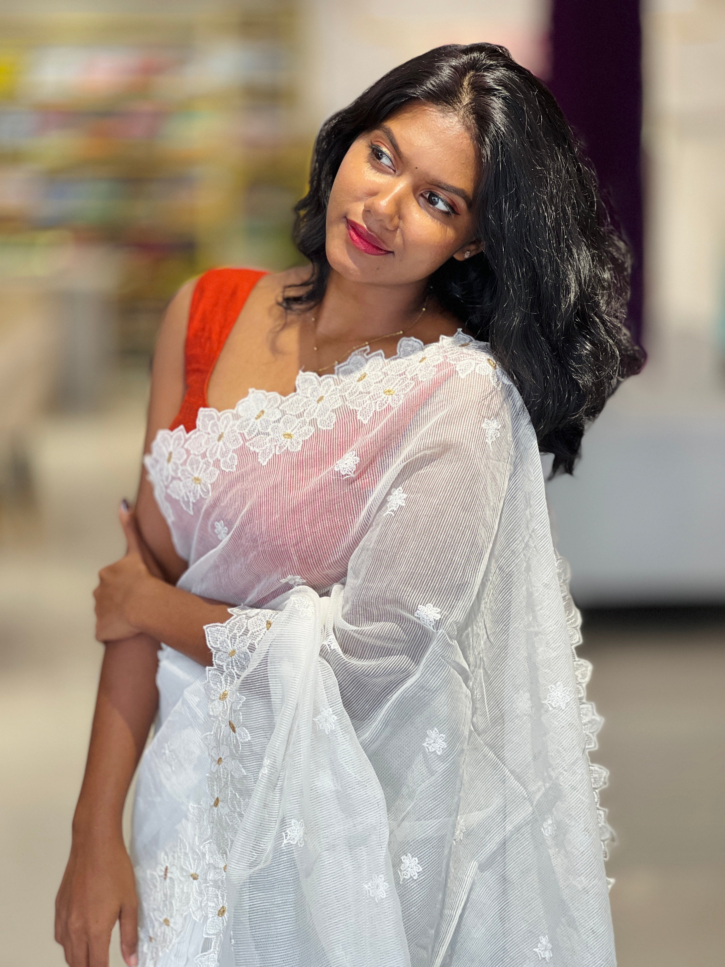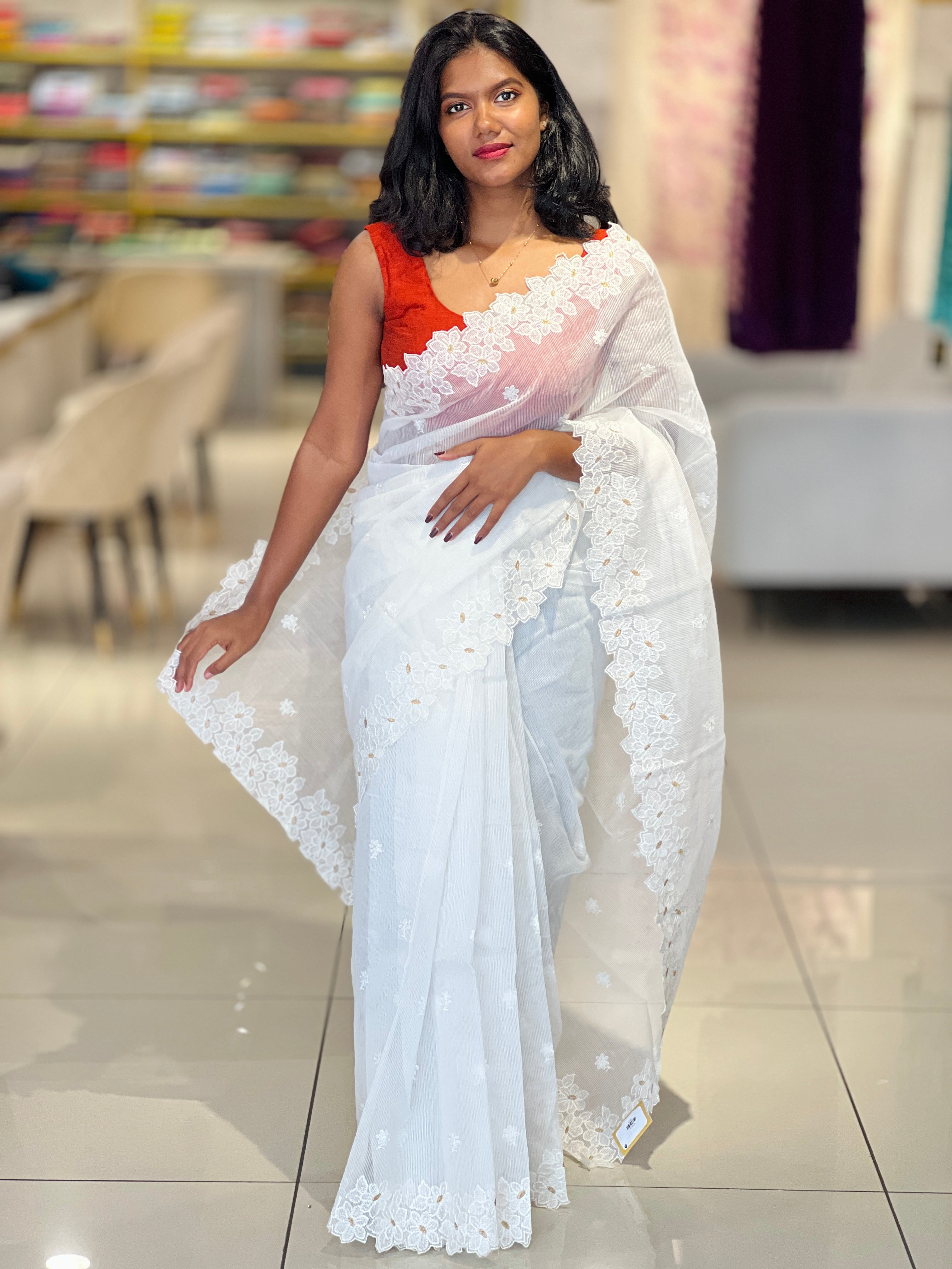 - Style: Floral Lucknowi Inspired Embroidery Detailing With Zari Highlight, Scattered Buttas, Uneven Scallop,