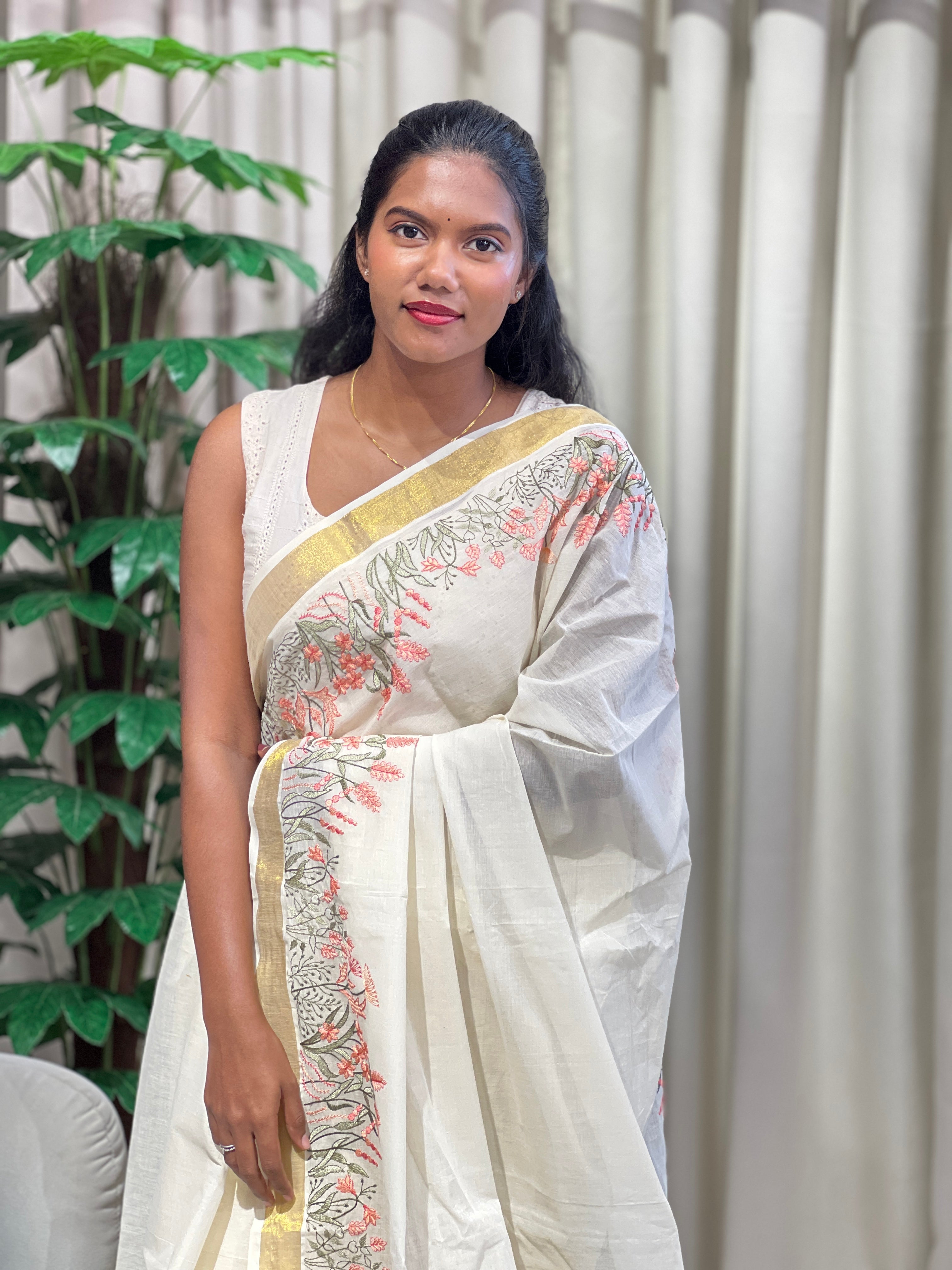 - Style: Machine Embroidery, Floral Pattern, Zari Woven Borders