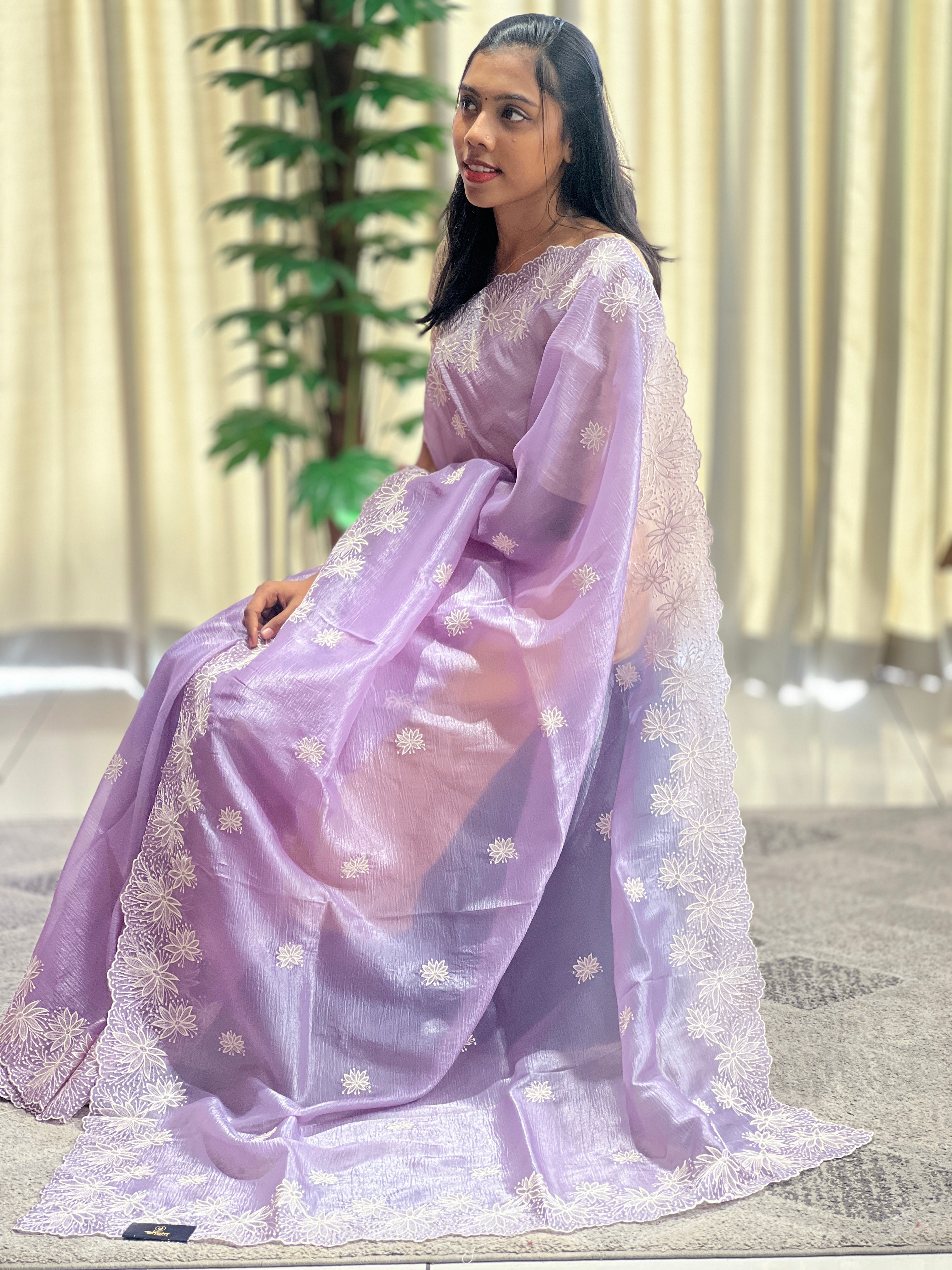Floral Machine Embroidered Crushed Organza Saree | BLD1103 Floral Machine Embroidered Crushed Organza Saree | BLD1103