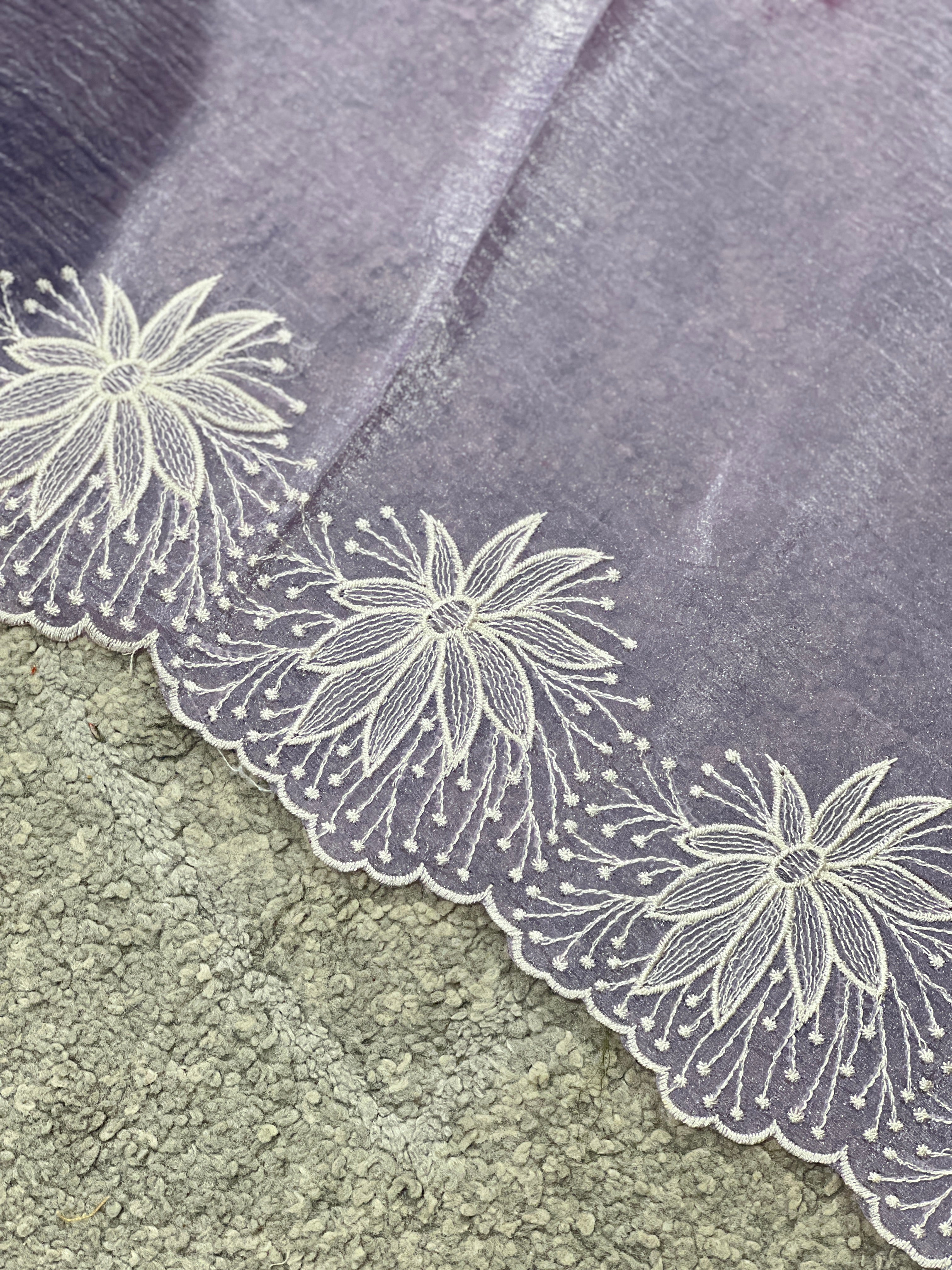 Floral Machine Embroidered Crushed Organza Saree | BLD1103
