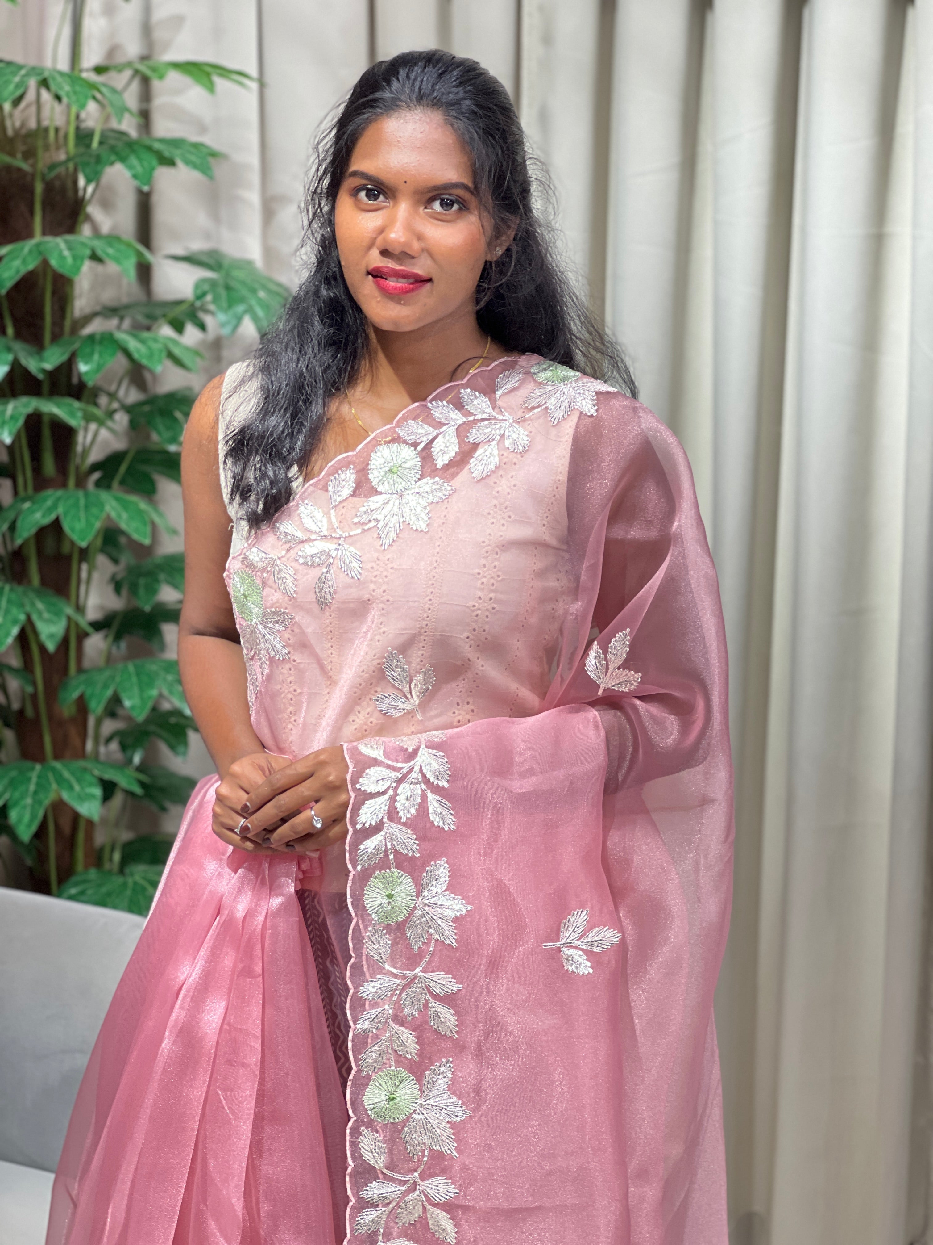 - Style: Floral Machine Embroidery Detailing, Scallop Edges, Scattered Butta