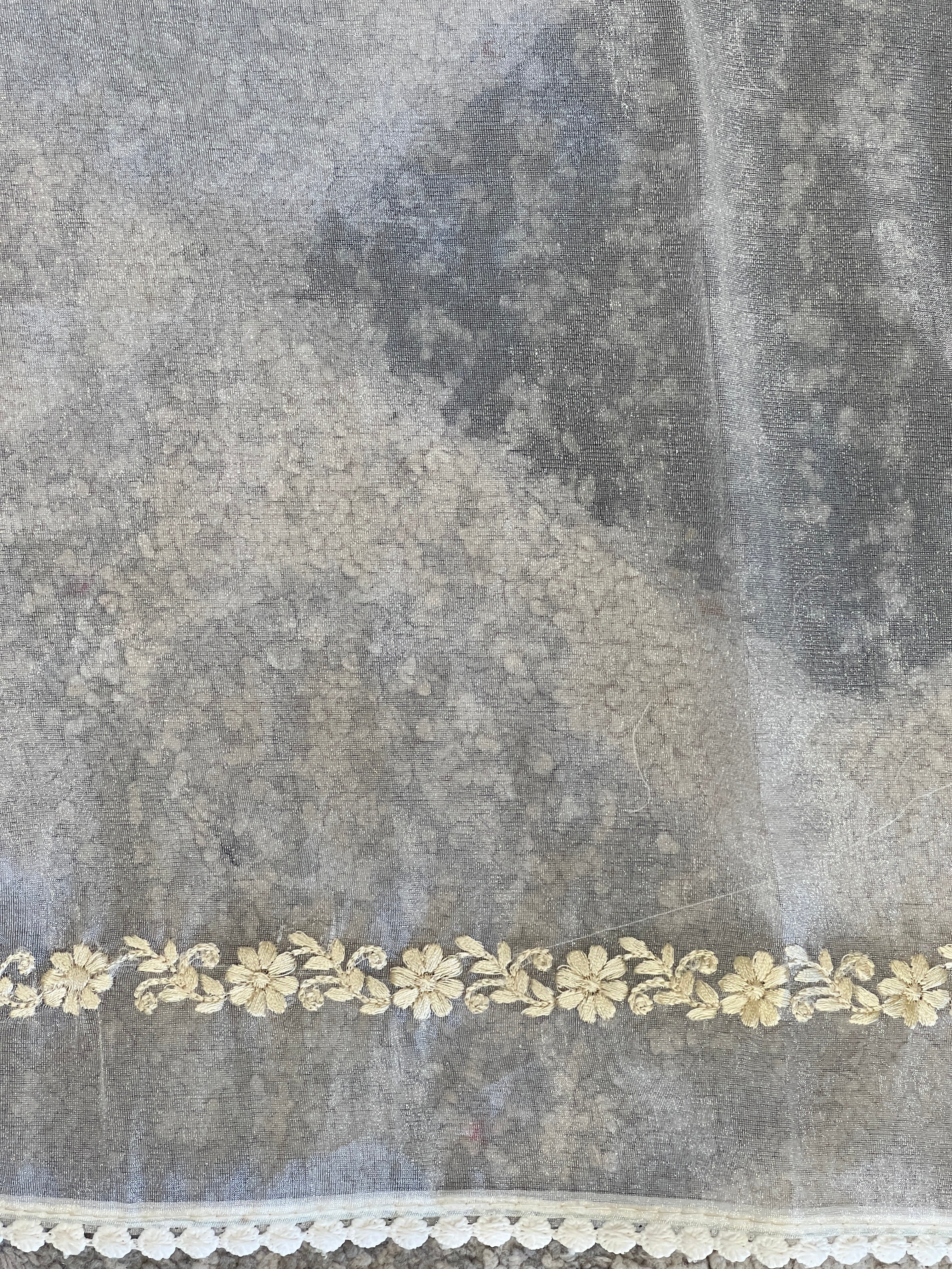 • Style: Scattered Floral Butta Detailing, Machine Embroidery Detailing, Floral Patterned Pallu, Crochet Lace Edges, Embroidered Borders