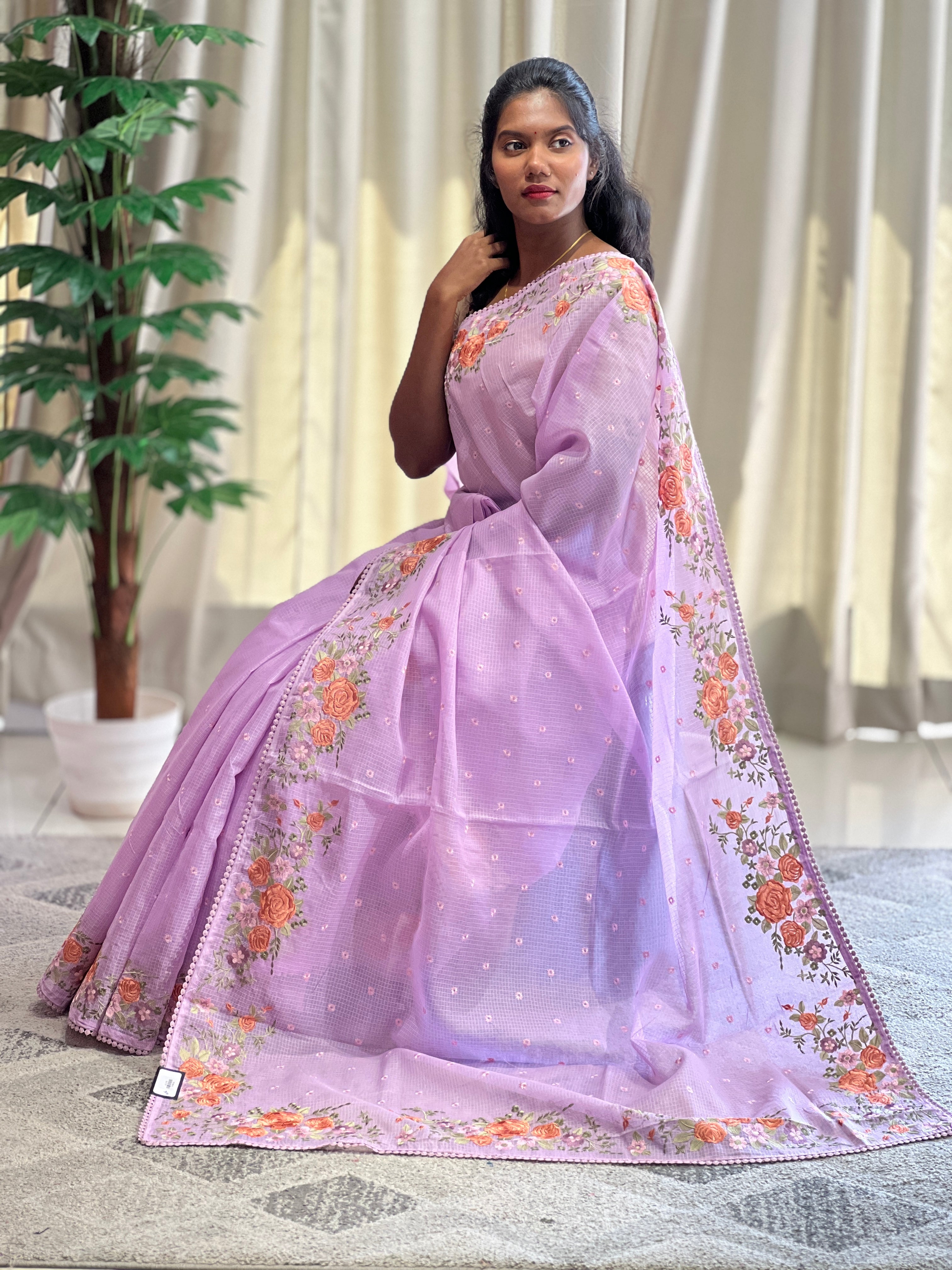 - Style: Scattered Buta, Multi-Color Floral Machine Embroidered Borders, Lace Finished Edges