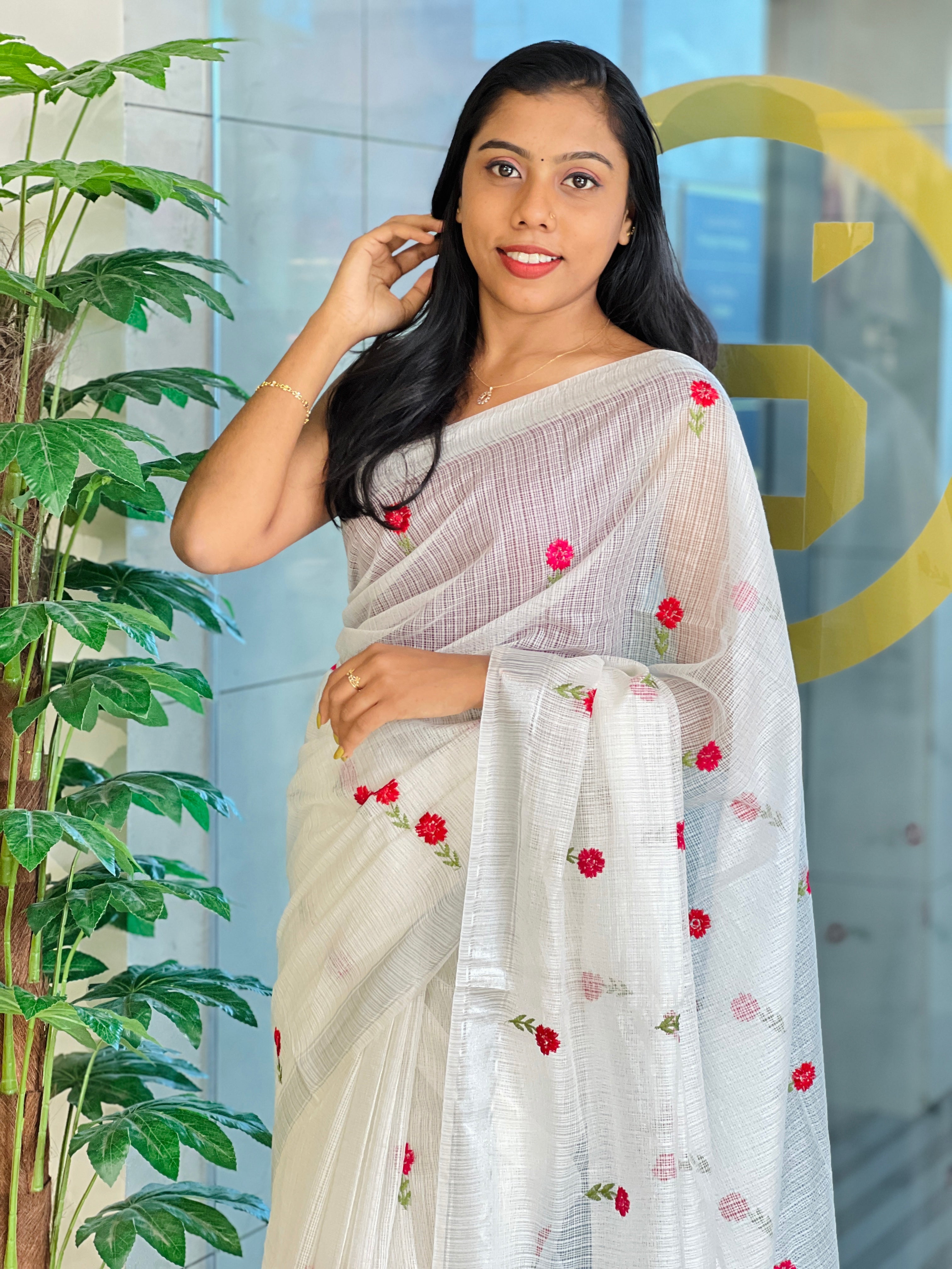 • Floral Machine Embroidered Silky Kota Saree | NHH517