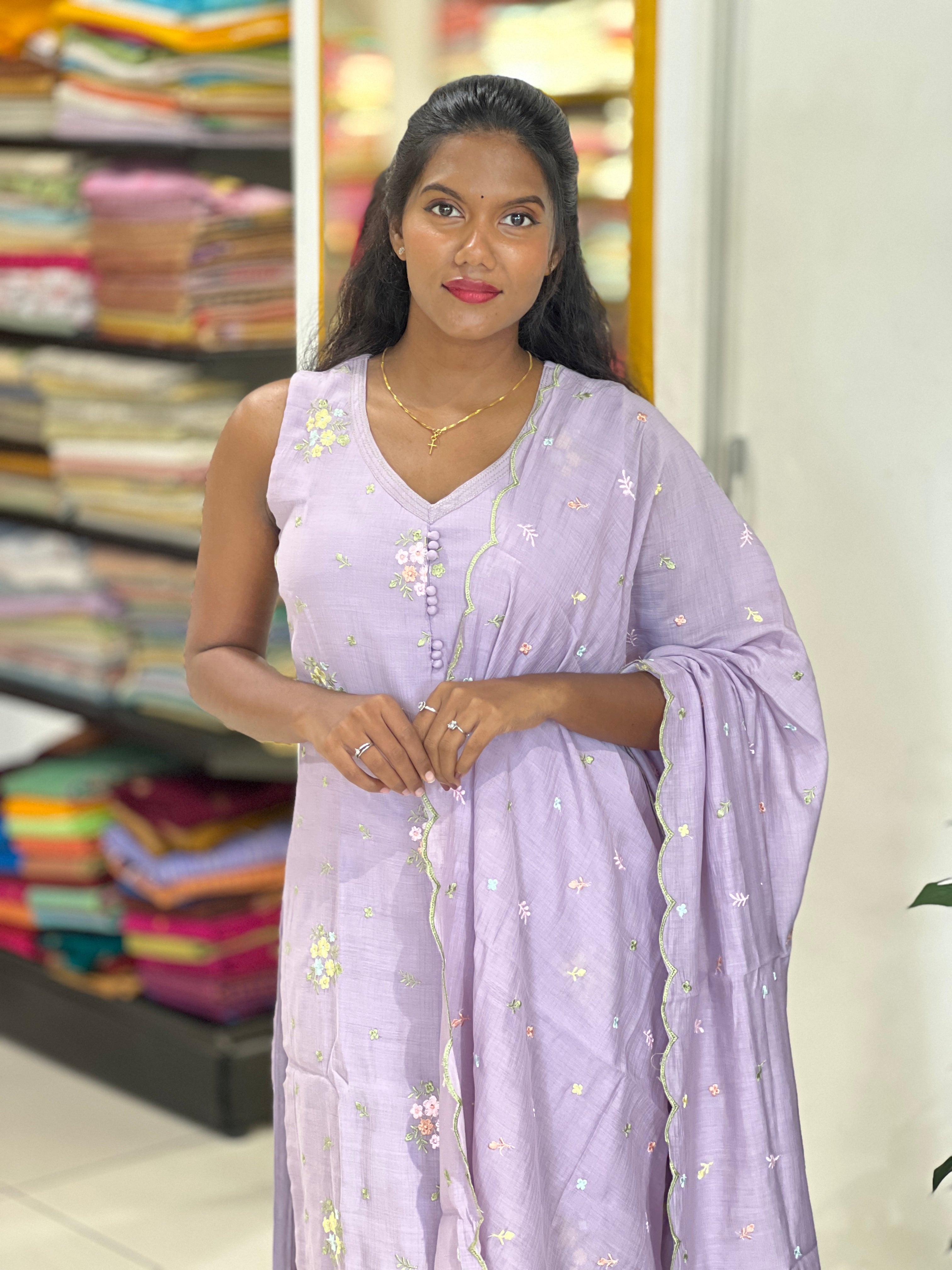Floral Machine Embroidery Detailed Chanderi Kurta Set | NAI177 Floral Machine Embroidery Detailed Chanderi Kurta Set | NAI177