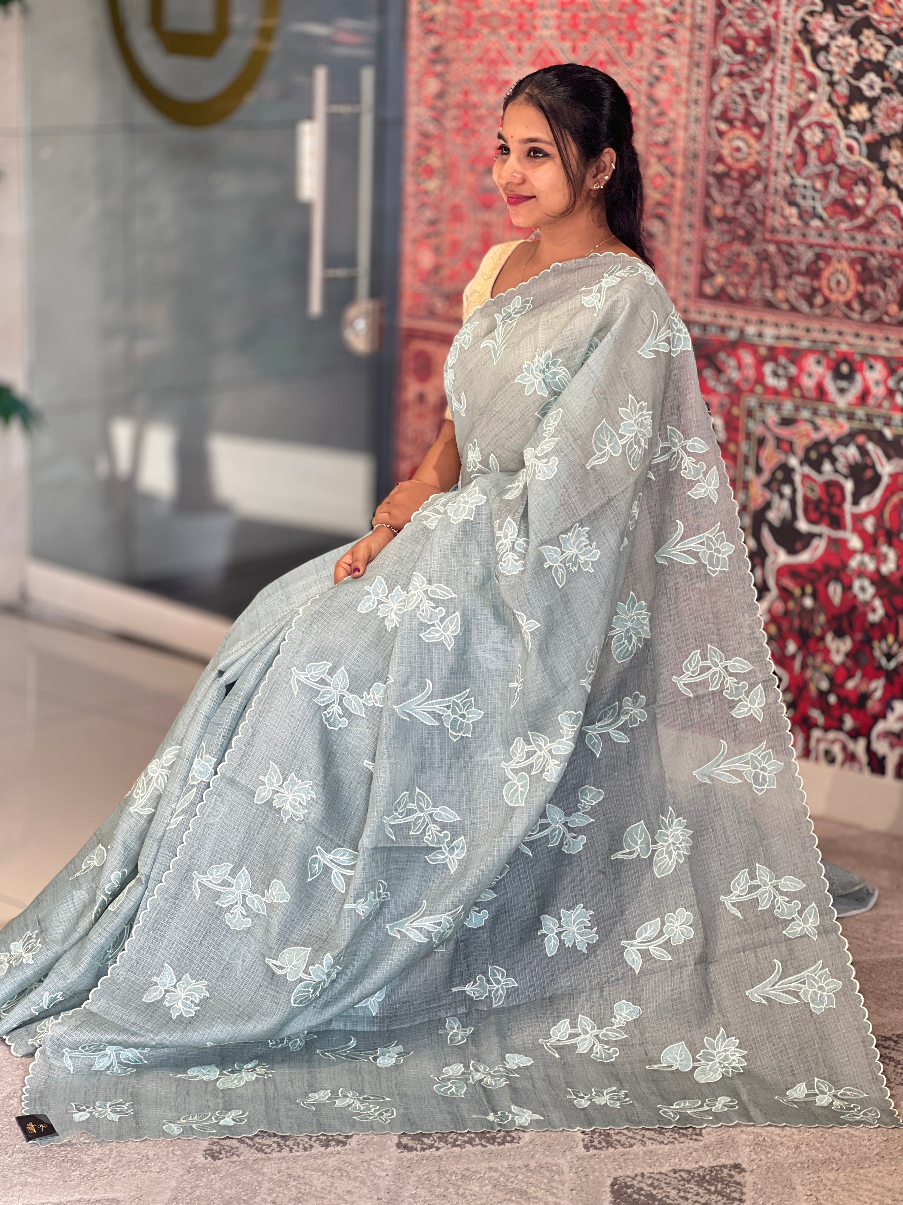 Floral Machine Embroidery Detailed Kota Saree | BLD1291