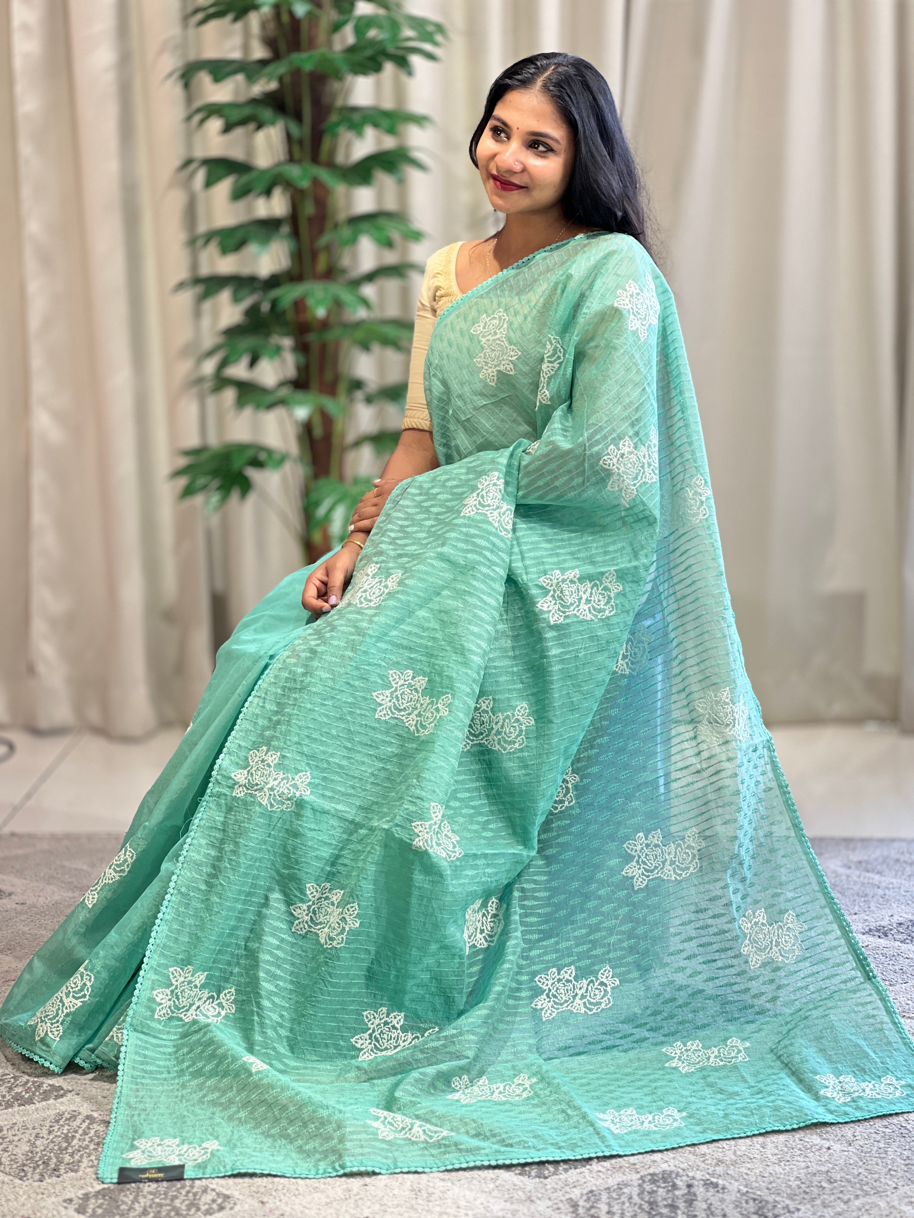 • Floral Machine Embroidery Detailed Kota Saree | BLD1323