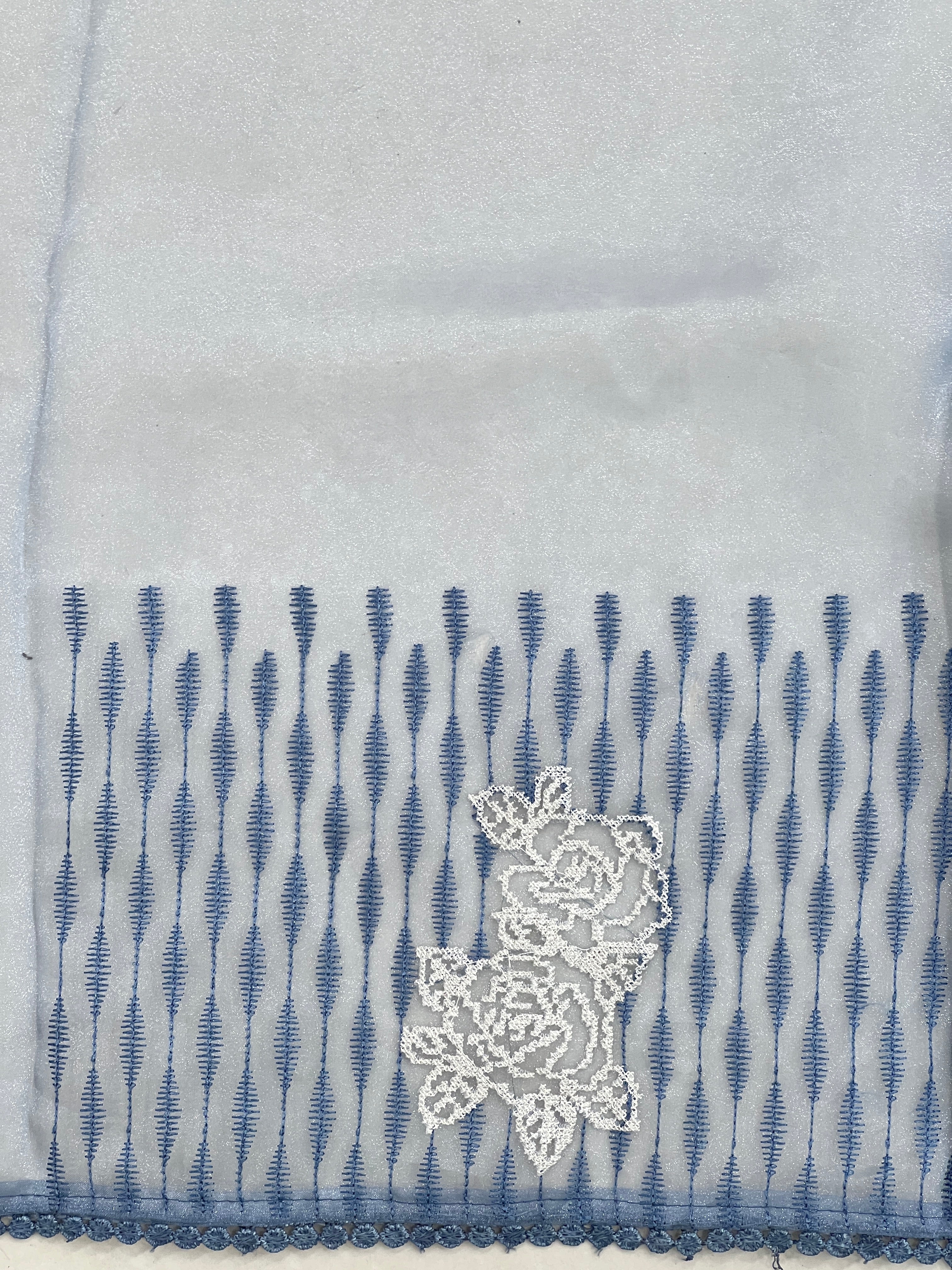 Floral Machine Embroidery Detailed Organza Saree | BLD1607 Floral Machine Embroidery Detailed Organza Saree | BLD1607