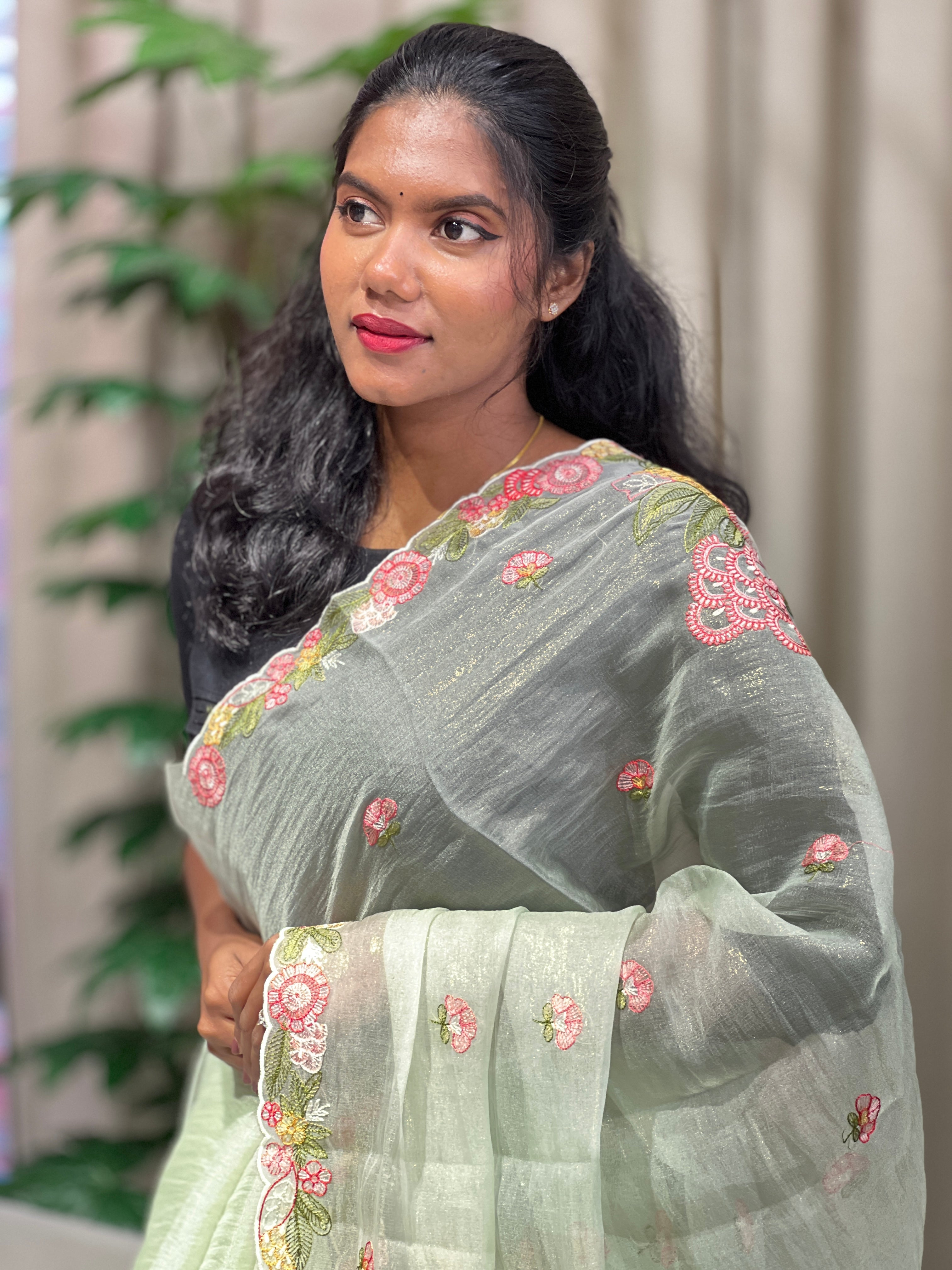 - Style: Machine Embroidery,Scallop Finishing, Scatter Floral Detailing